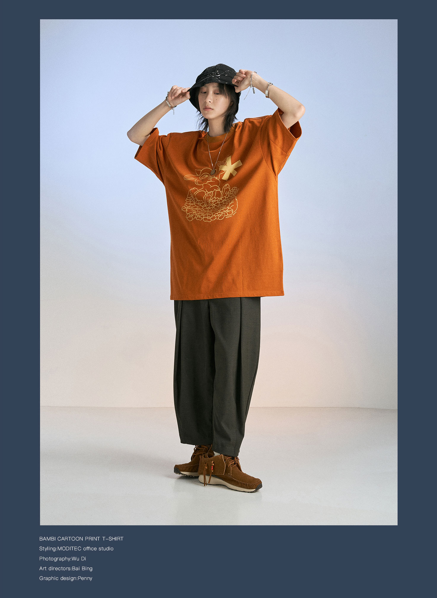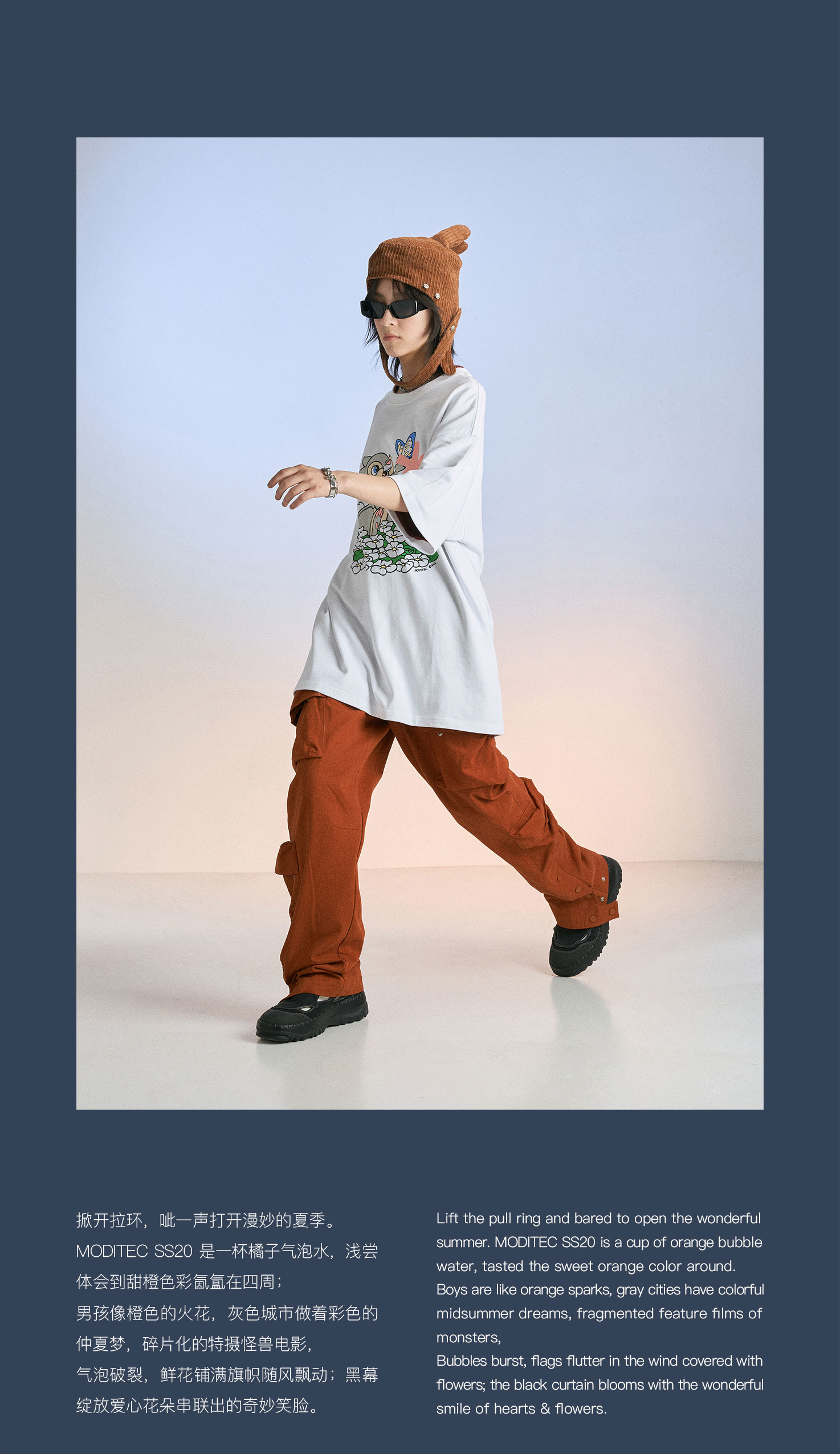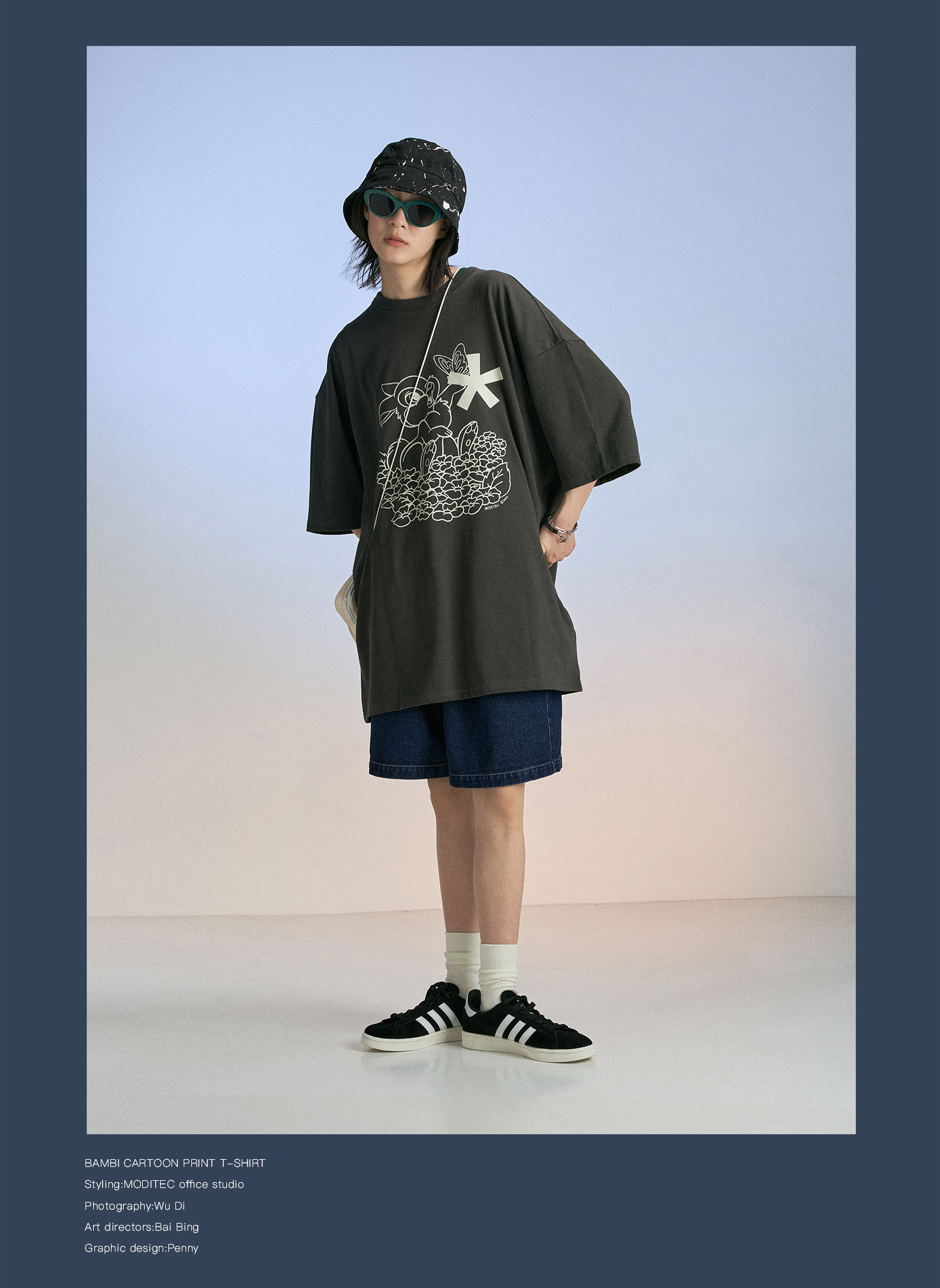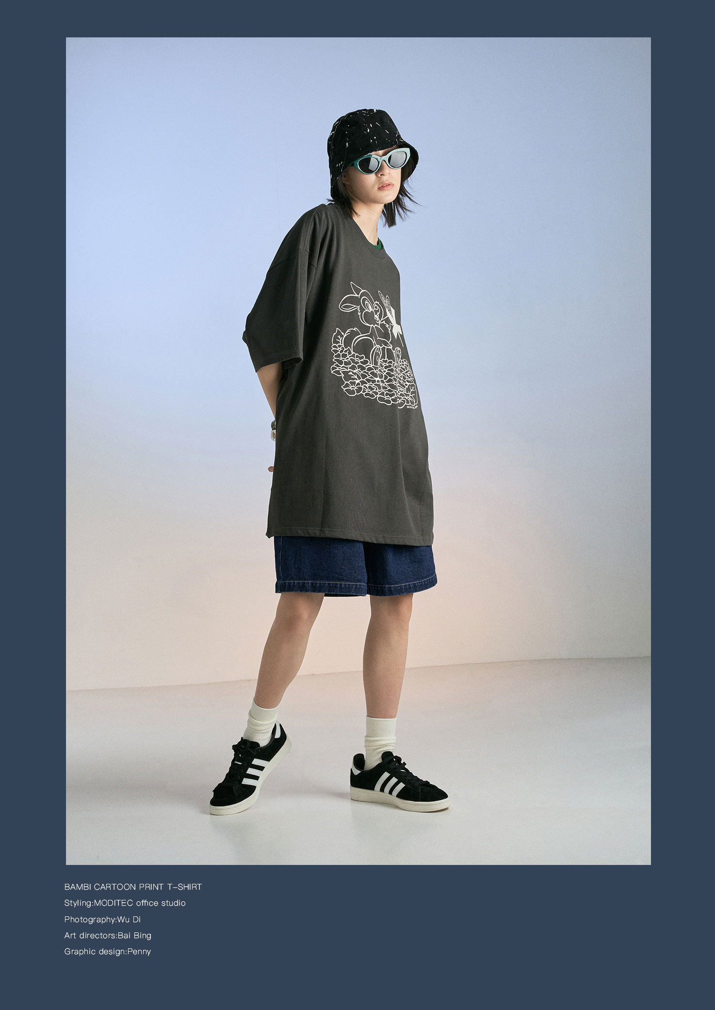 MODITEC 20SS三色卡通兔子形象符号宽松短袖 全棉情侣宽松潮流T恤