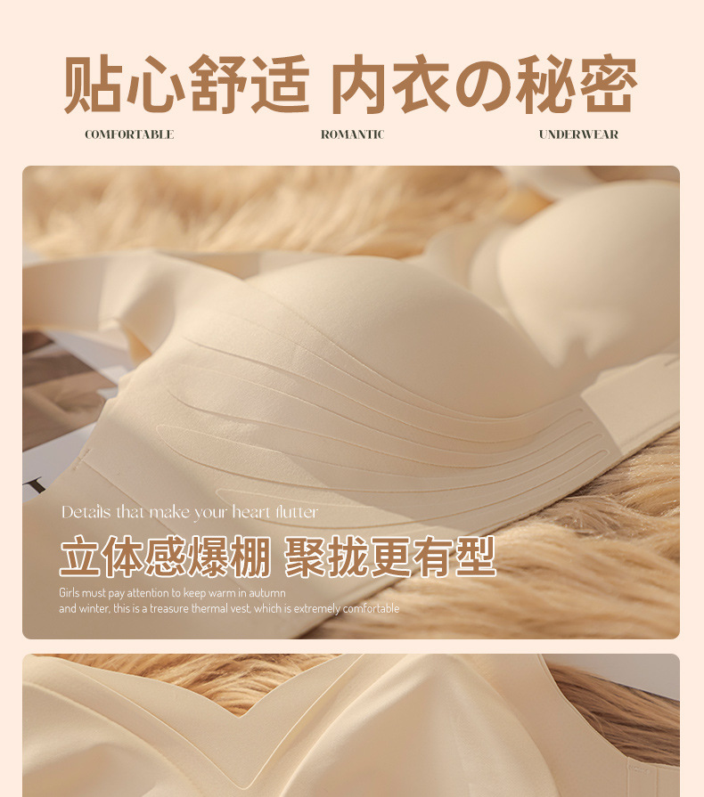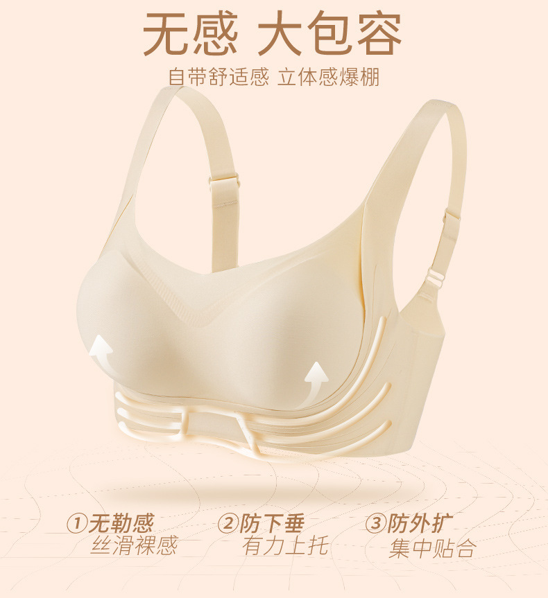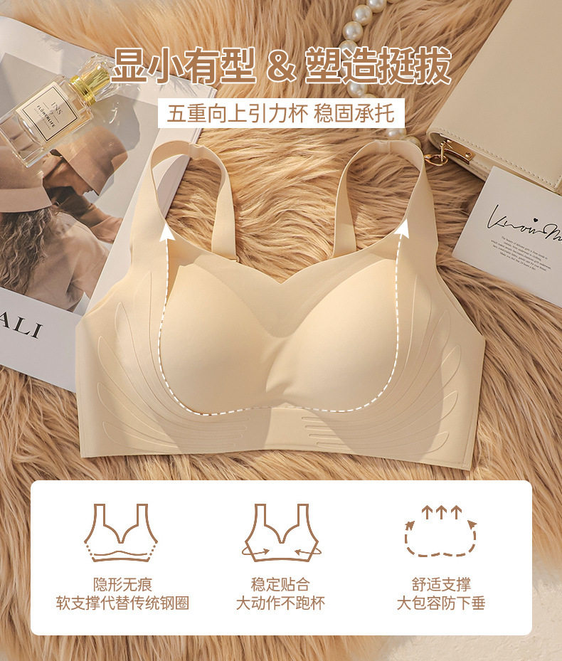 【2件立减20元】果冻条聚拢文胸 瑜伽跳跃也能稳稳的 聚拢无痕无钢圈内衣 透气不闷 高弹软糯内衣女无钢圈防下垂收副乳上托性感文胸大胸显小防外扩固定杯胸罩