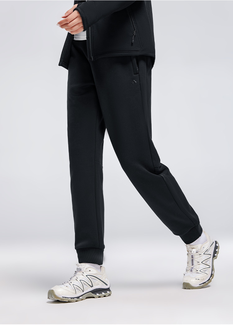 拓路者女款加绒长裤2024年冬季灰色加厚休闲裤束腿保暖简约卫裤