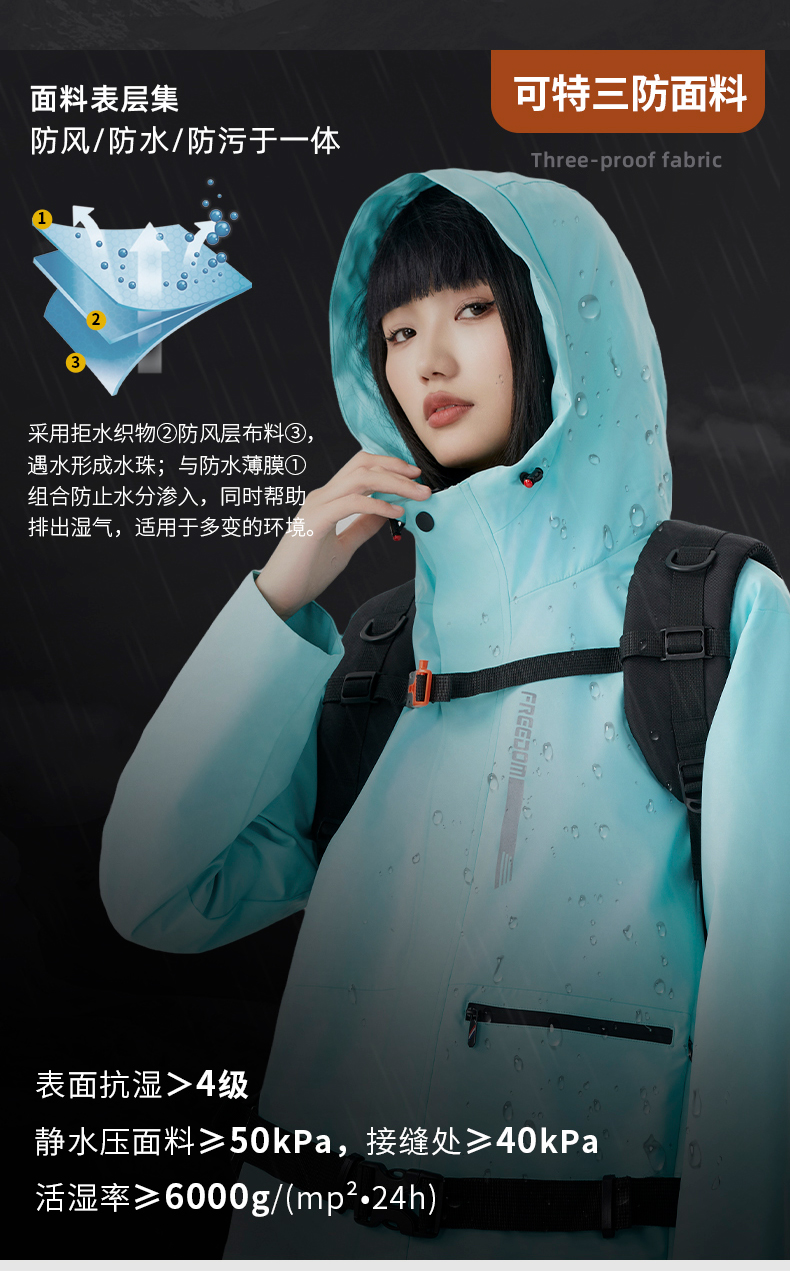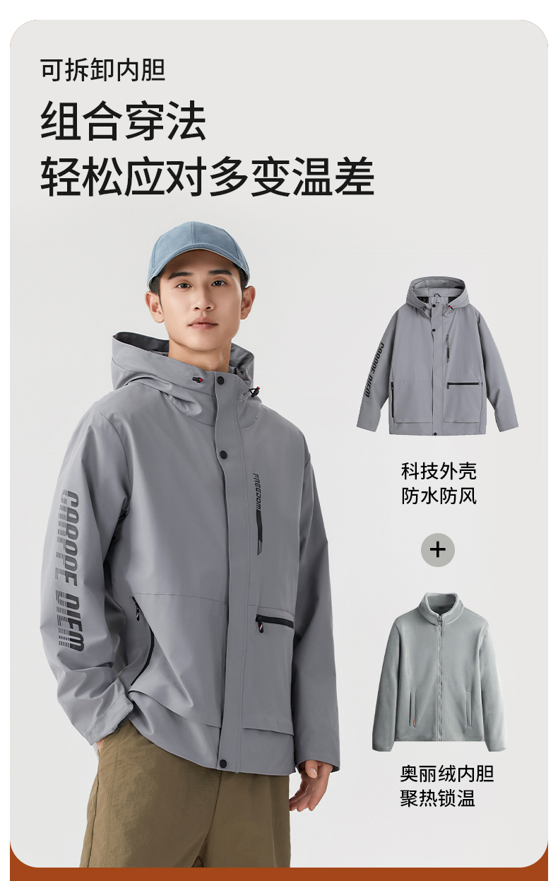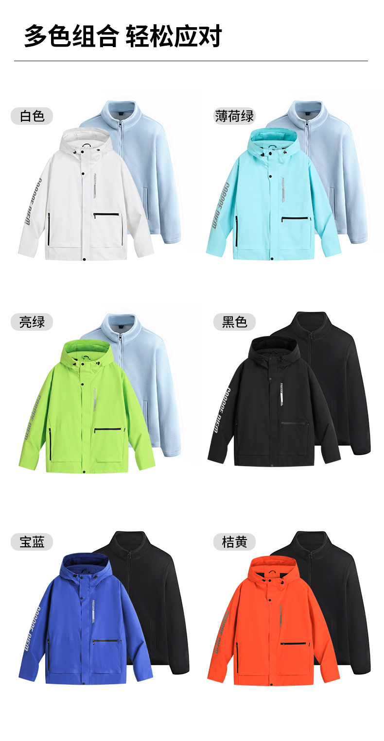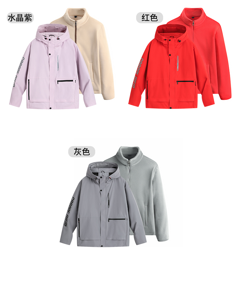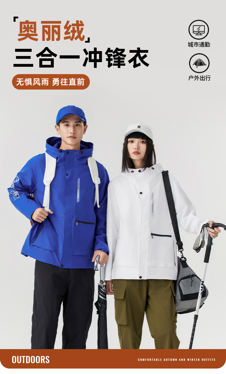 幸运鹿男女款奥粒绒三合一户外风衣防风防泼水保暖登山服