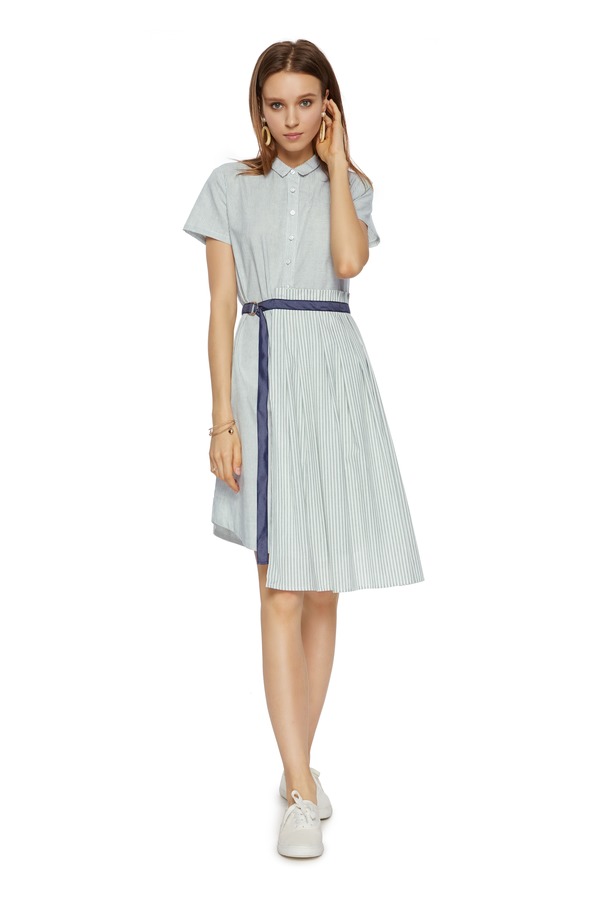 SUMMER & SAGE 束腰不对称下摆衬衫裙 7008