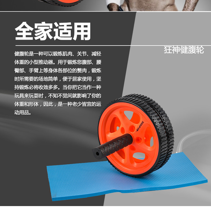 狂神ks1127静音健美双轮健腹轮健美器配练习垫