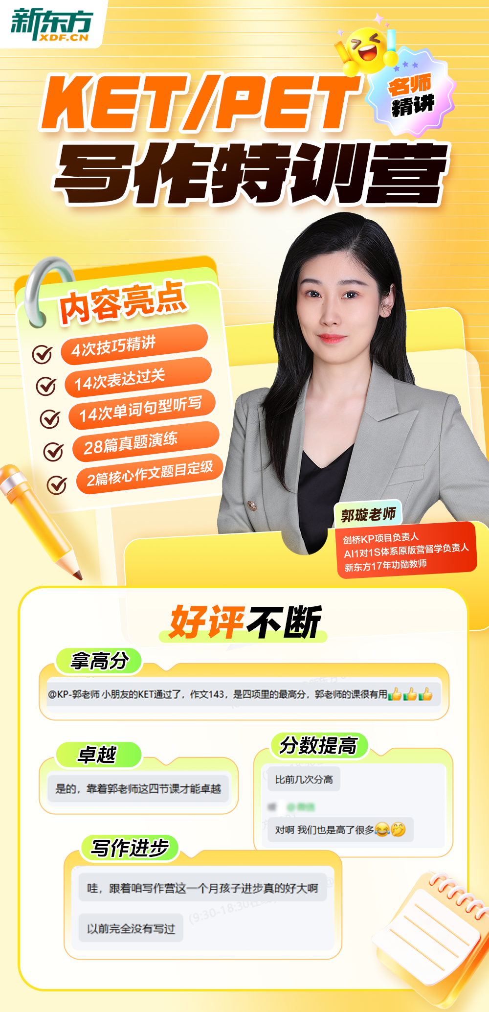 【新东方】KET/PET写作特训营 技巧精讲强化训练兴趣提升3期fx