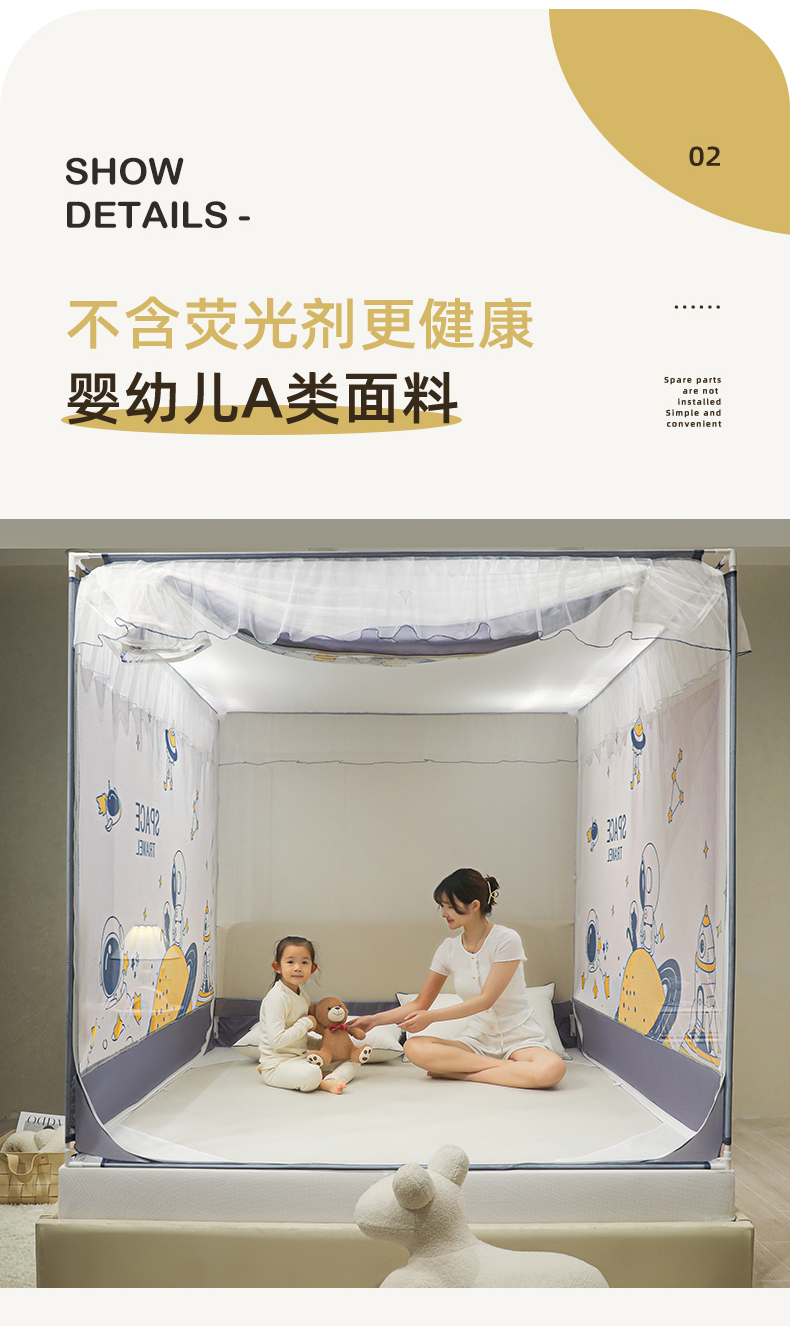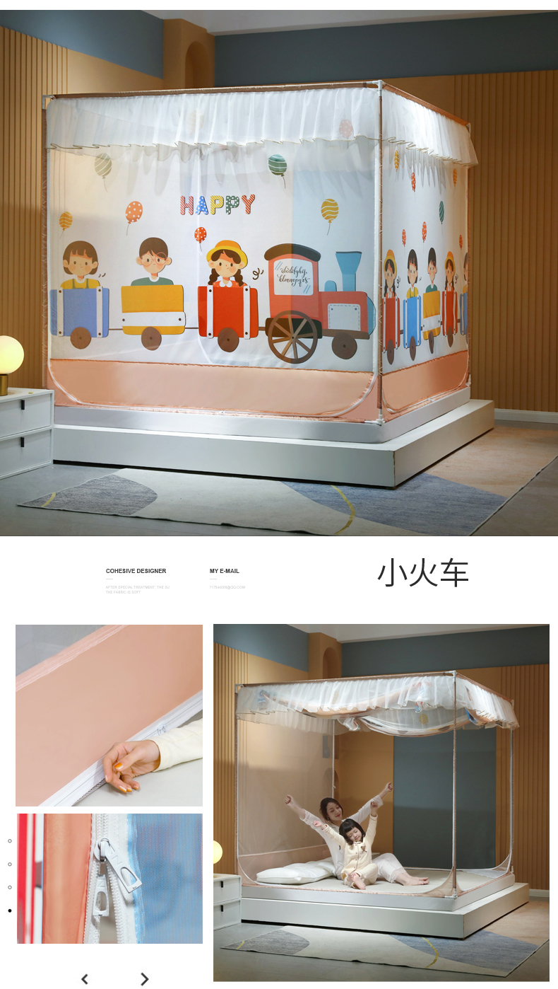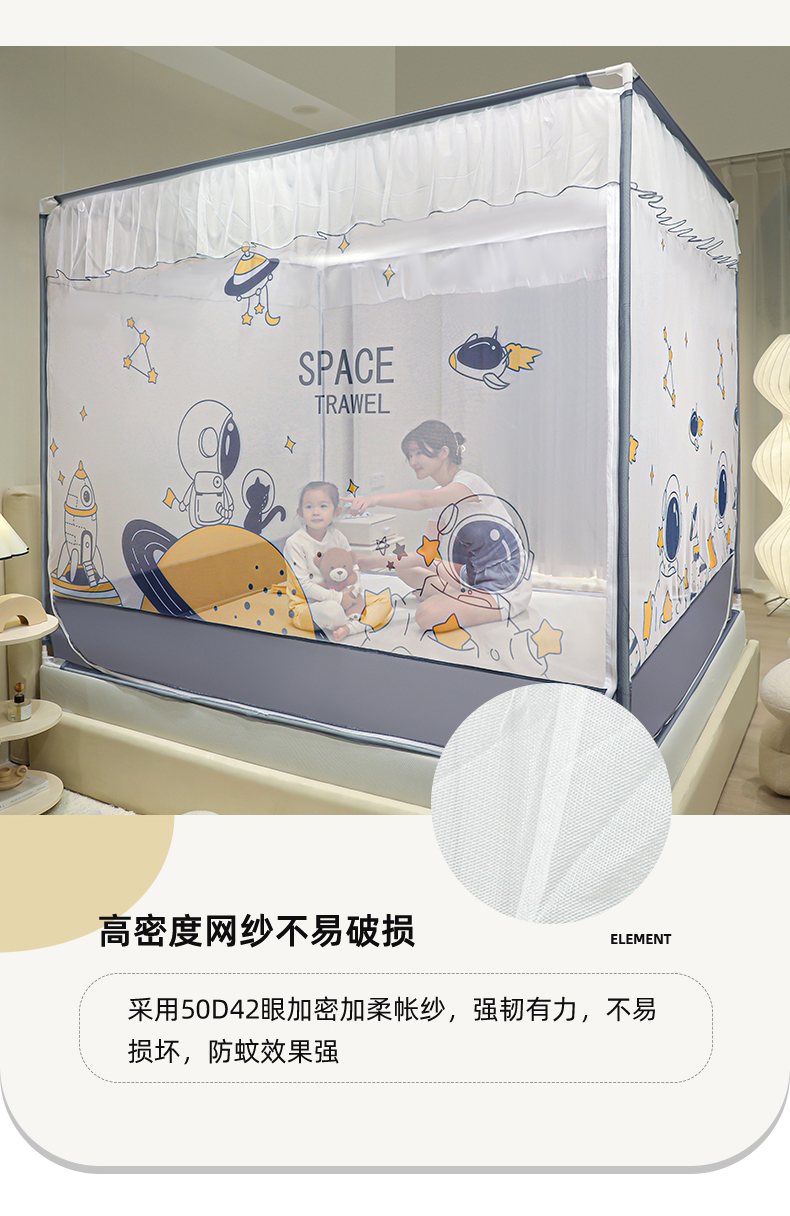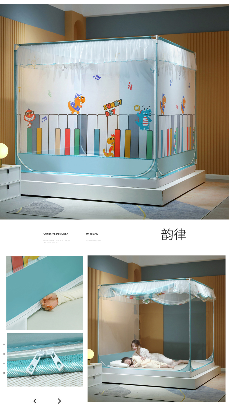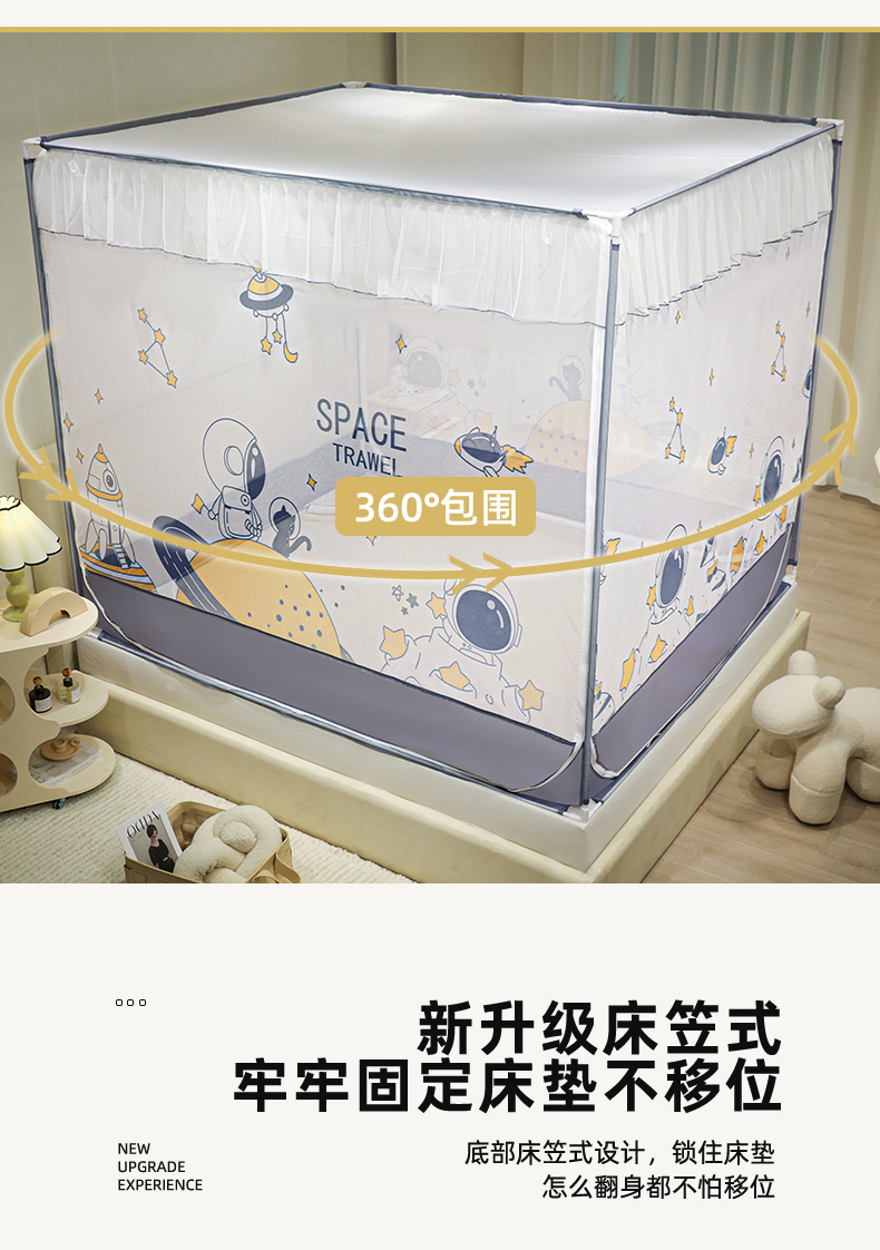 自然醒婴幼儿A类防尘方顶坐床蚊帐防摔儿童加固加厚宝宝防止掉床卡通印花床笠款折叠支架8861HH