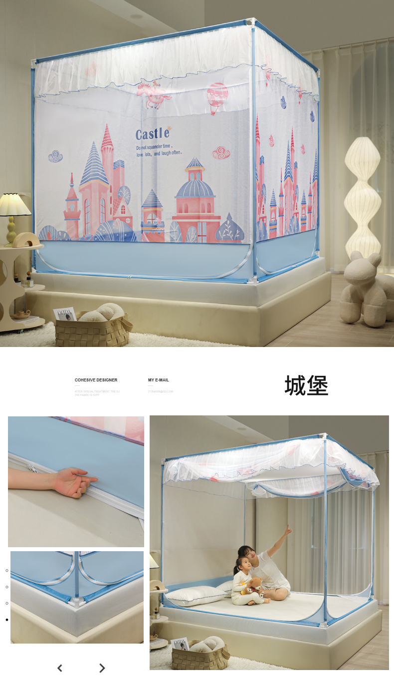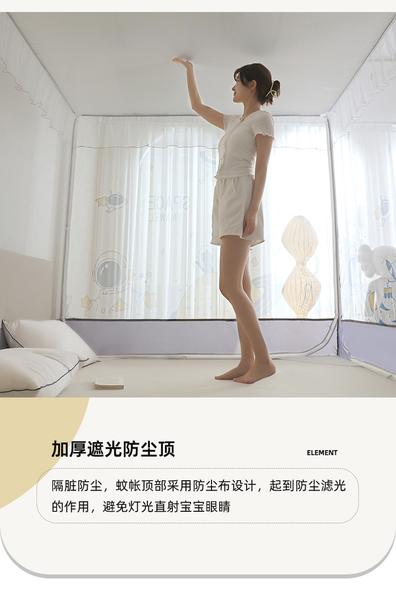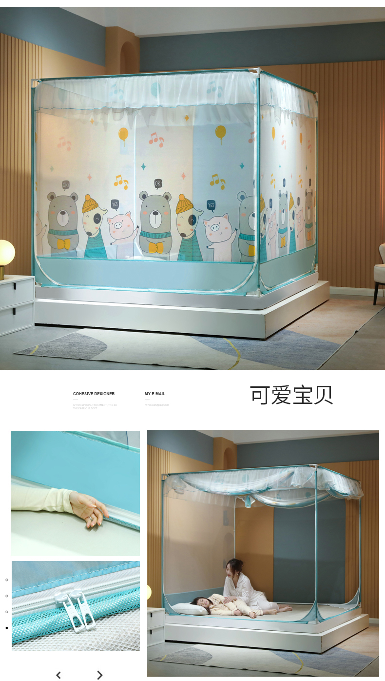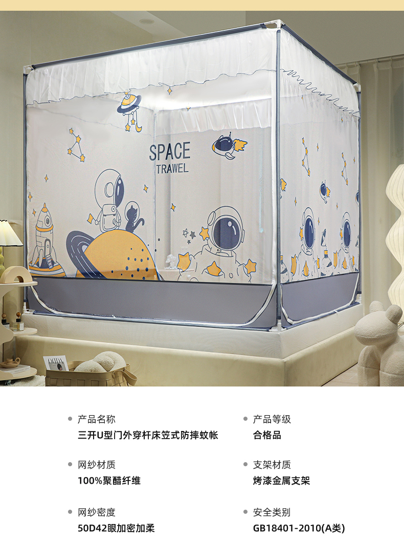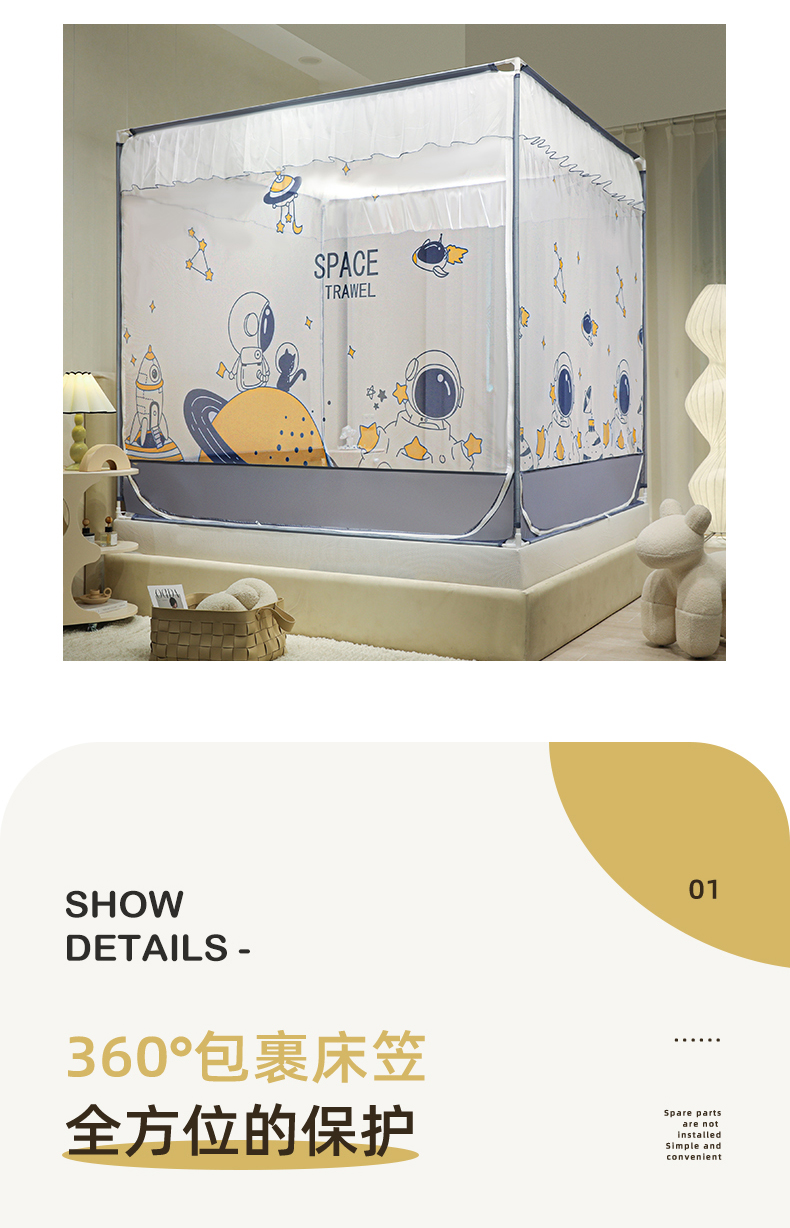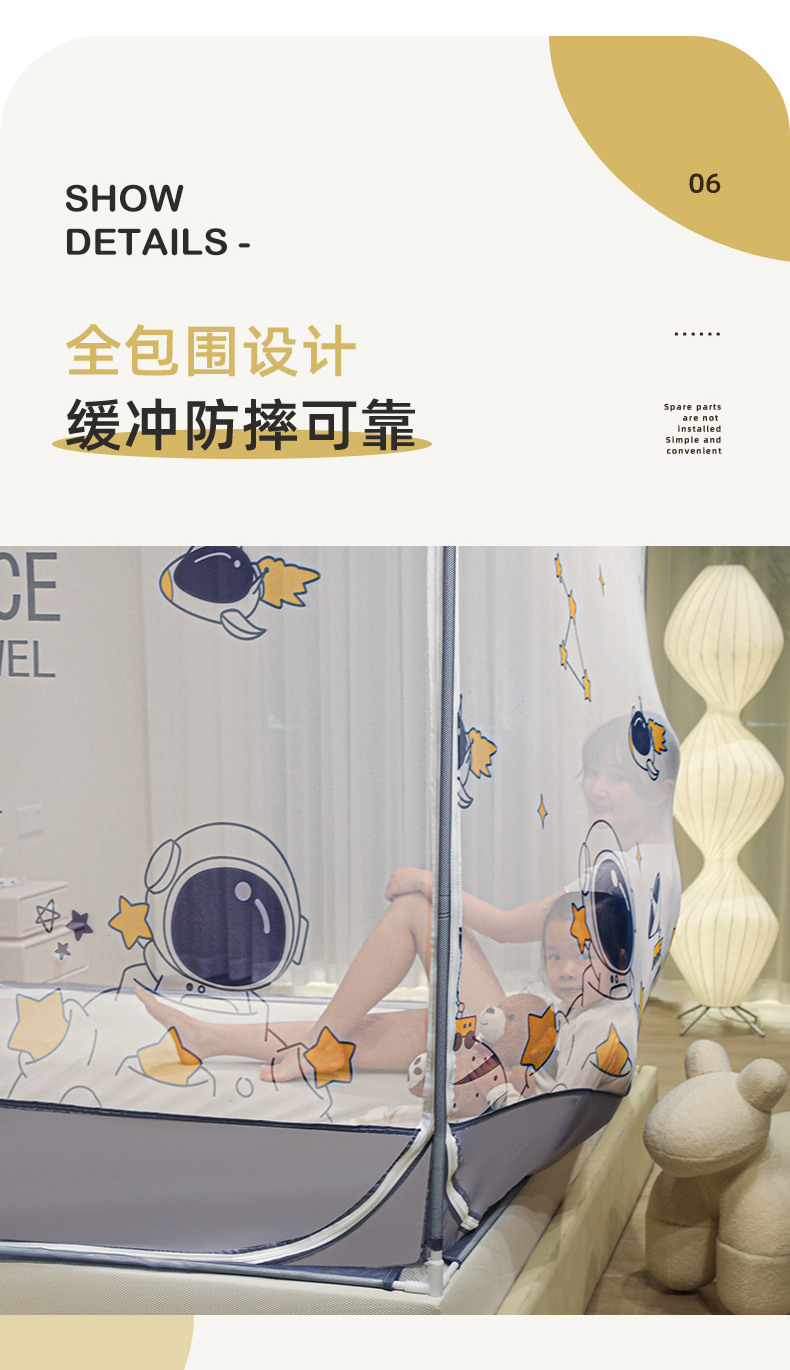 自然醒婴幼儿A类防尘方顶坐床蚊帐防摔儿童加固加厚宝宝防止掉床卡通印花床笠款折叠支架8861HH