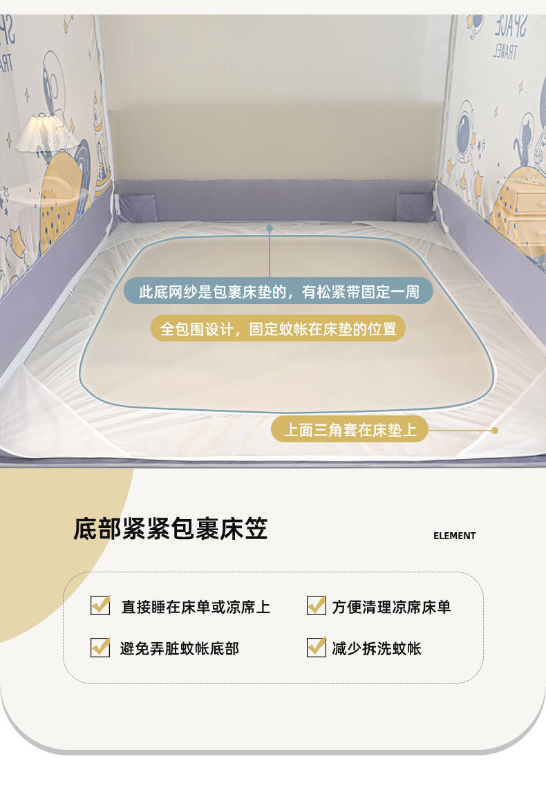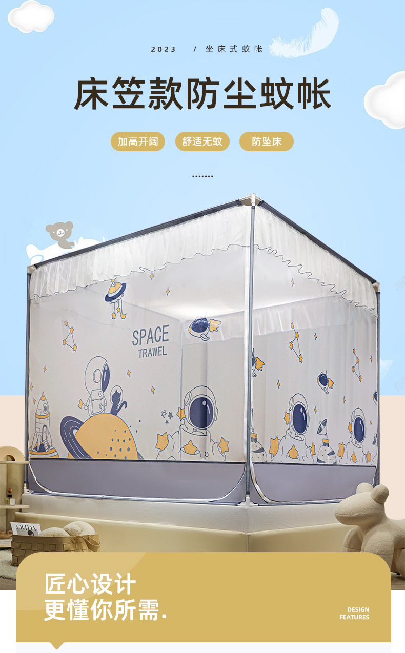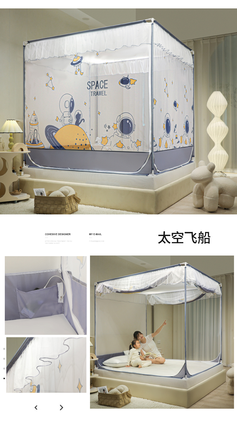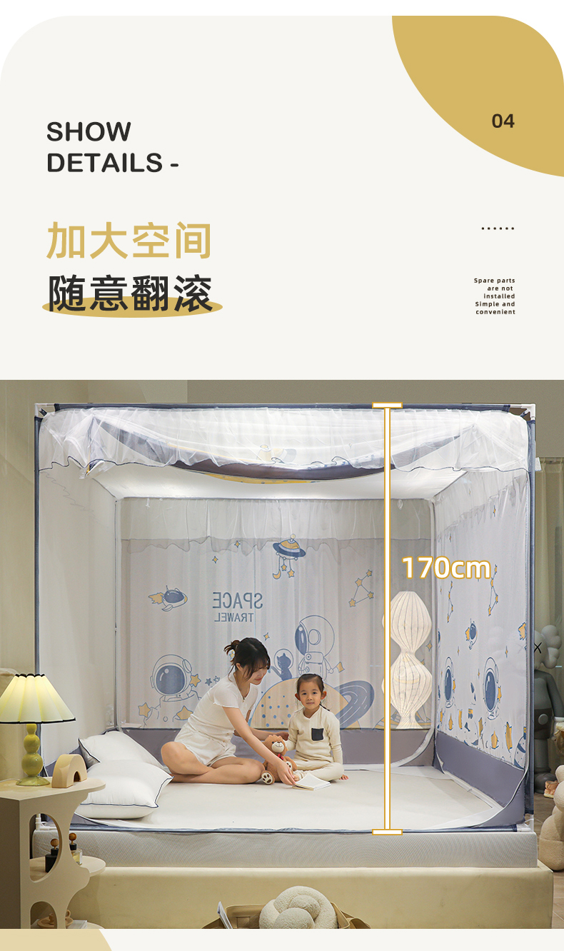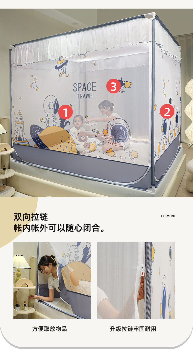 自然醒婴幼儿A类防尘方顶坐床蚊帐防摔儿童加固加厚宝宝防止掉床卡通印花床笠款折叠支架8861HH