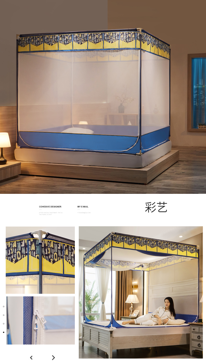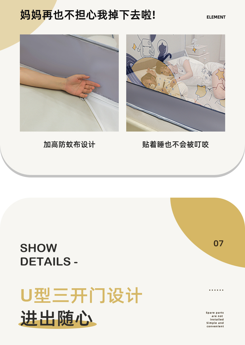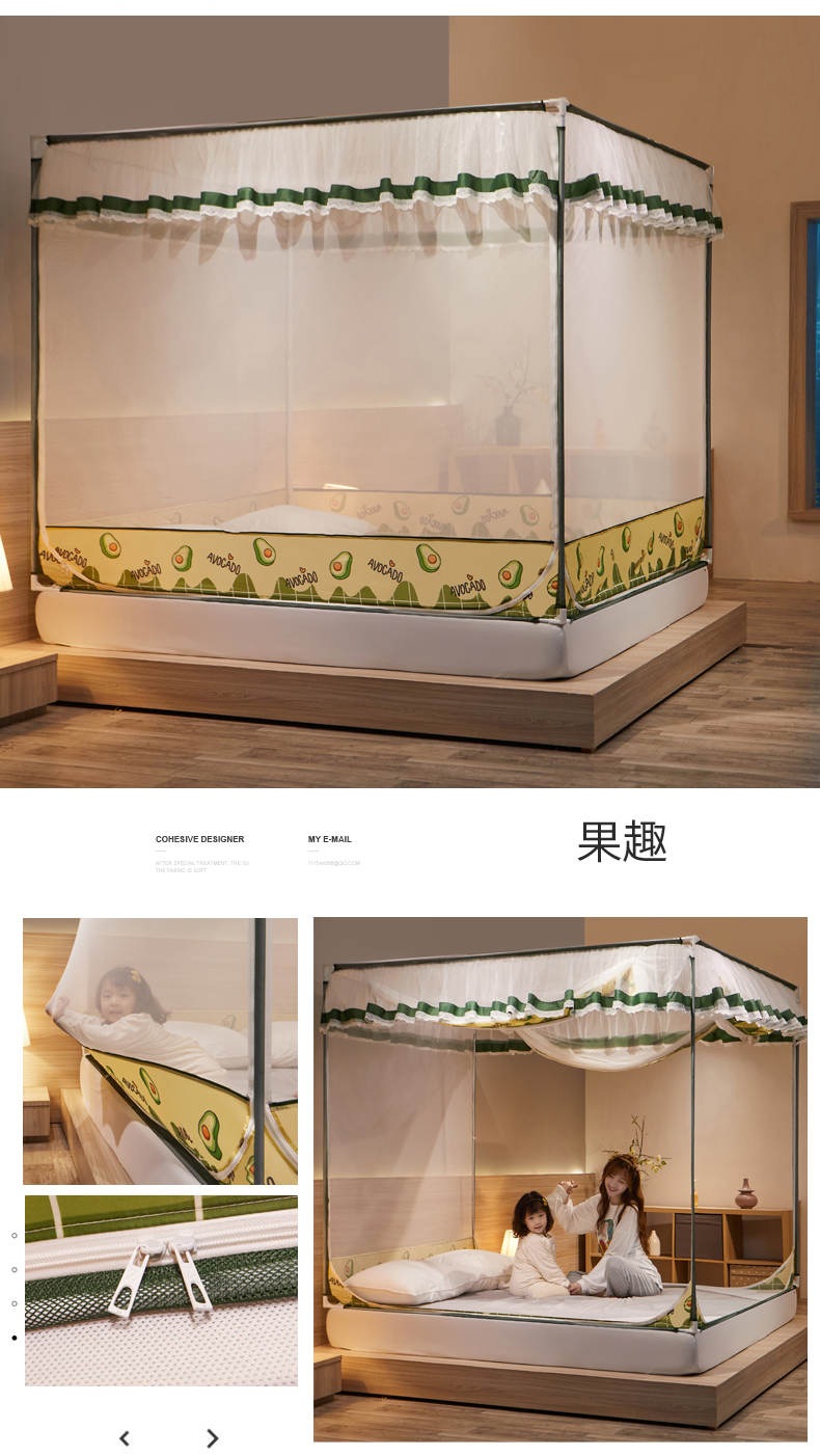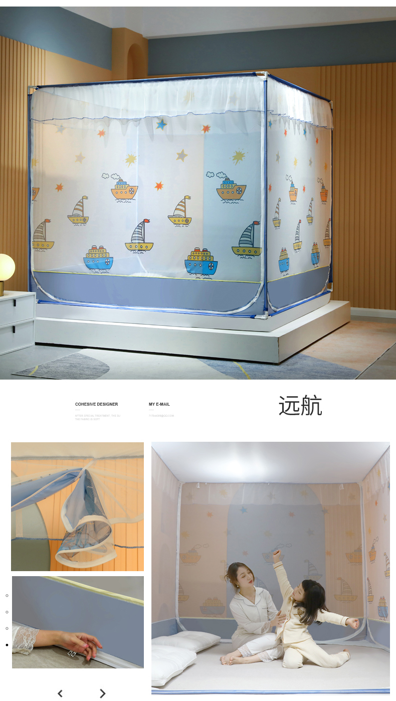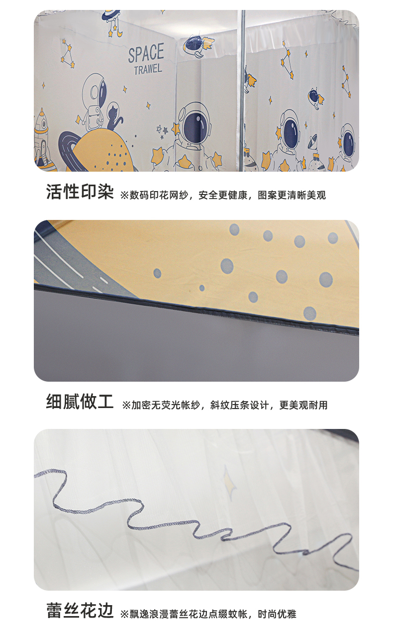 自然醒婴幼儿A类防尘方顶坐床蚊帐防摔儿童加固加厚宝宝防止掉床卡通印花床笠款折叠支架8861HH