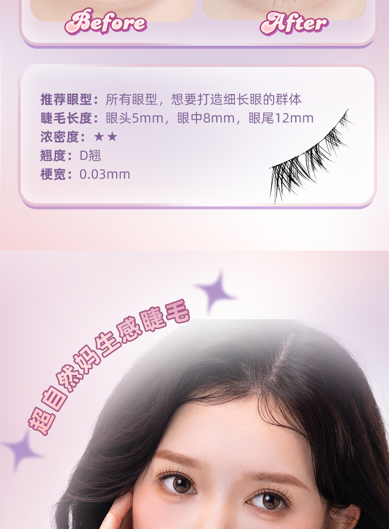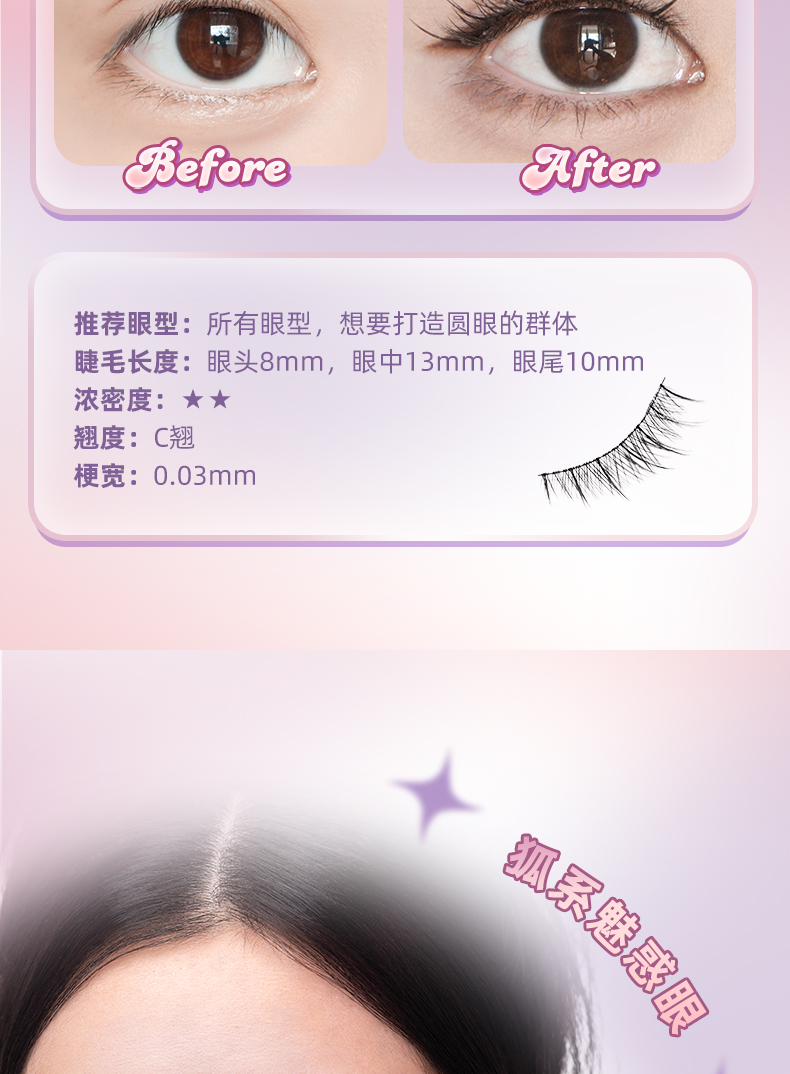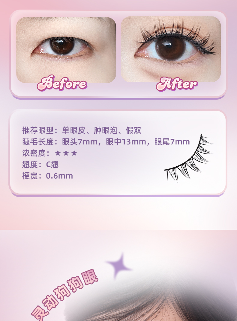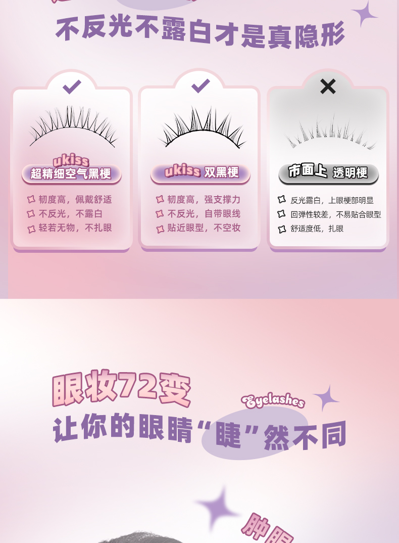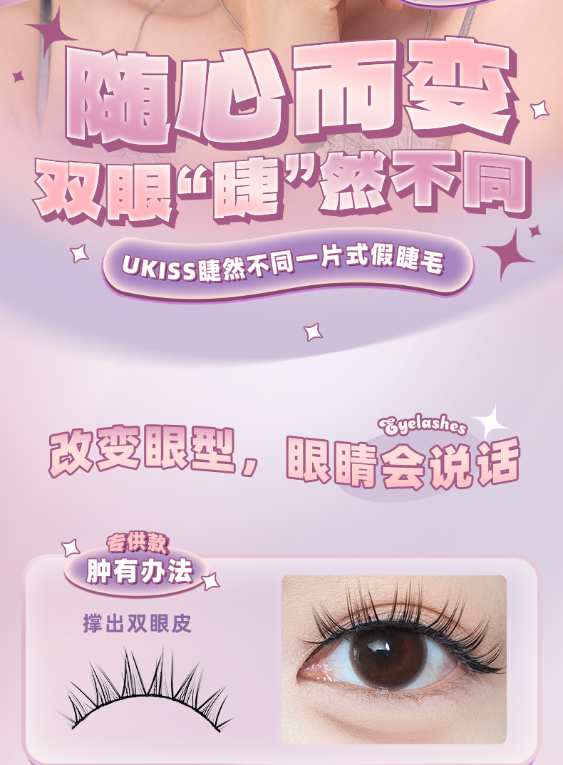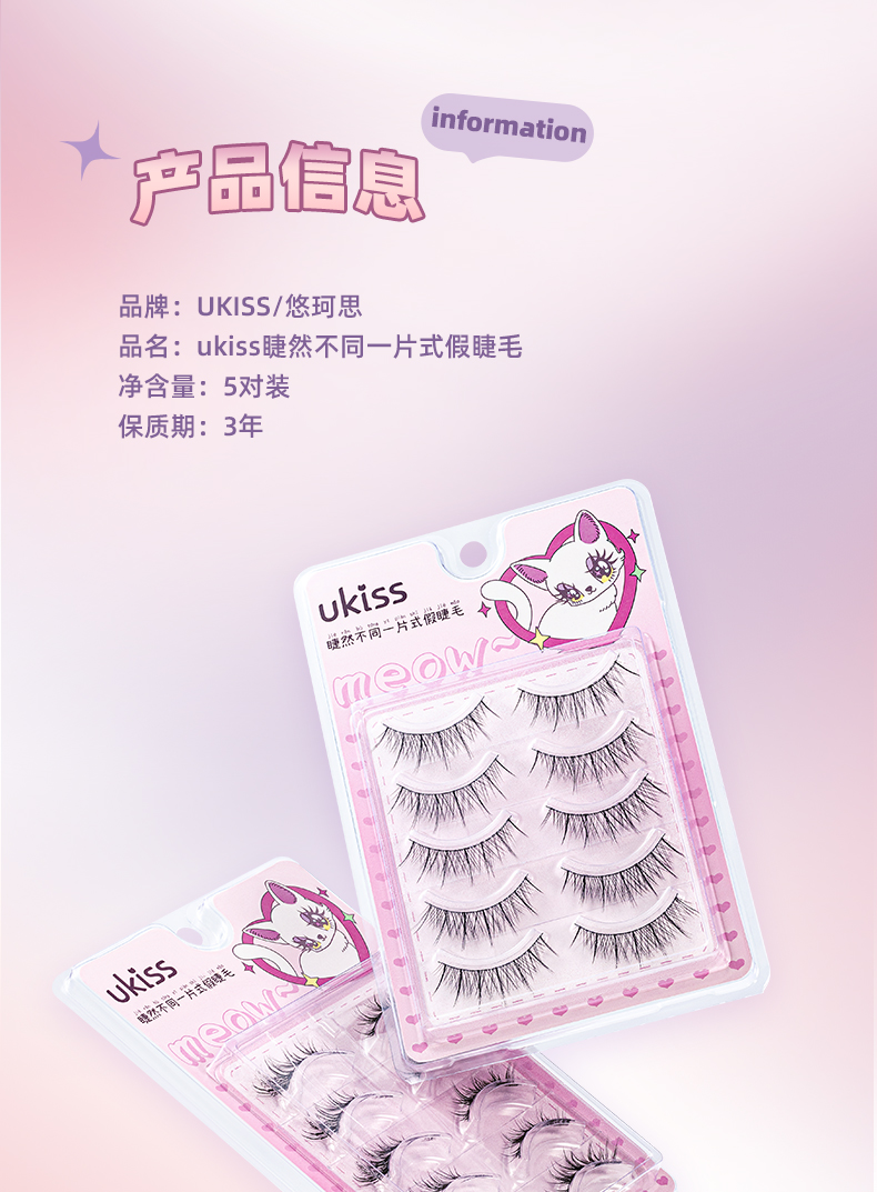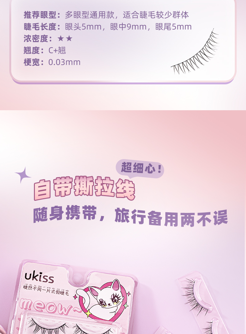 【轻盈舒适 放大双眼】ukiss悠珂思睫然不同一片式假睫毛(胶水款)