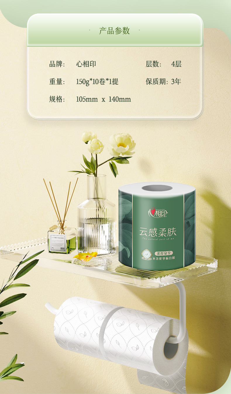 心相印 纸巾 BT5410(提装)云感系列150克10粒装四层立体压花卷筒卫生纸
