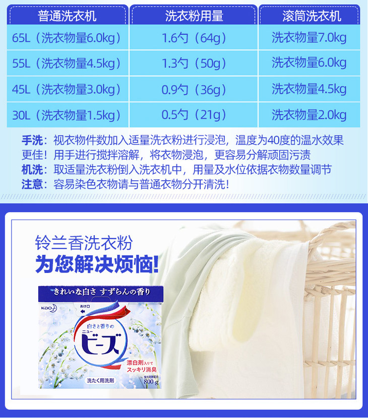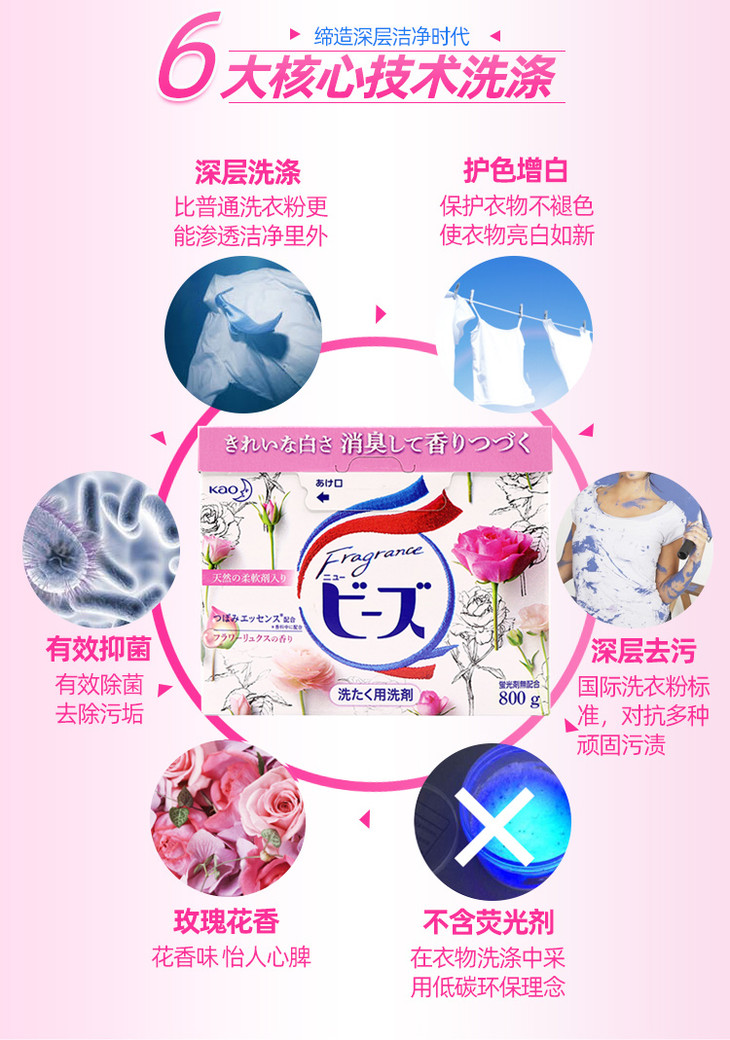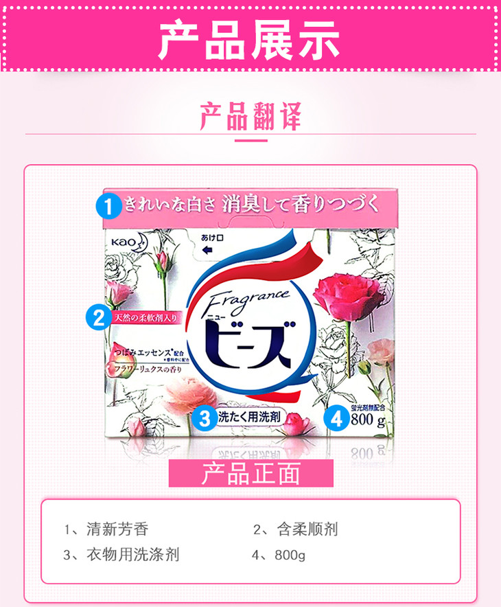 花王 洗衣粉 玫瑰香/铃兰香 800g