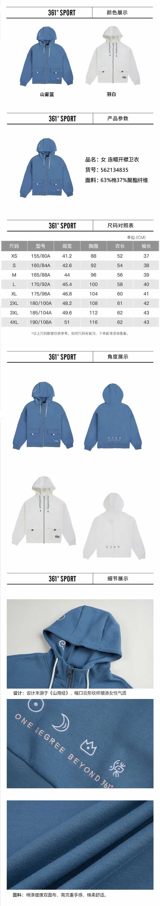 361度2021年秋季新款运动服连帽开襟卫衣562134835