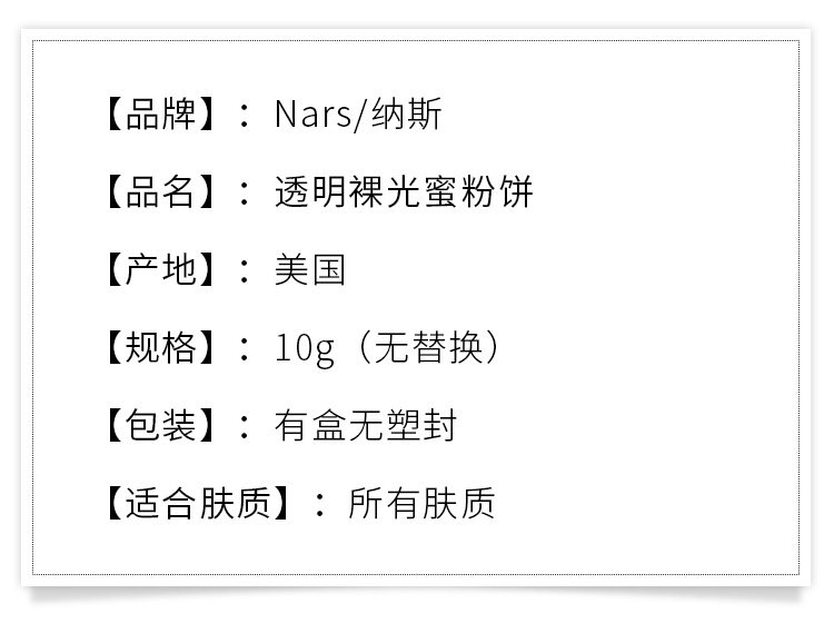 NARS定妆大白饼 细腻轻盈持久定妆控油散粉蜜粉饼