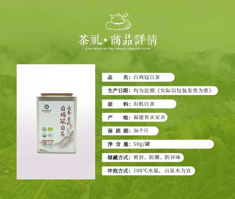 有机白茶 高山茶 白鸡冠白茶(三年陈) 50g