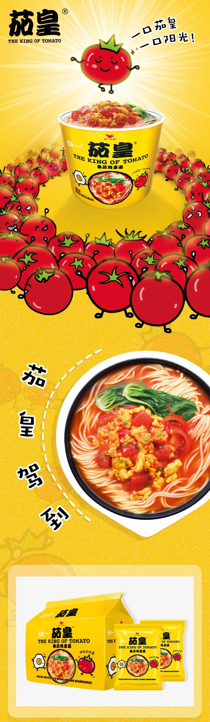 统一方便面茄皇番茄鸡蛋面116g*5袋
