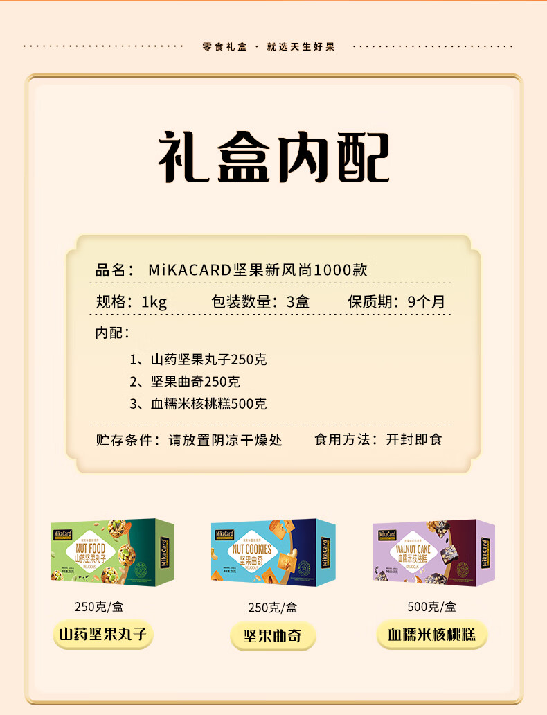 天生好果MiKACARD坚果新风尚1000款办公室休闲零食大礼包