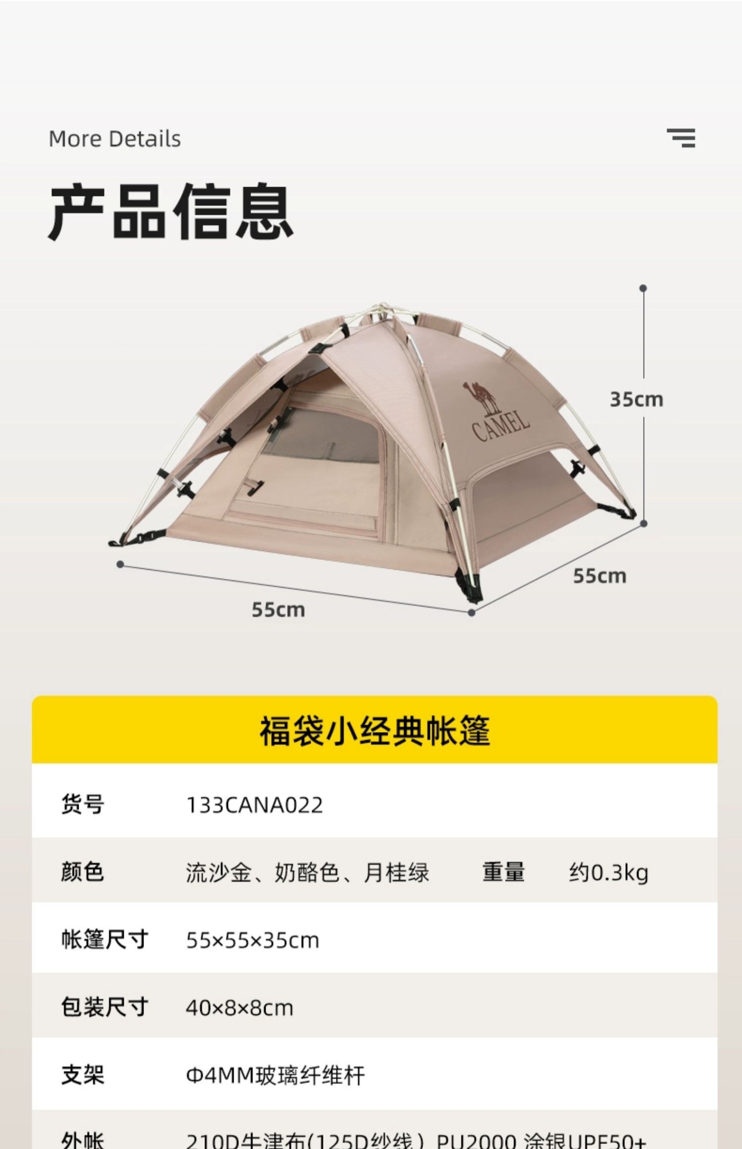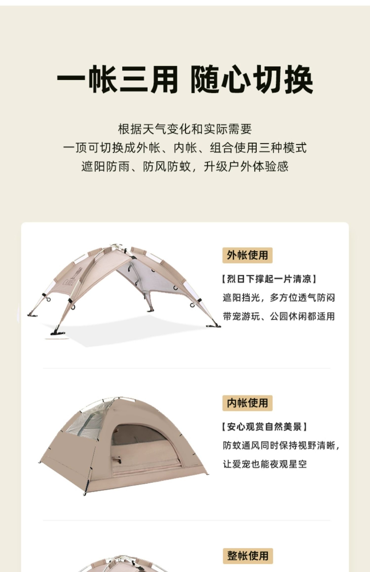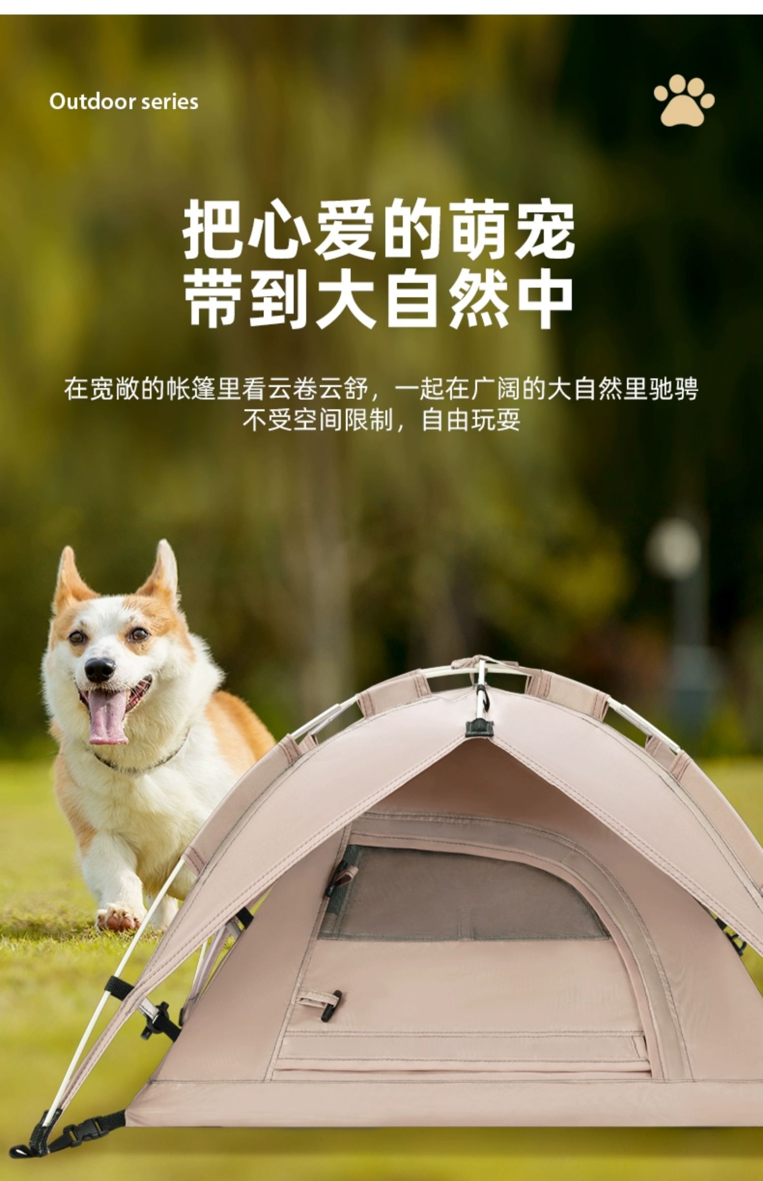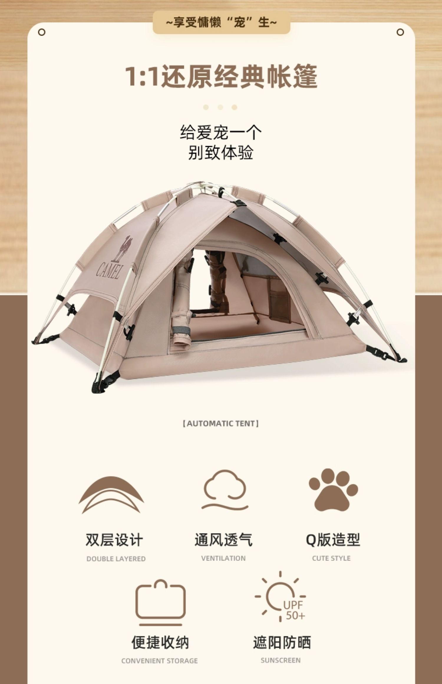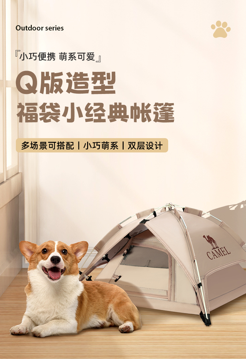 骆驼户外宠物帐篷半封闭式猫窝四季通用款居家便携小型犬自动帐 133CANA022