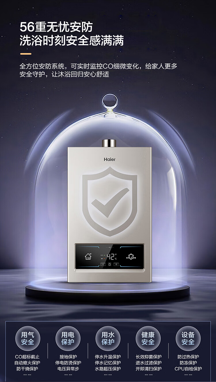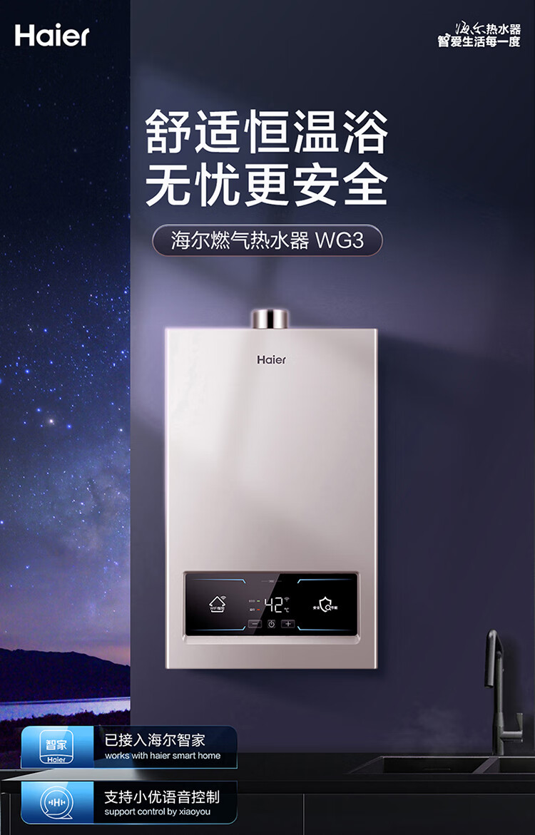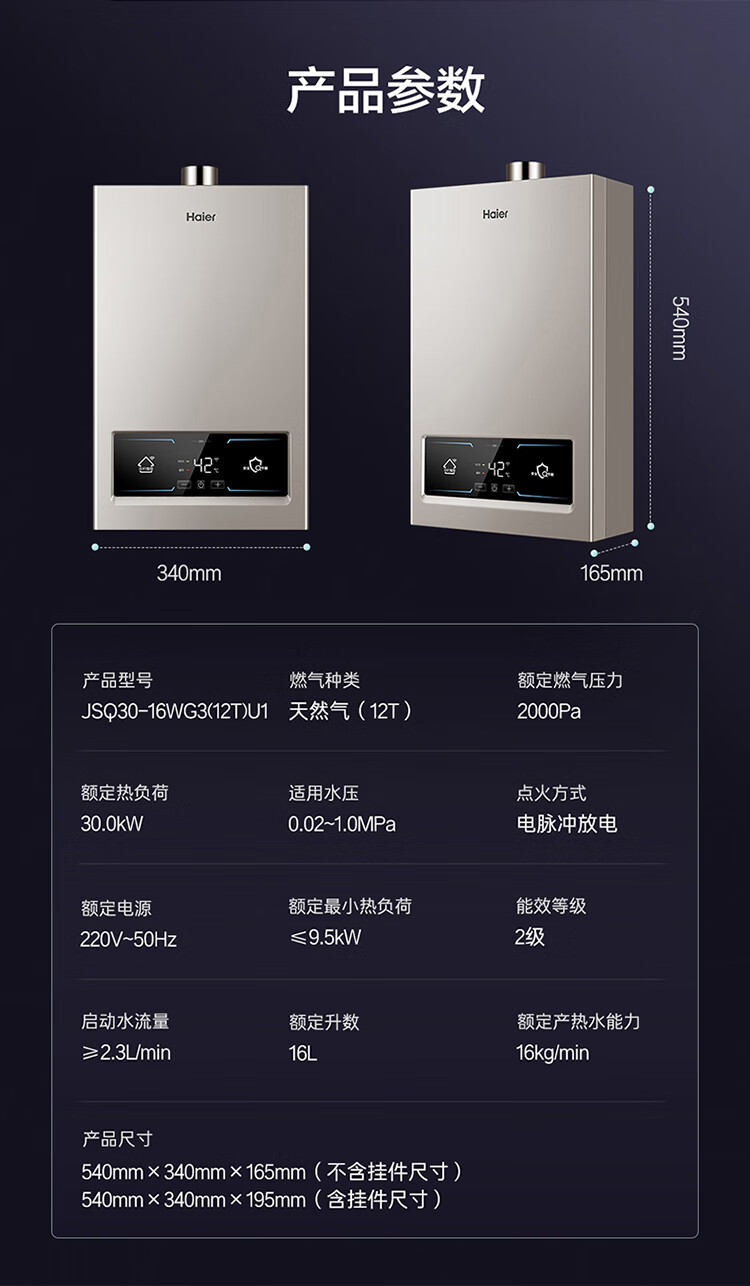 LR海尔(Haier)16升燃气热水器天然气 ECO节能 JSQ30-16WG3(12T)U1