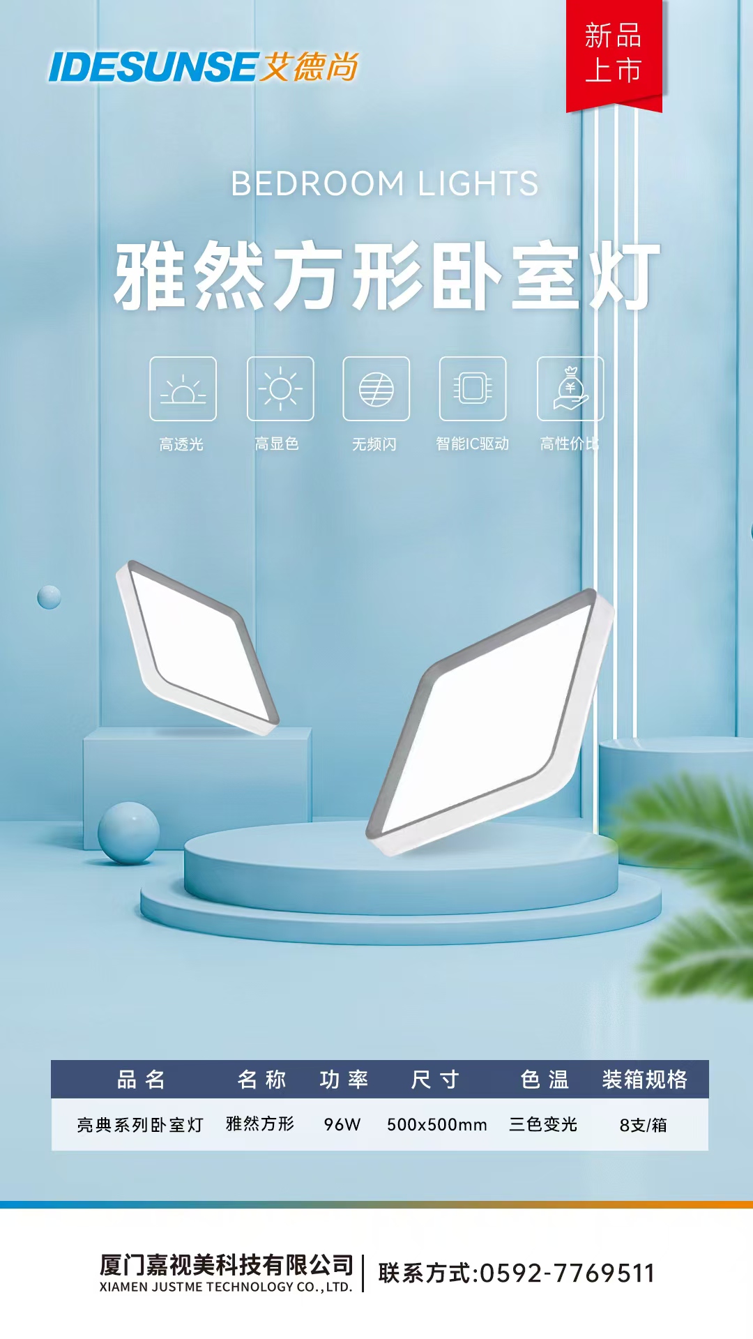 艾德尚-雅然方形卧室灯/三色变光