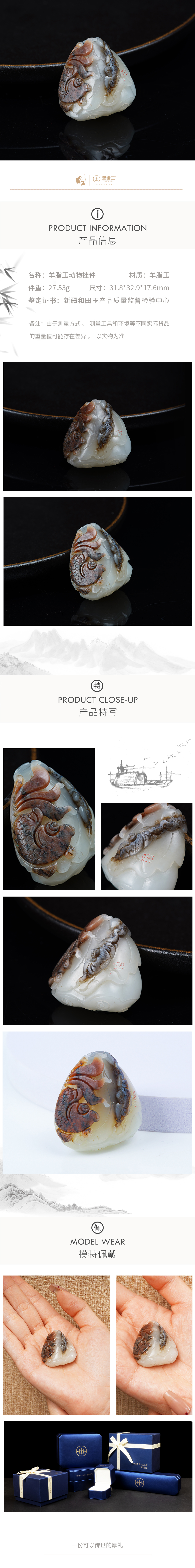 新疆国玉盟世玉和田玉羊脂玉挂件(鱼和蝙蝠)【带证书·顺丰物流】