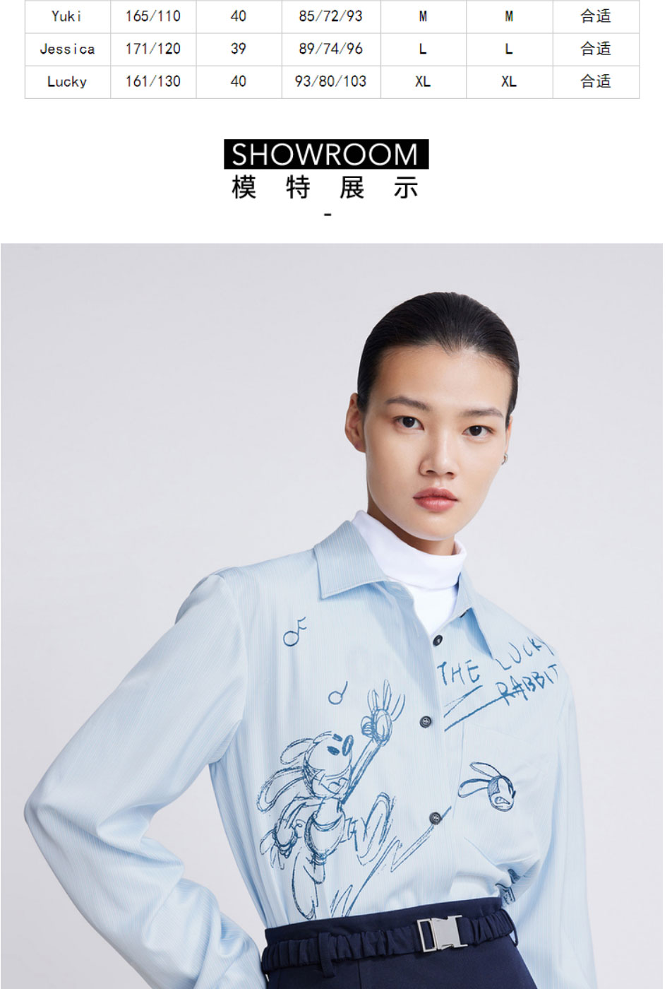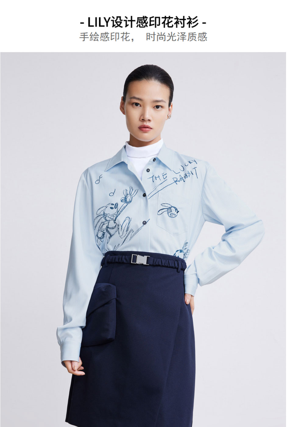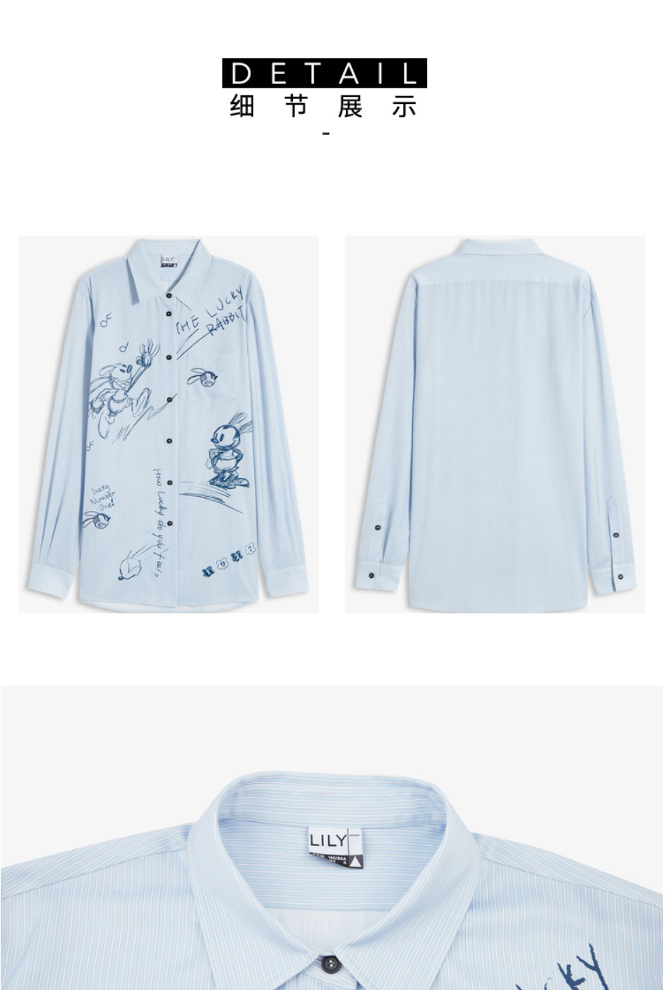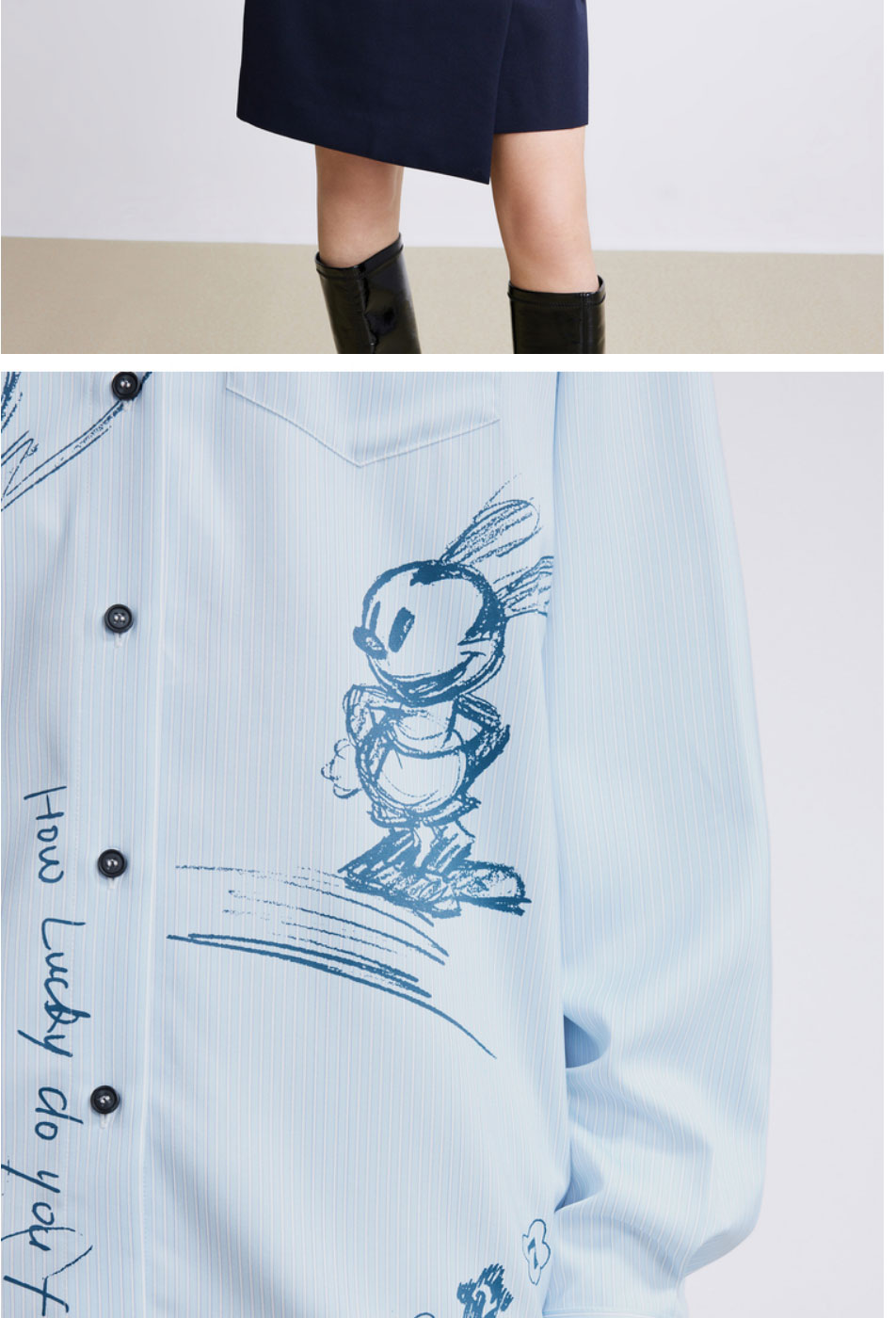 LILY迪士尼Oswald系列2022春新款女装时尚手绘感印花衬衫122120C4805