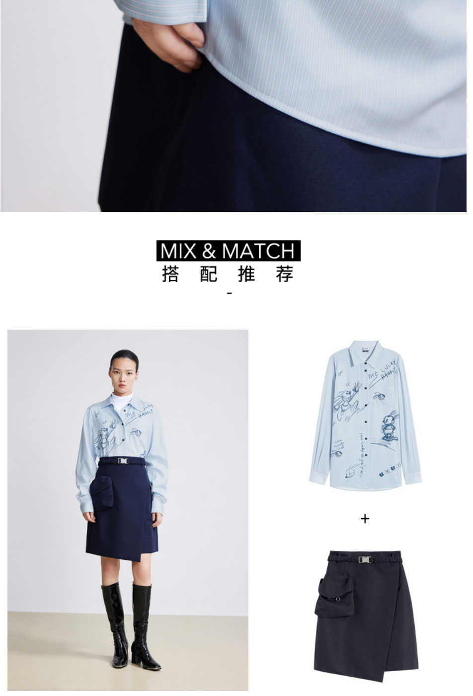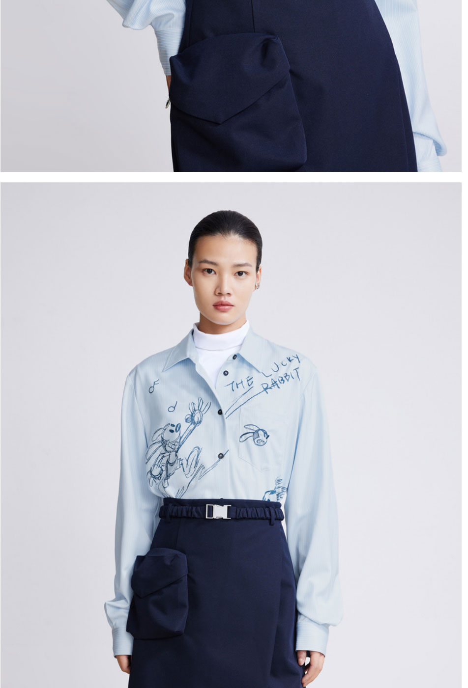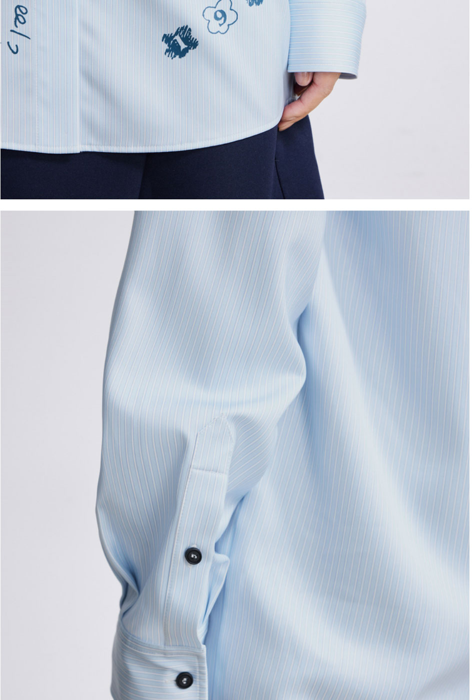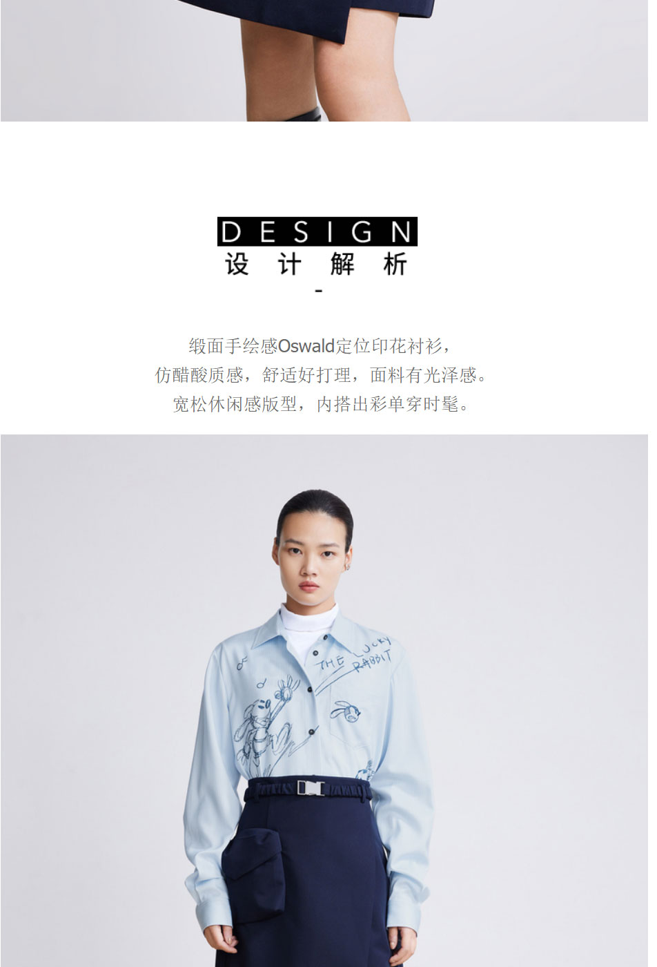 LILY迪士尼Oswald系列2022春新款女装时尚手绘感印花衬衫122120C4805