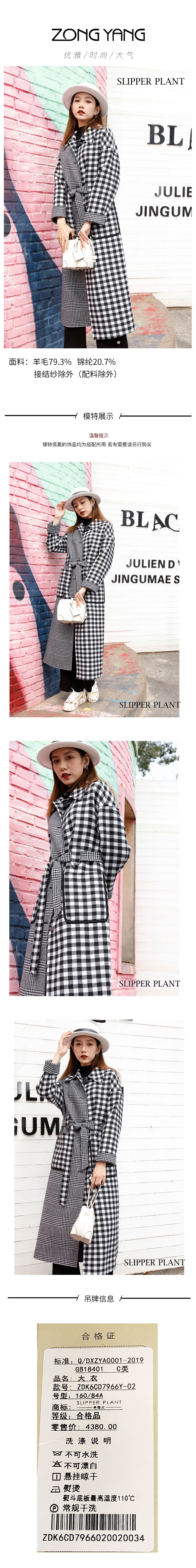 宗洋&卓蔻兰 女士长款时尚格纹大衣ZDK6CD7966Y-02