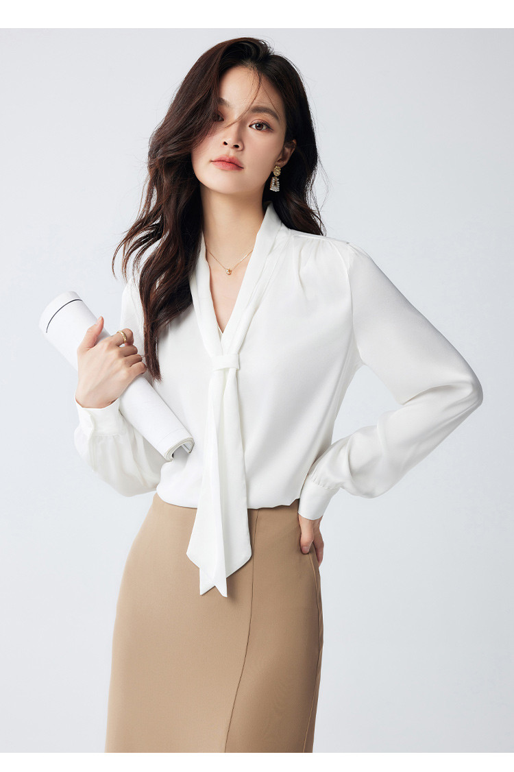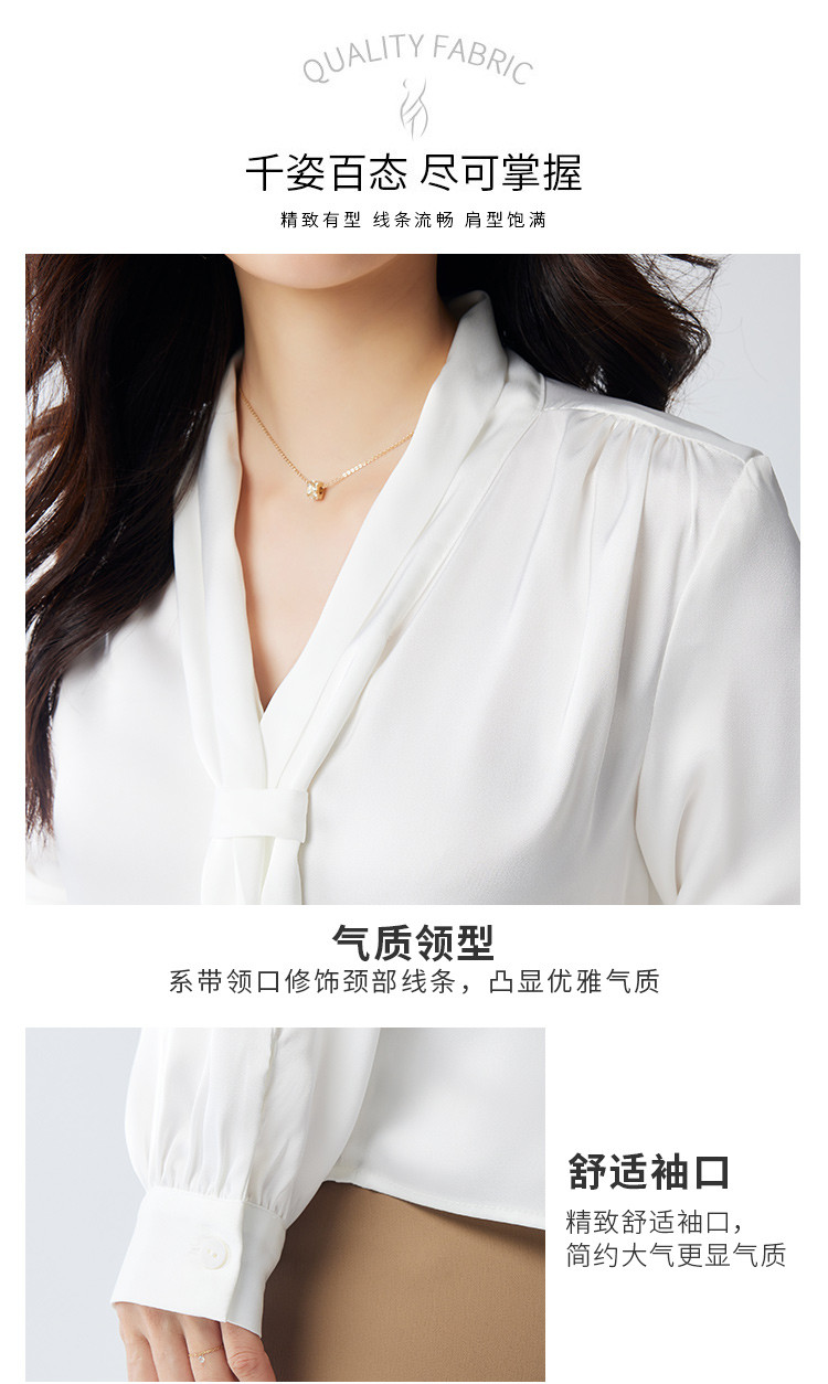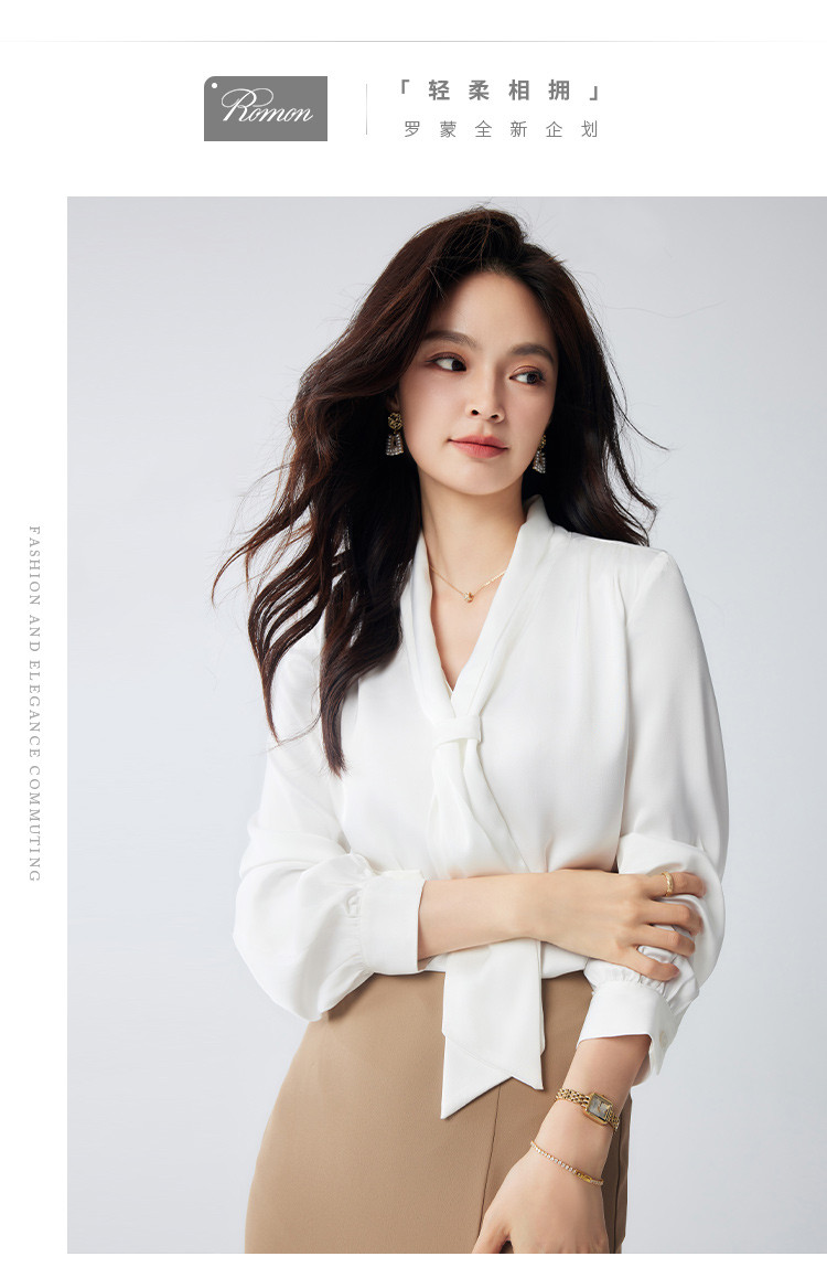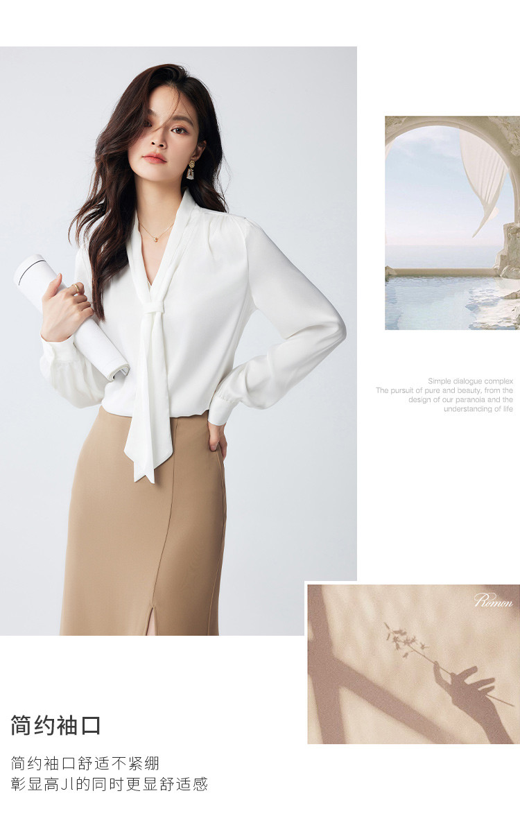 【系带领口】罗蒙长袖衬衫气质优雅清新日常商务通勤V领衬衫女