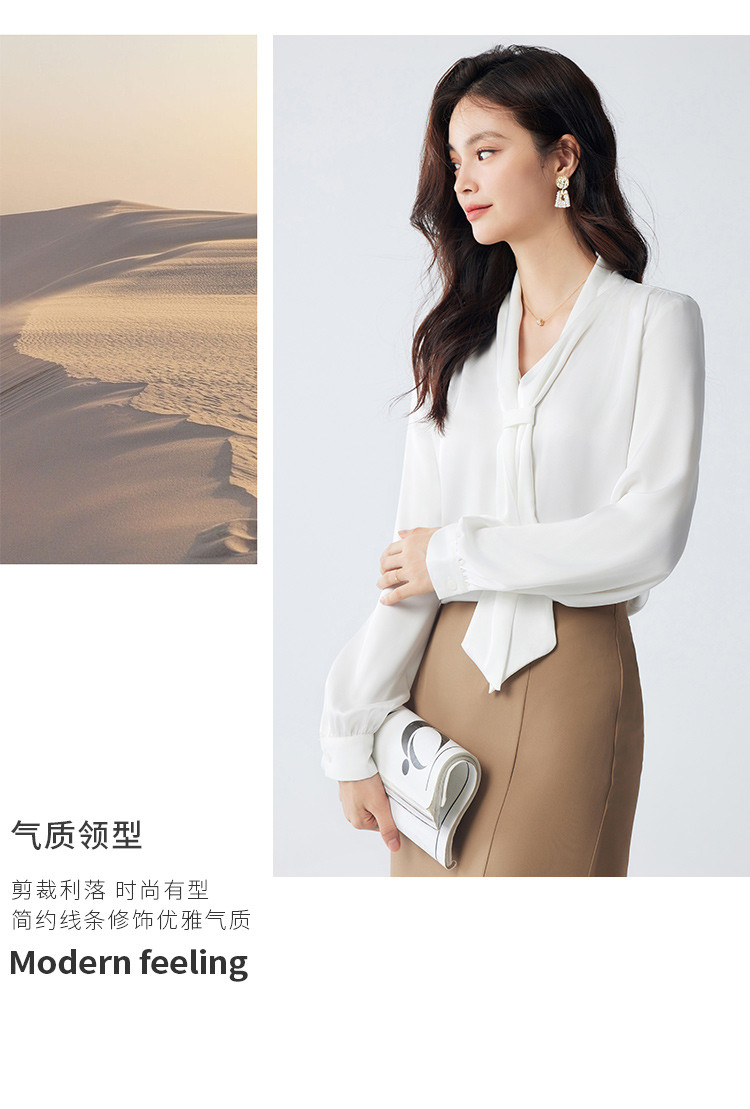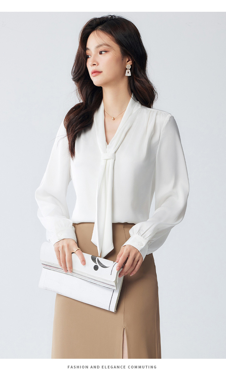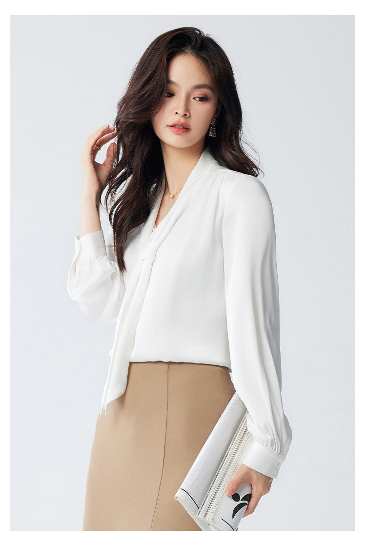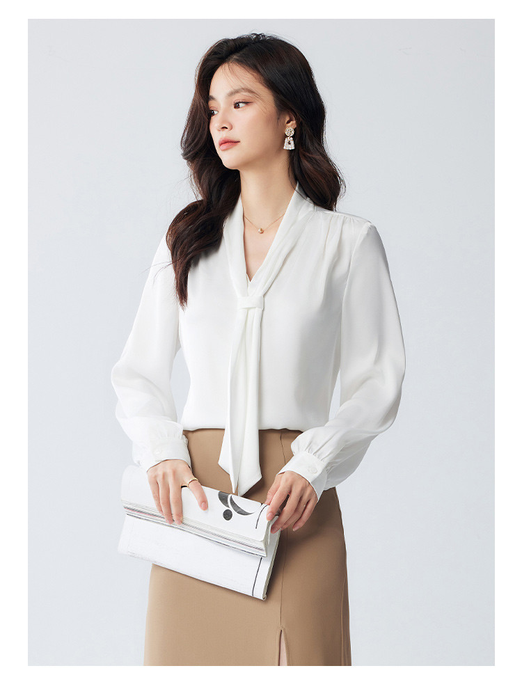 【系带领口】罗蒙长袖衬衫气质优雅清新日常商务通勤V领衬衫女