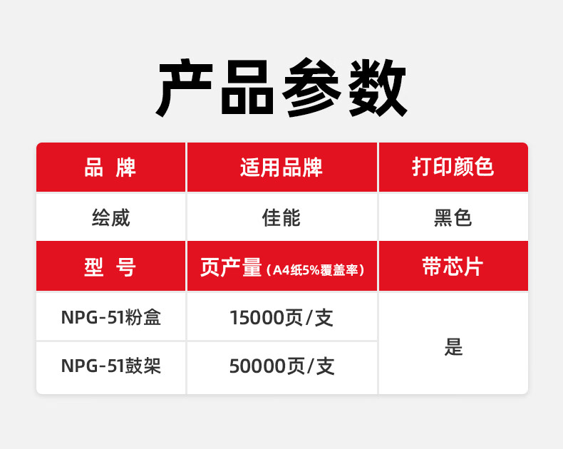 绘威臻享版 NPG-51粉盒 黑色 适用佳能Canon IR-2520 2525 2530 2520i 2525i 2530i 2545 1支装
