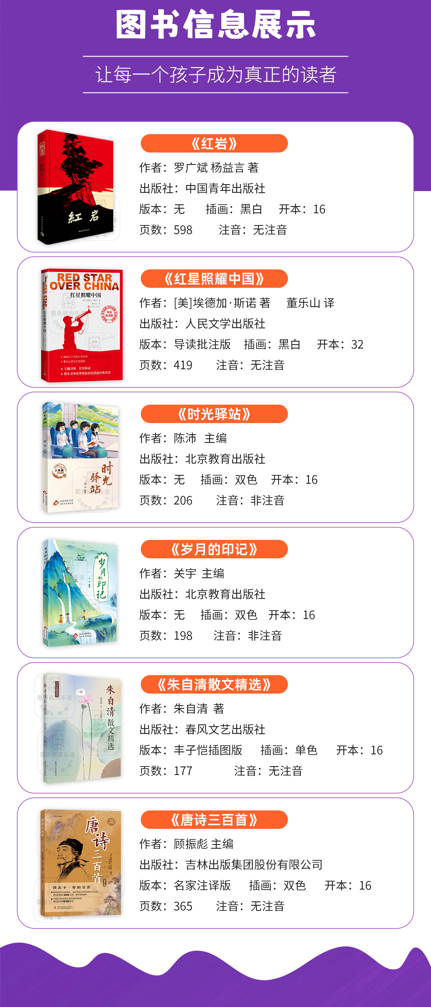 班班25秋八年级【书目】《红星照耀中国》《红岩》《时光驿站》《岁月的印记》《朱自清散文精选》《唐诗三百首》+导读单