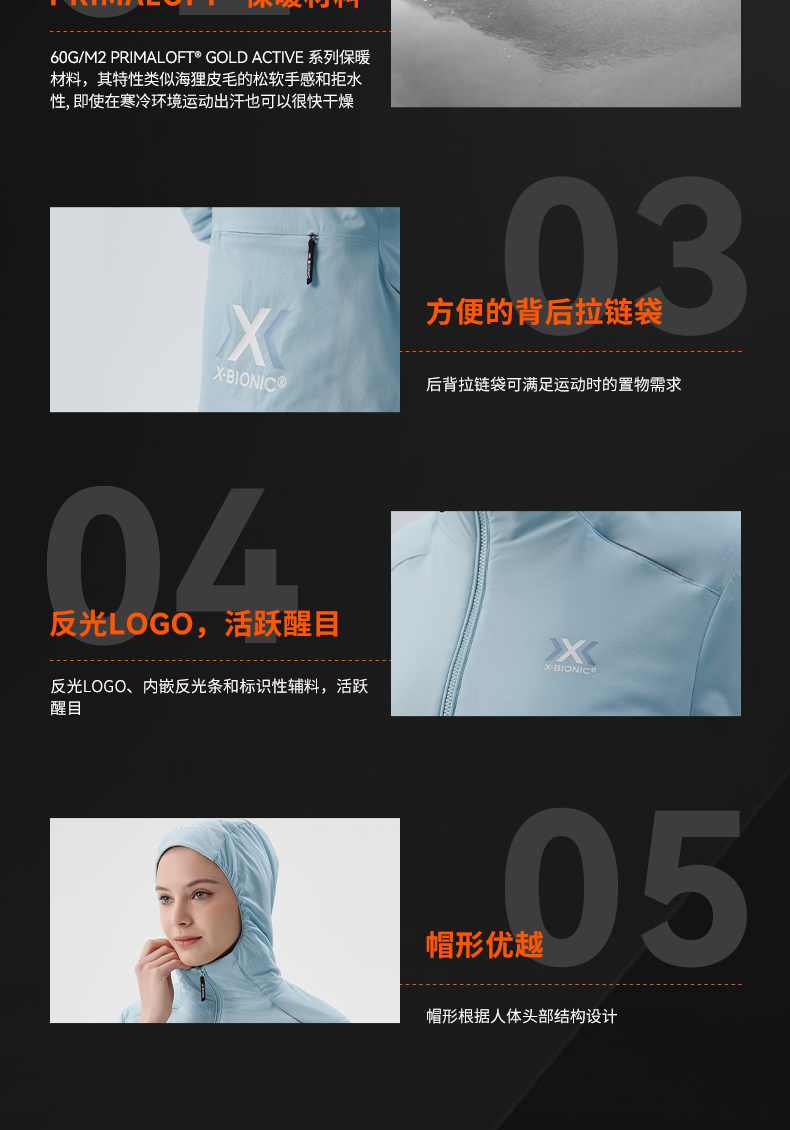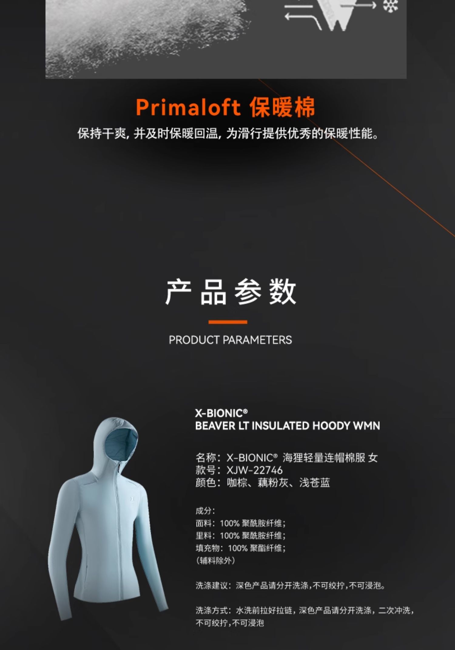 X-BIONIC 海狸轻量连帽保暖棉服女 PRIMALOFT GOLD 金标P棉 22746