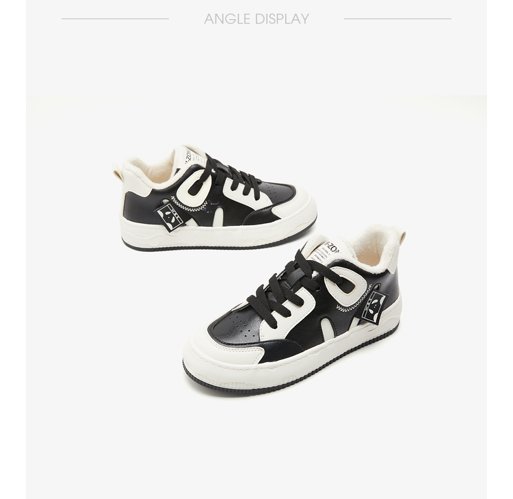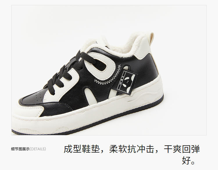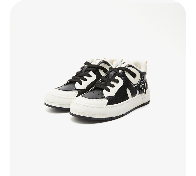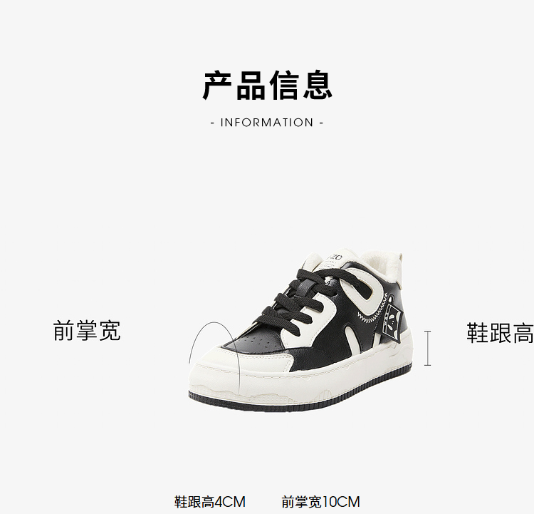 西遇黑白熊猫鞋女新款秋冬美式小众加绒休闲鞋高帮厚底滑板鞋22034224