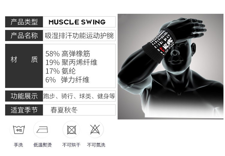 835肌动户外运动护腕吸湿排汗马拉松越野跑步擦汗腕带一对装速干篮球护套