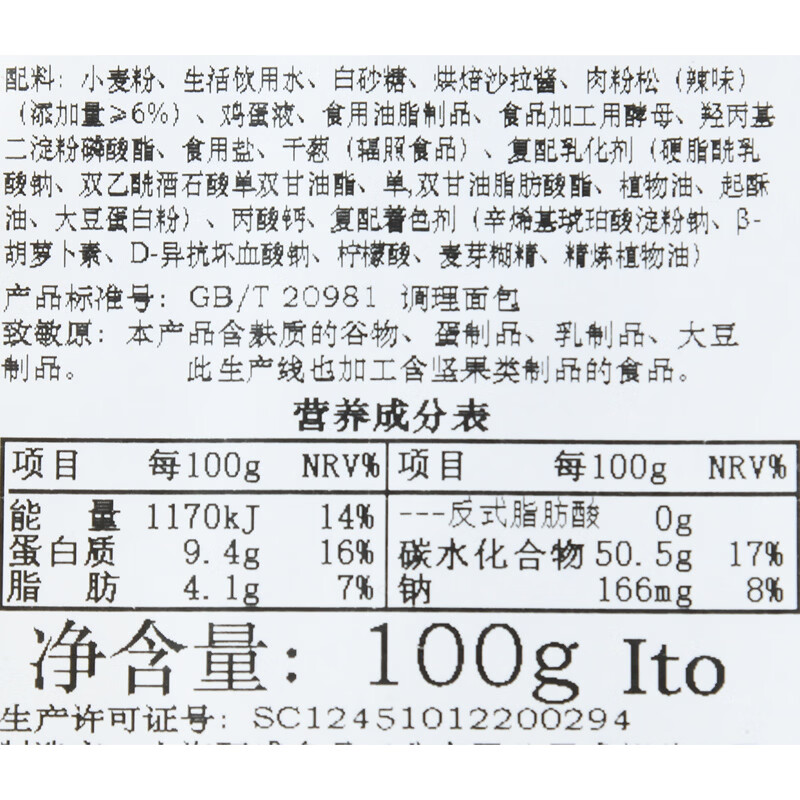 辣松餐包面包(2个装)100g
