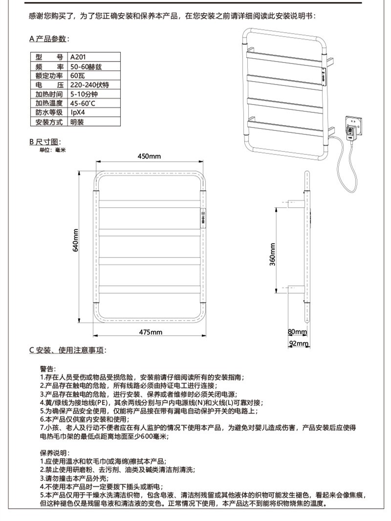 不锈钢电热毛巾架A201
