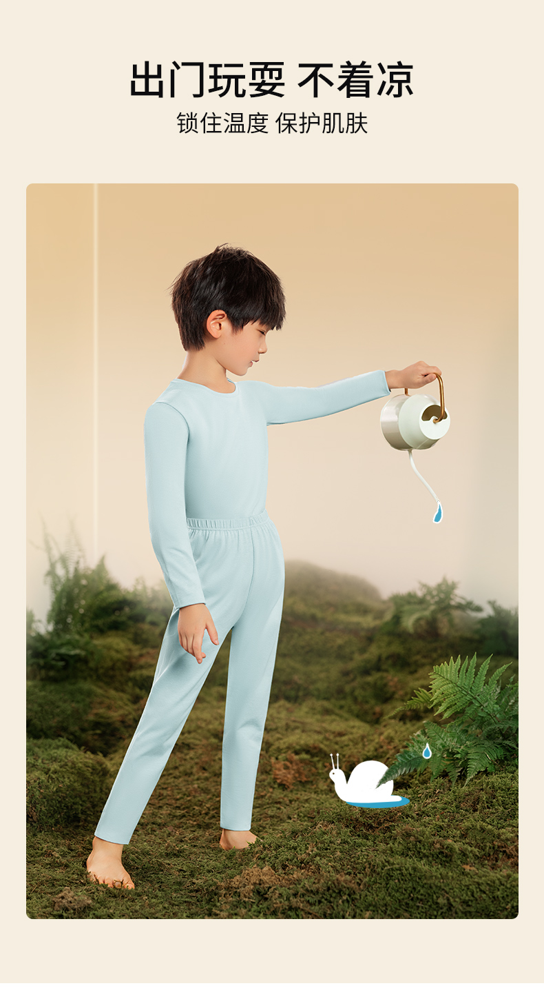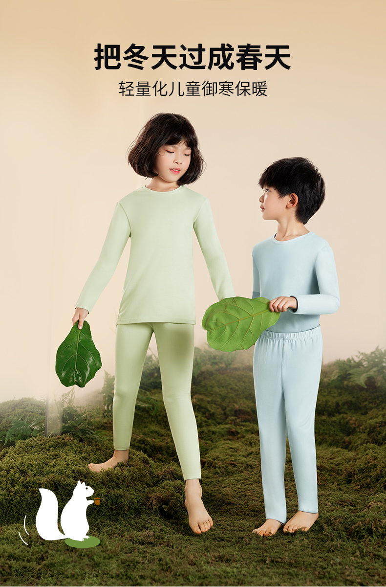 有棵树纯棉男女童内搭圆领秋衣秋裤中大童保暖内衣套装C-WC1001