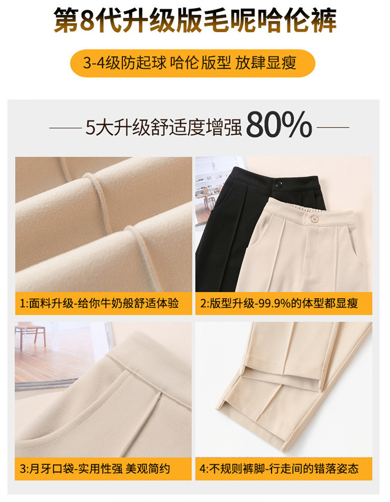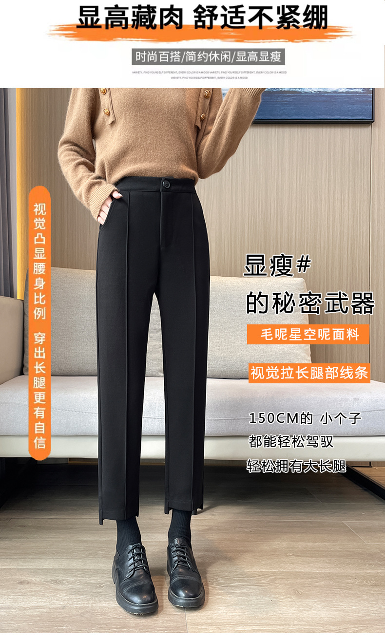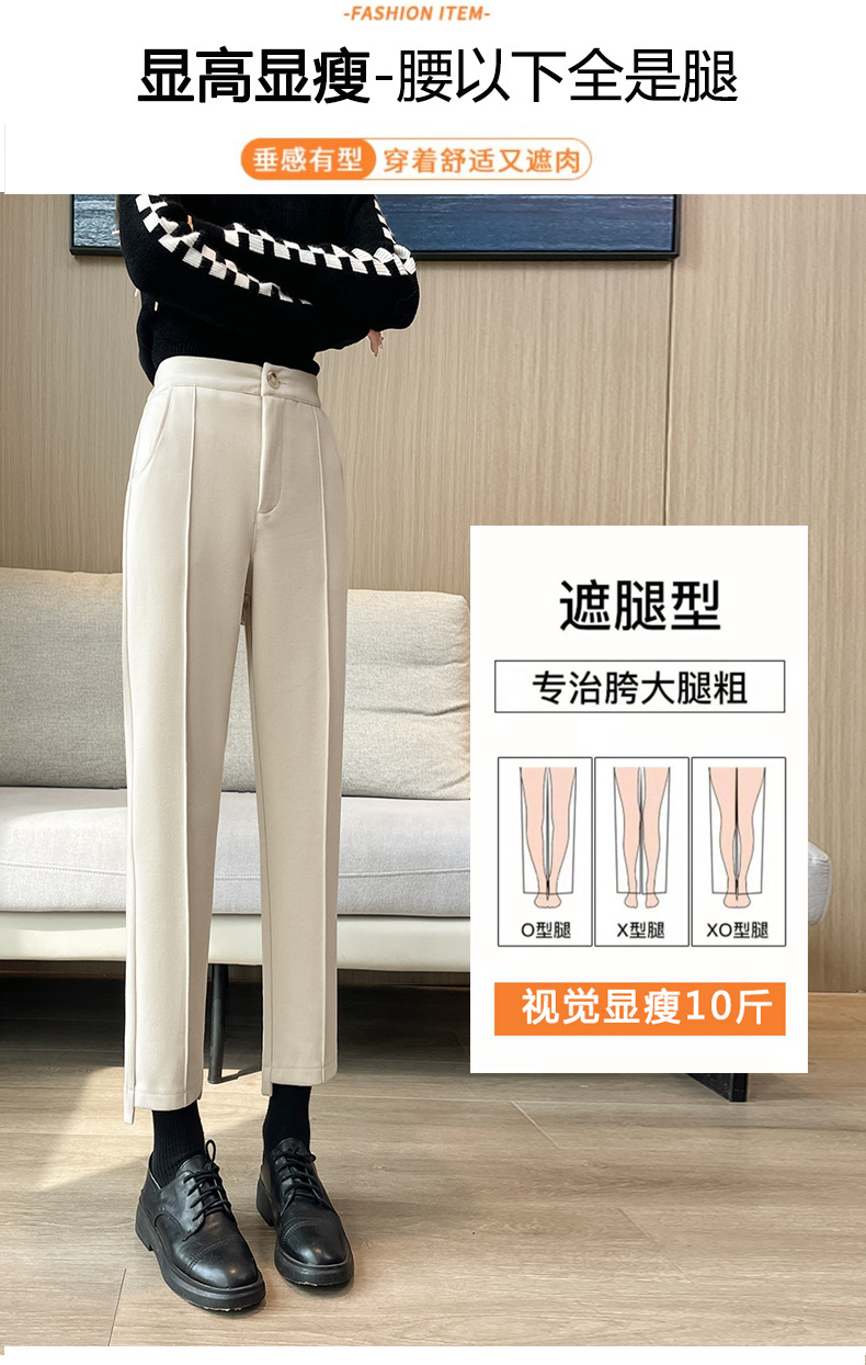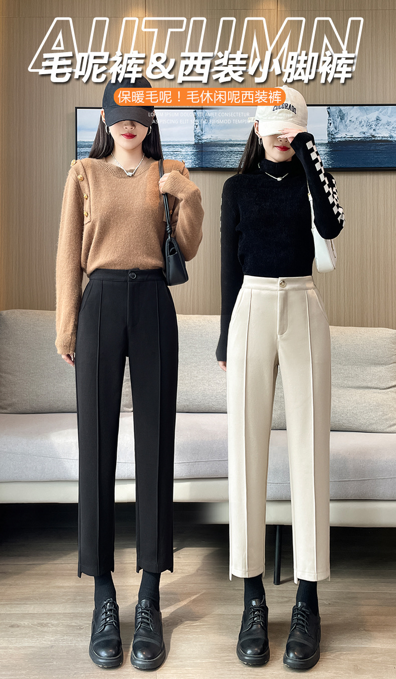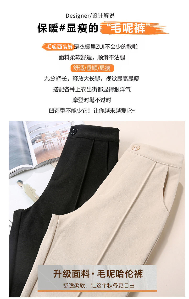 秋冬季休闲加厚九分烟管西装裤】 哈伦直筒毛呢裤 百搭显瘦