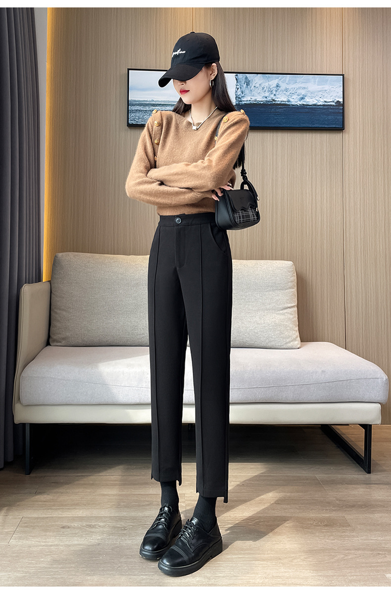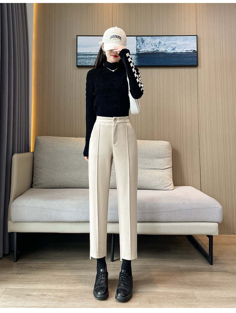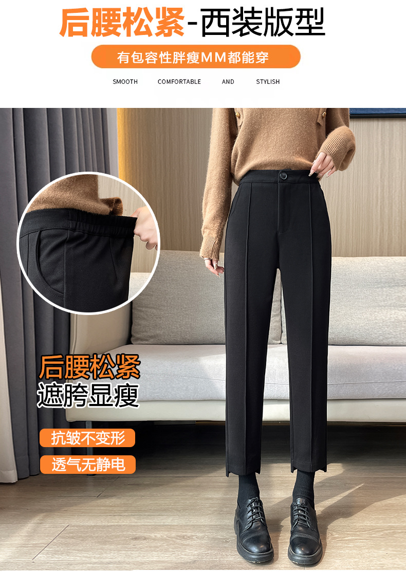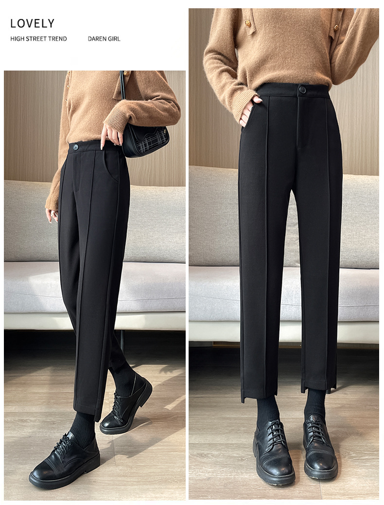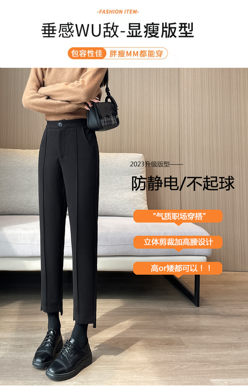 秋冬季休闲加厚九分烟管西装裤】 哈伦直筒毛呢裤 百搭显瘦