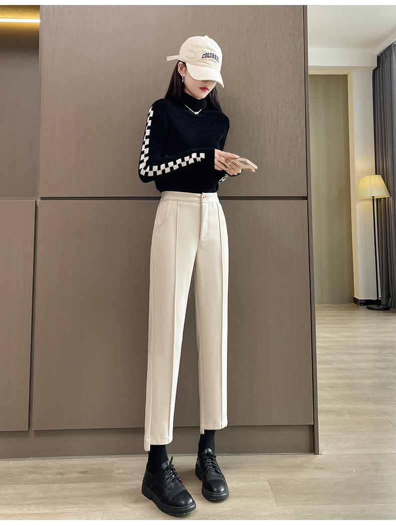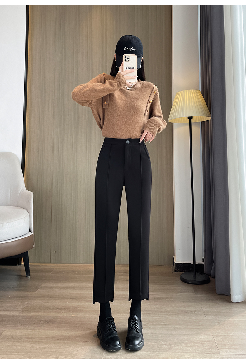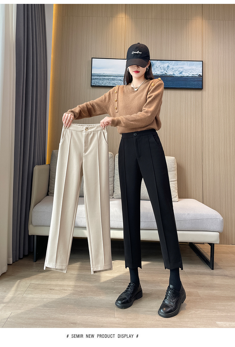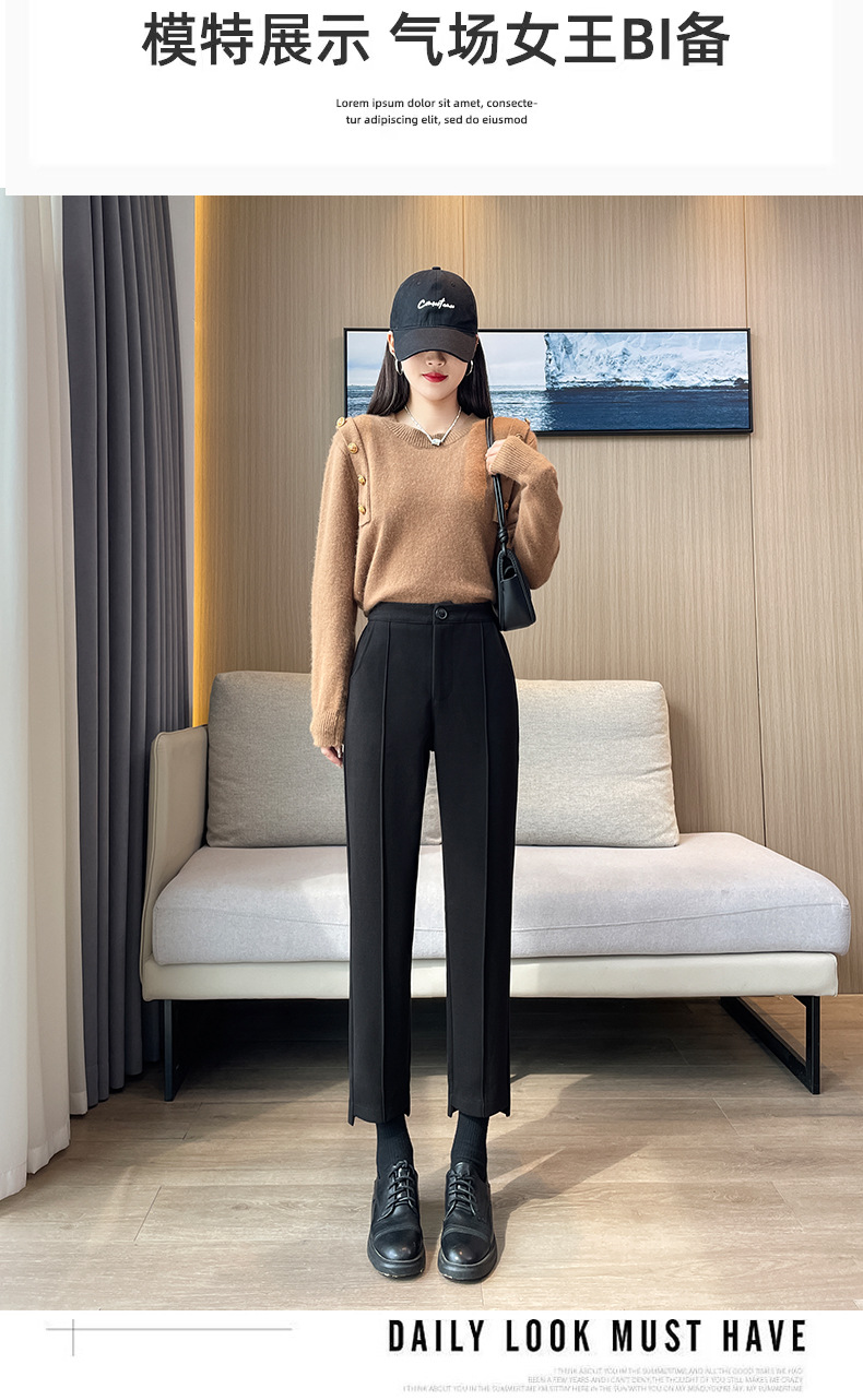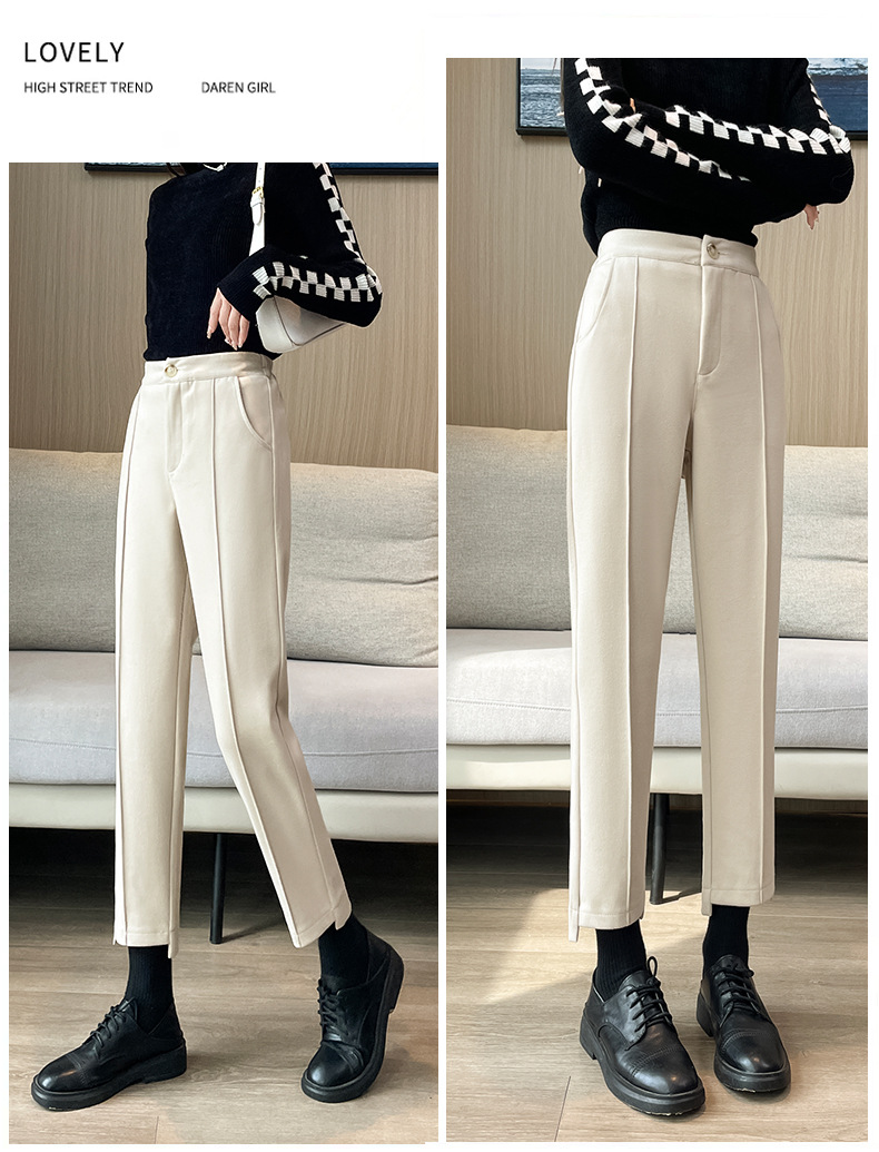 秋冬季休闲加厚九分烟管西装裤】 哈伦直筒毛呢裤 百搭显瘦