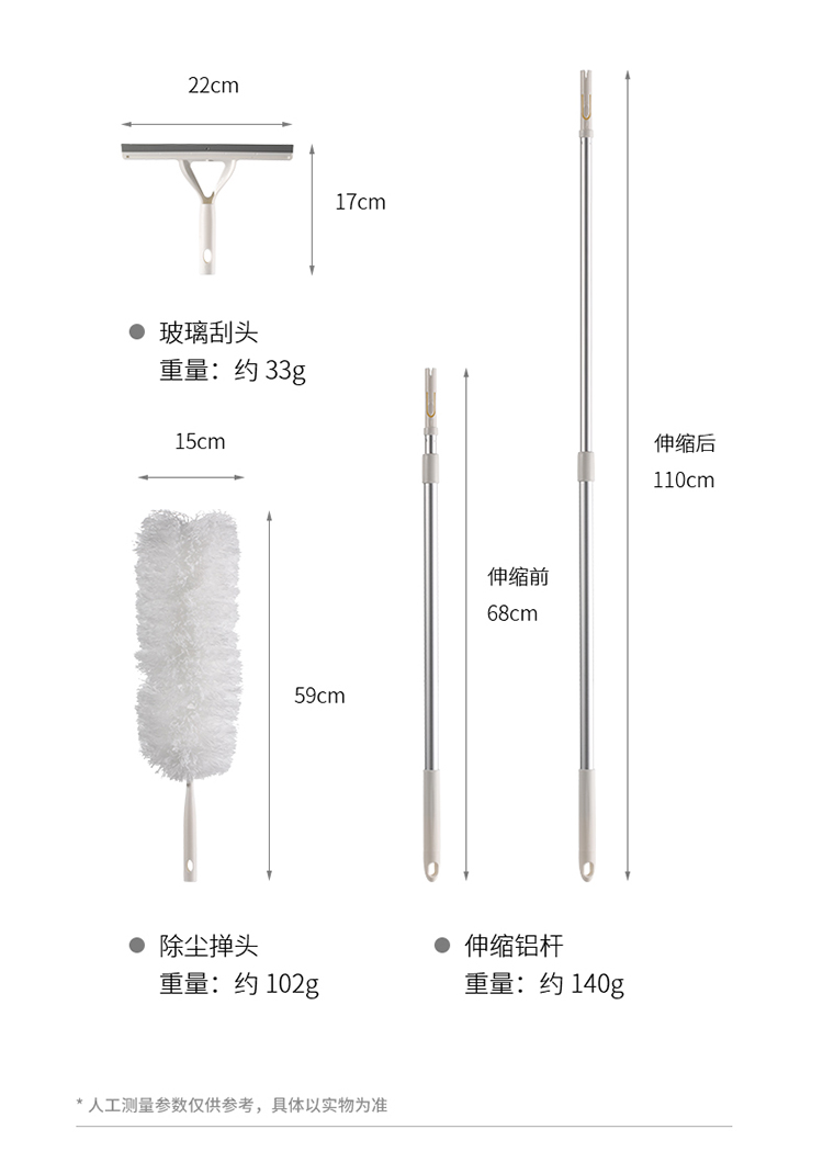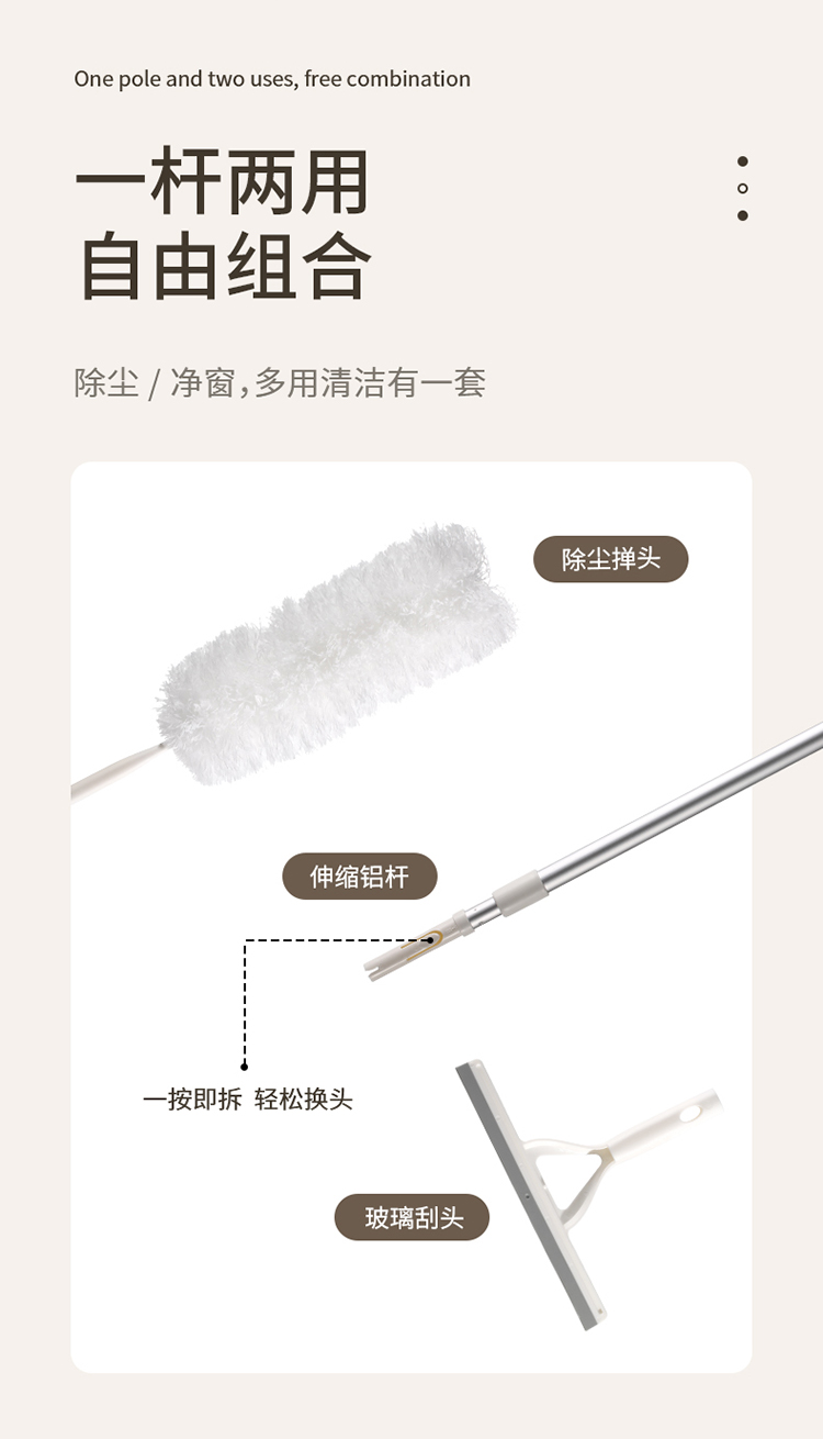 FaSoLa清洁套装伸缩铝杆除尘掸玻璃刮头通用杆