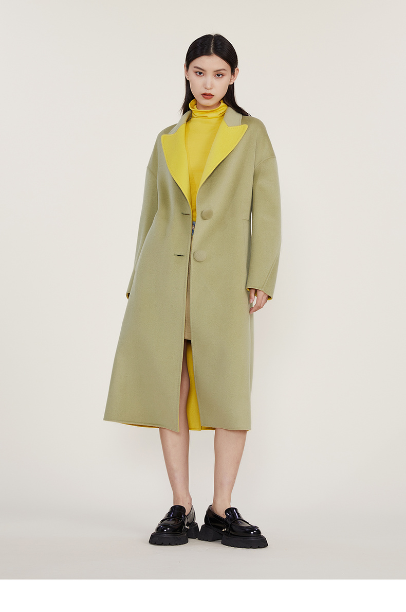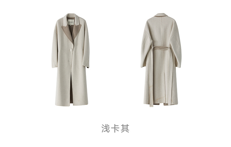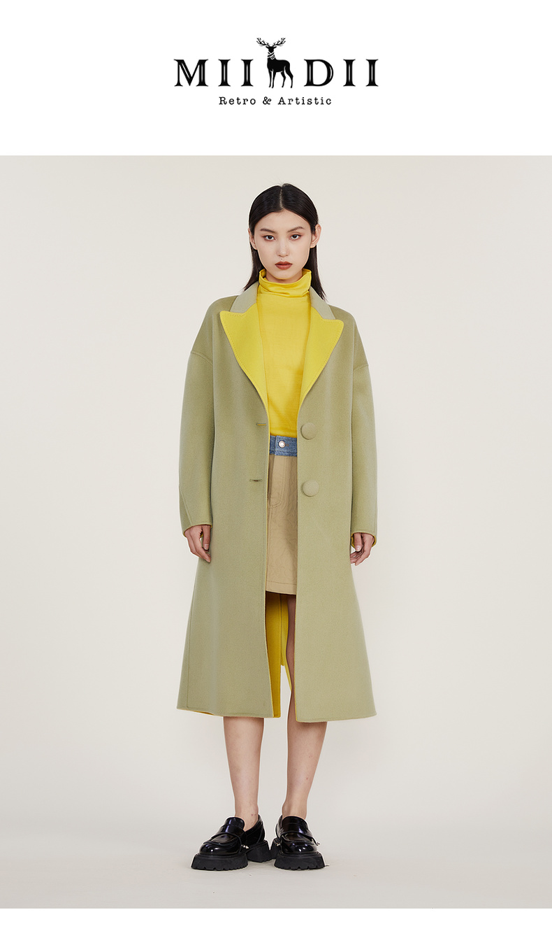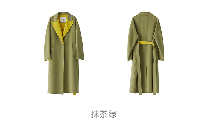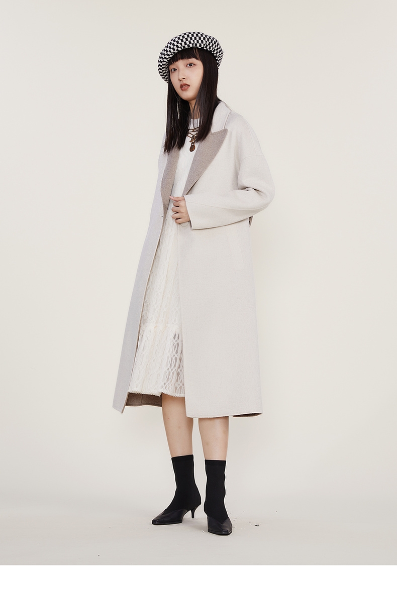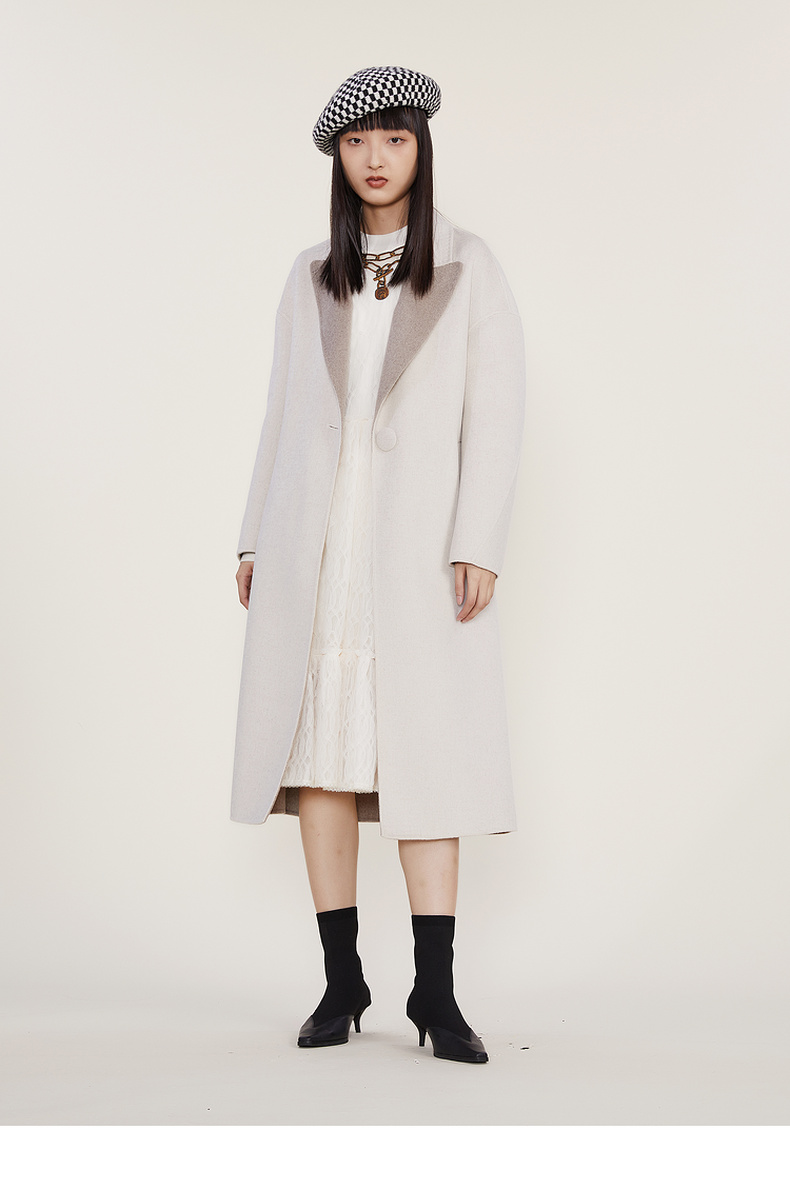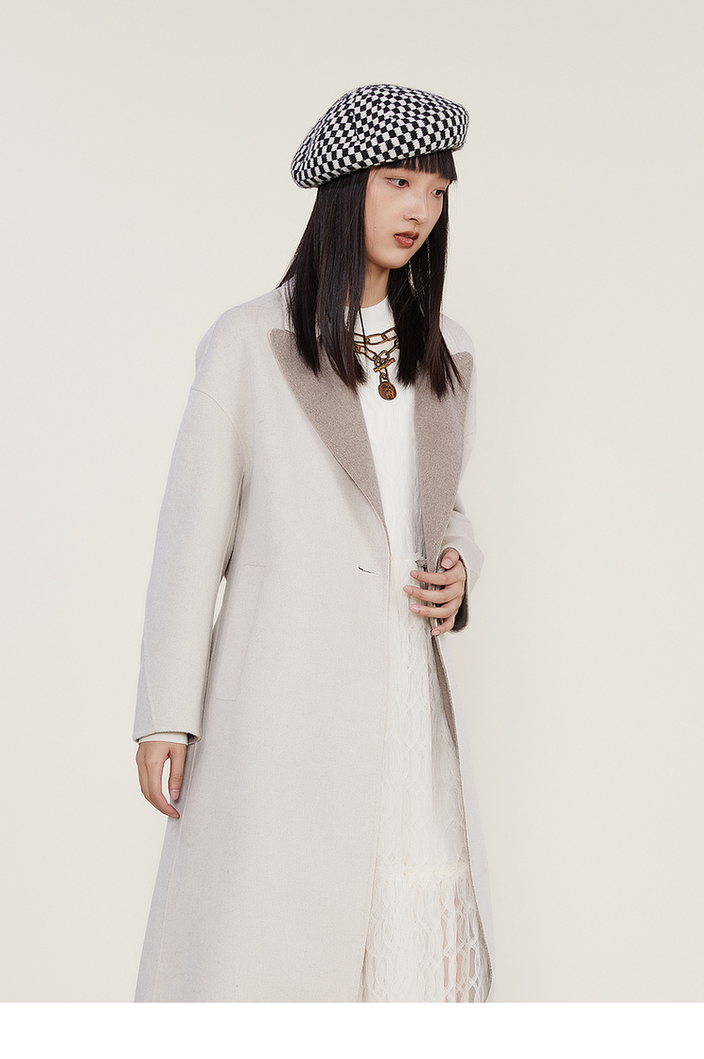 谜底2022冬新款西装领长款羊毛呢大衣女复古双色双面呢224GD1559