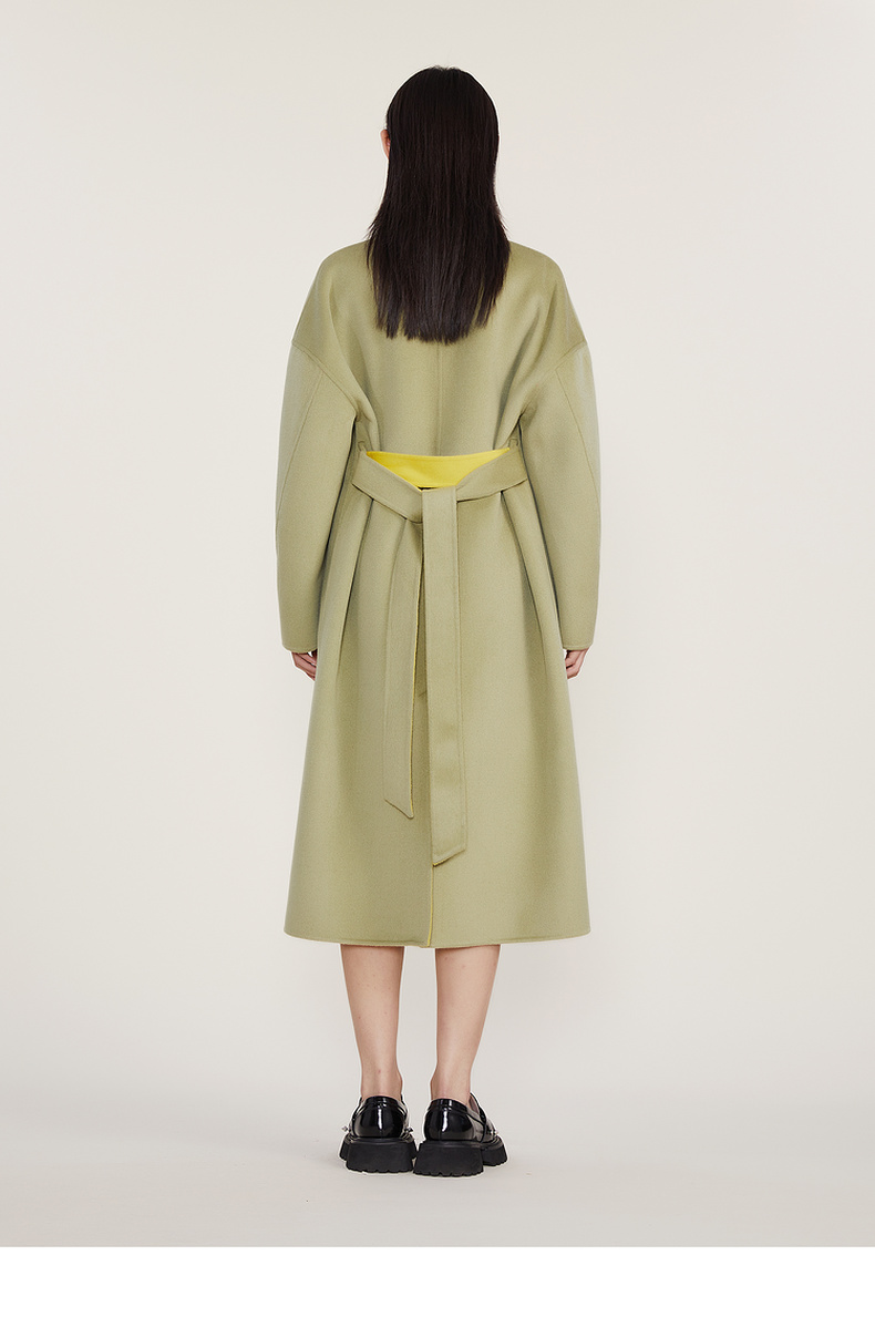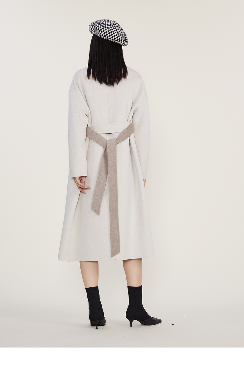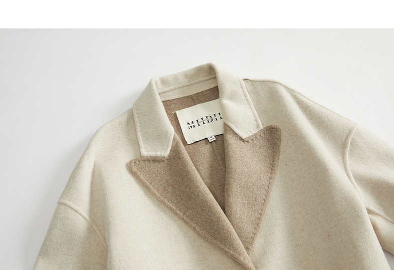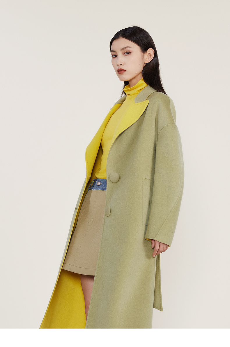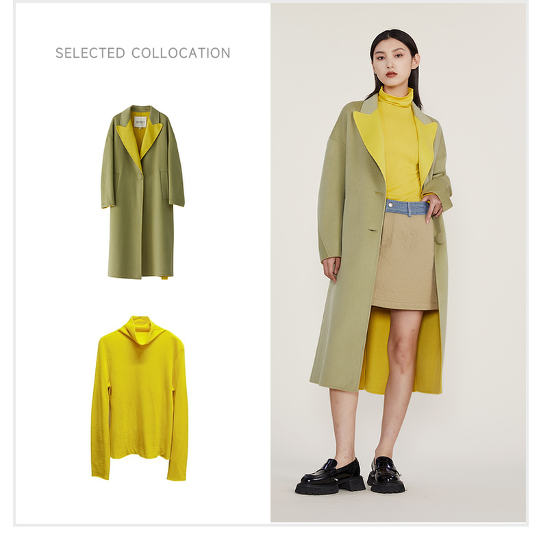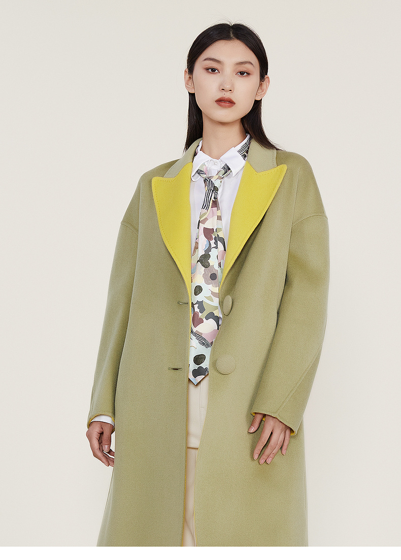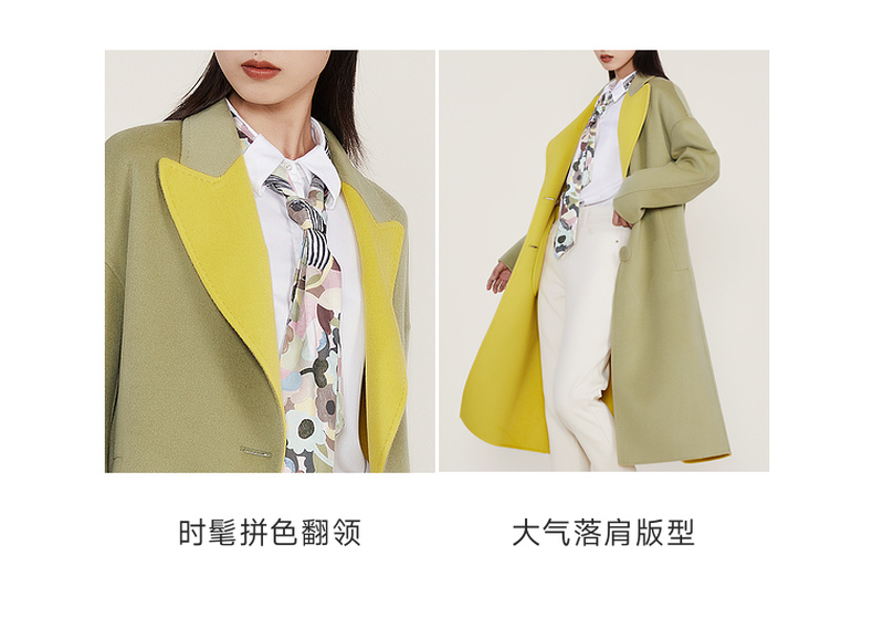 谜底2022冬新款西装领长款羊毛呢大衣女复古双色双面呢224GD1559