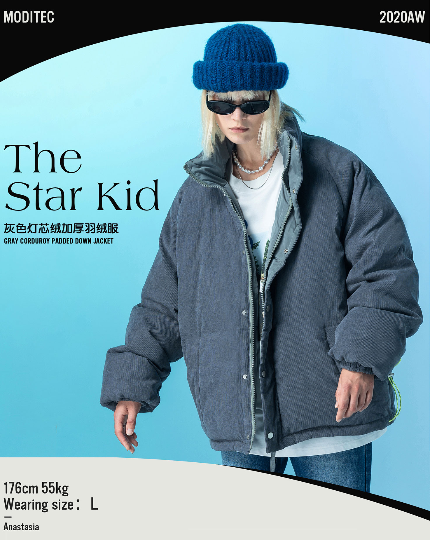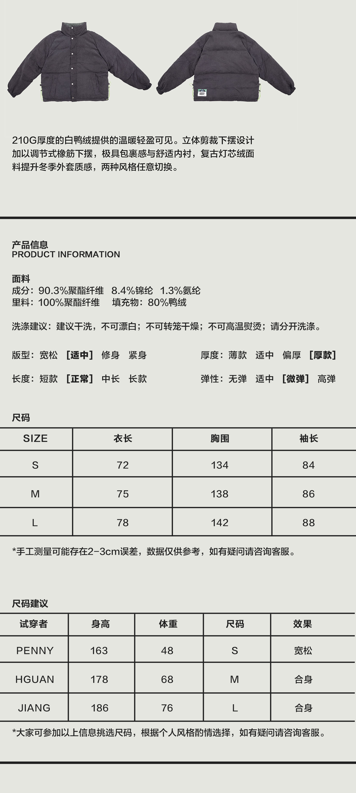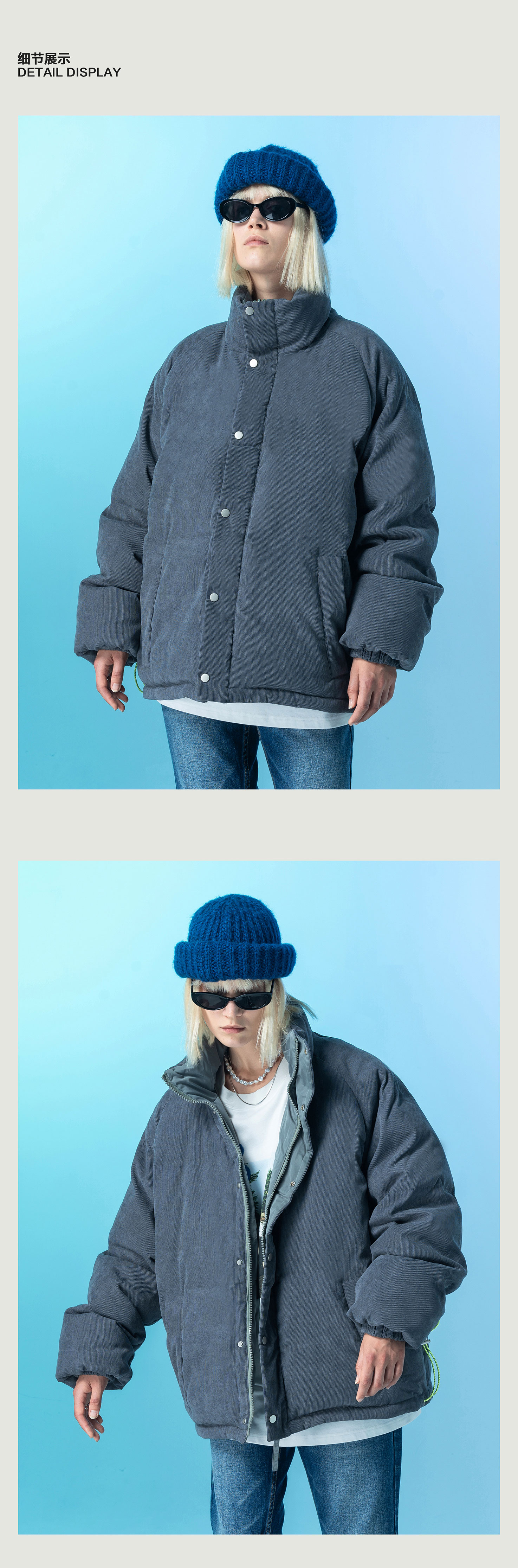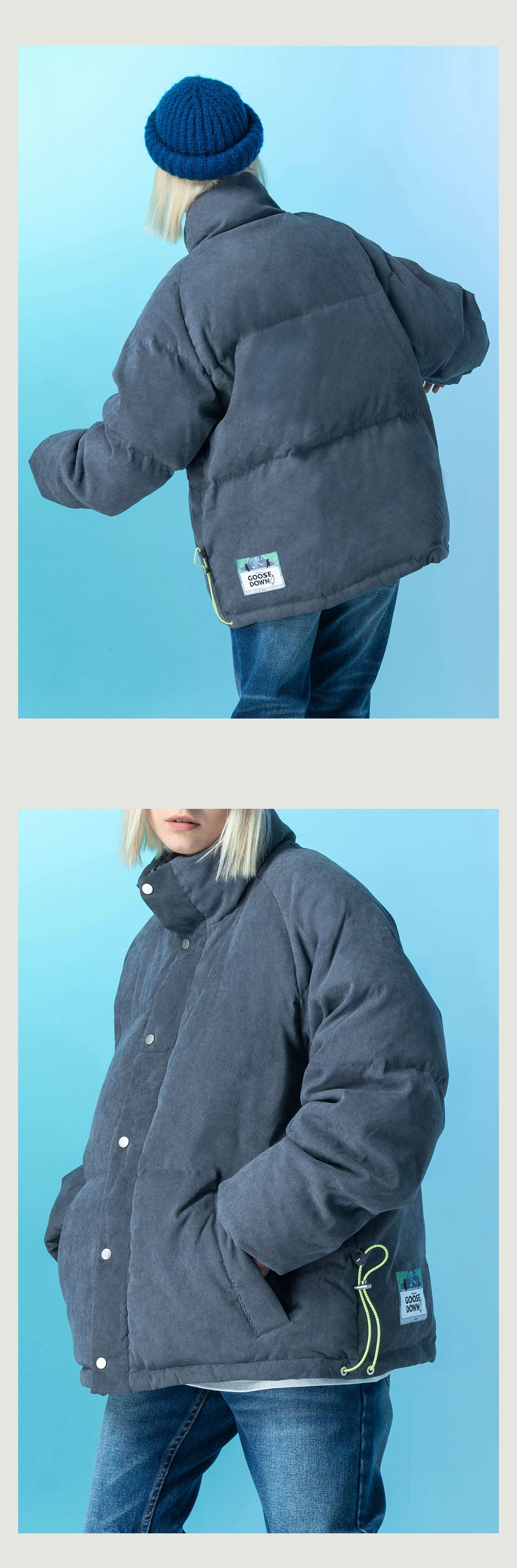 | 颜色: 灰色灯芯绒 | 袖型: 收口袖 |
