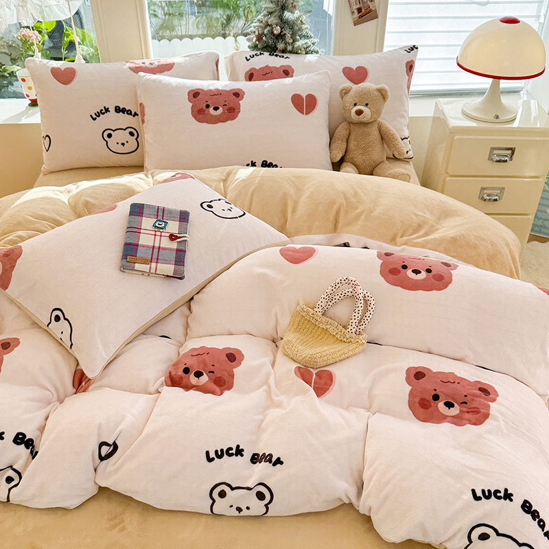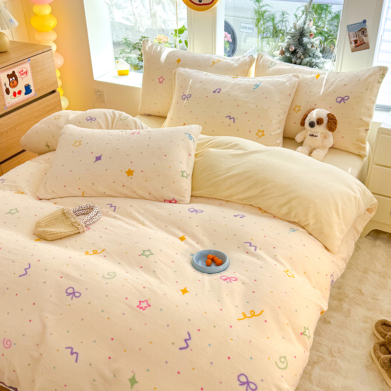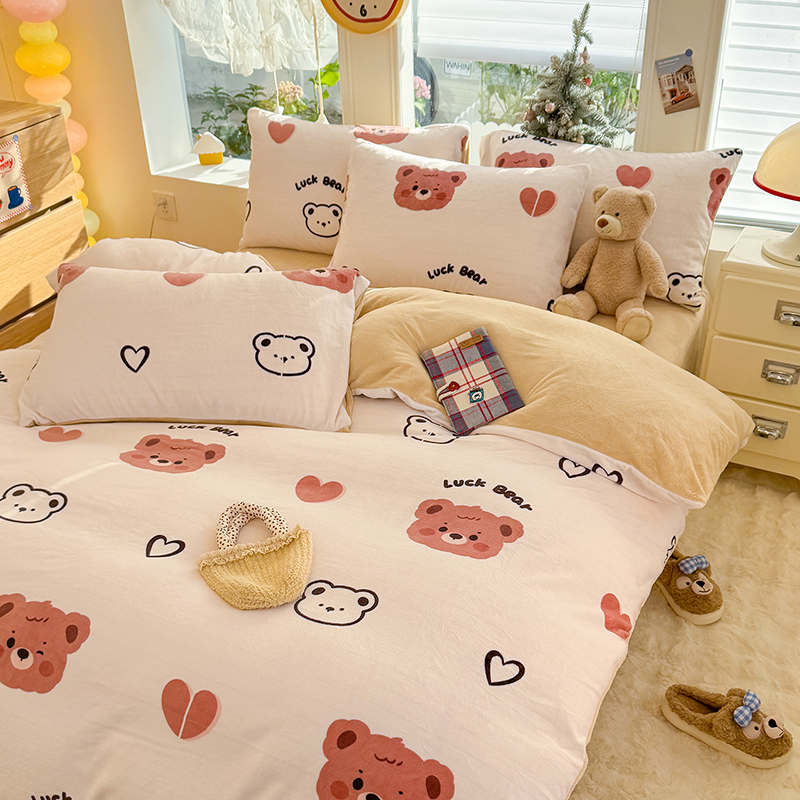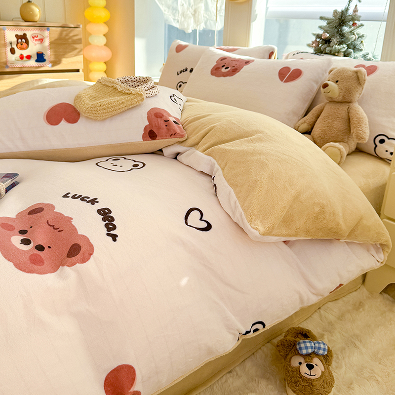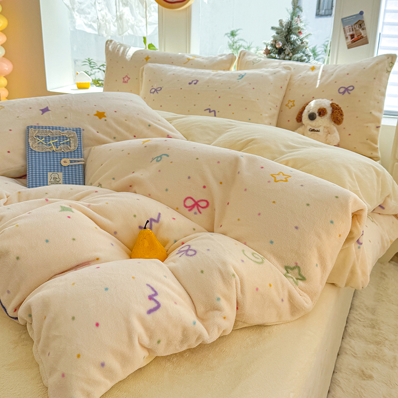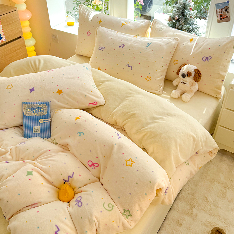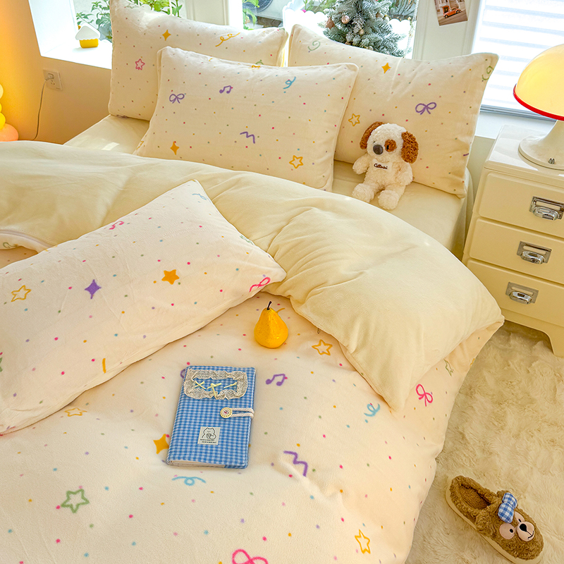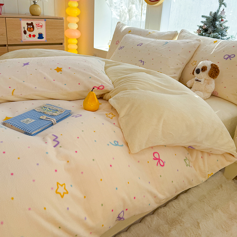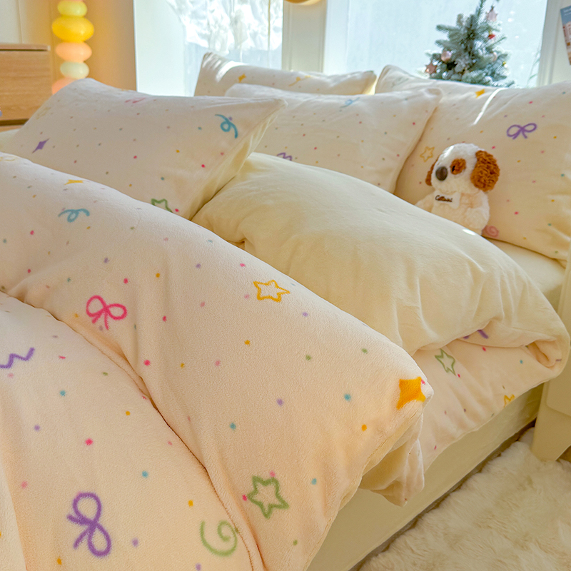 【多样屋专柜】雅鹿 爱心蝴蝶结/花汐/小熊心旅/星彩梦印花牛奶绒四件套200*230cm
