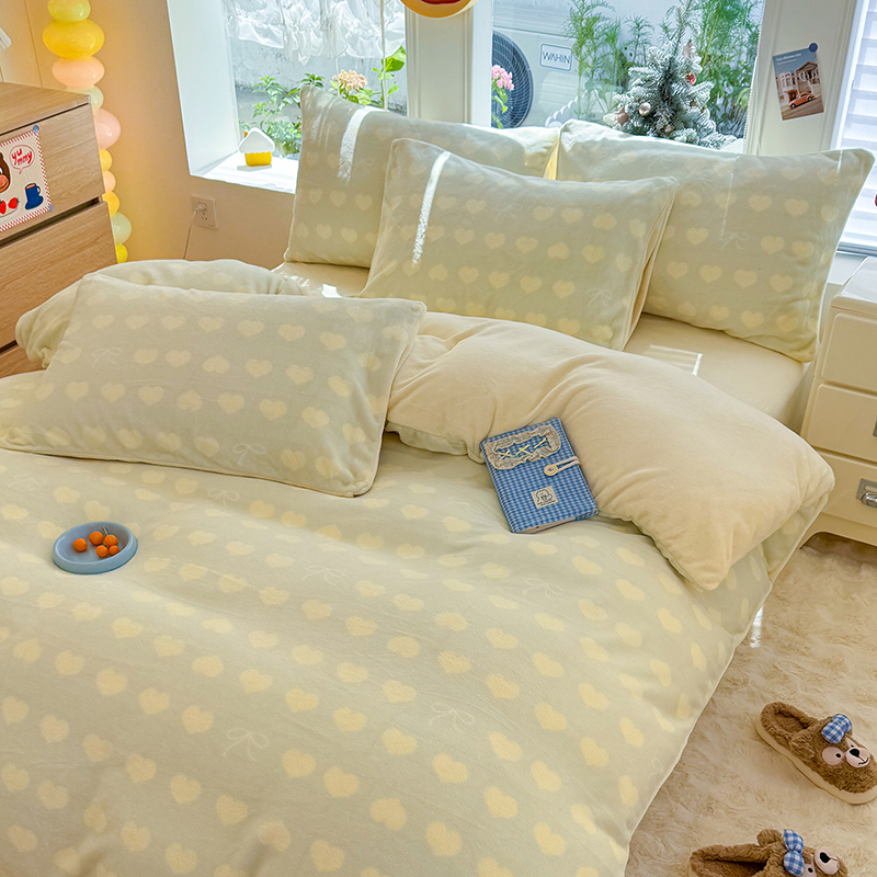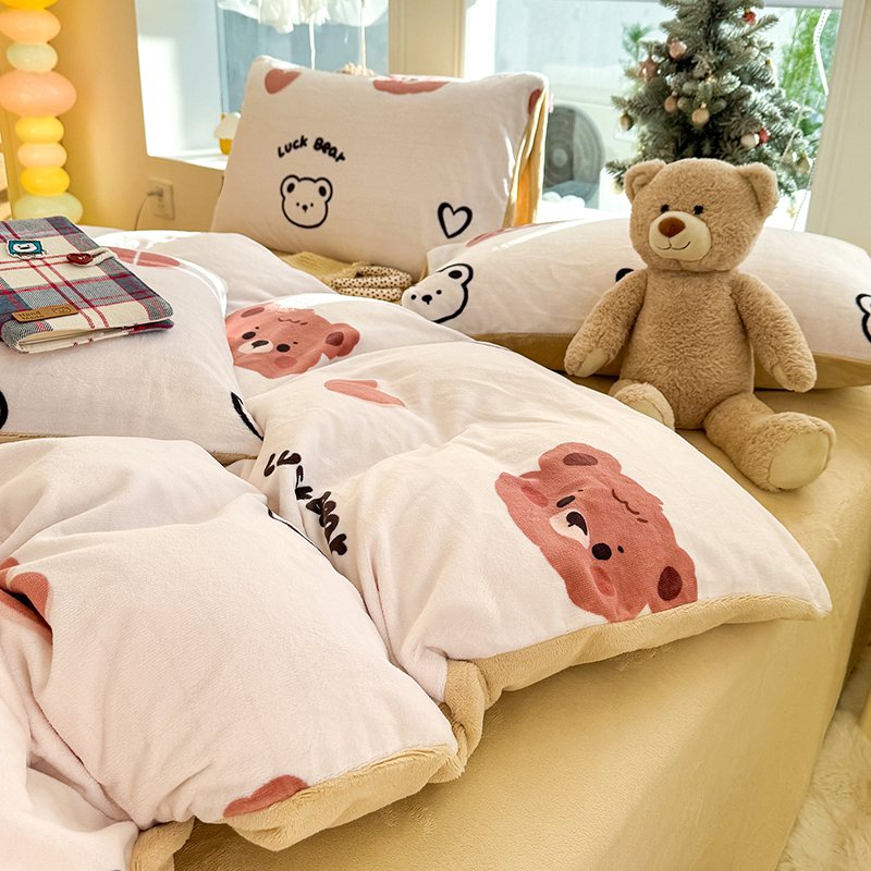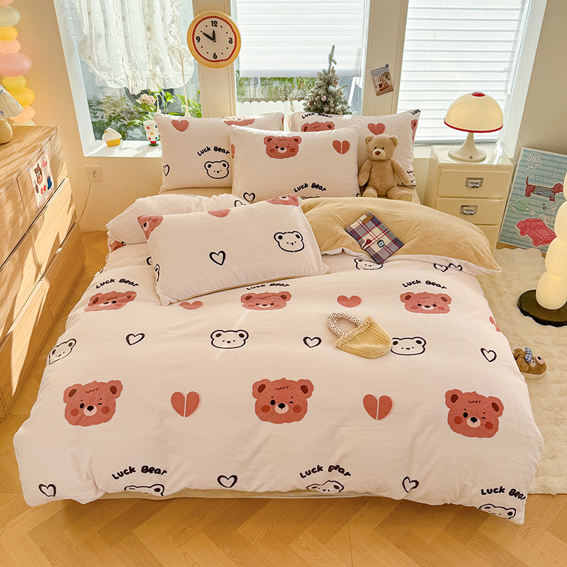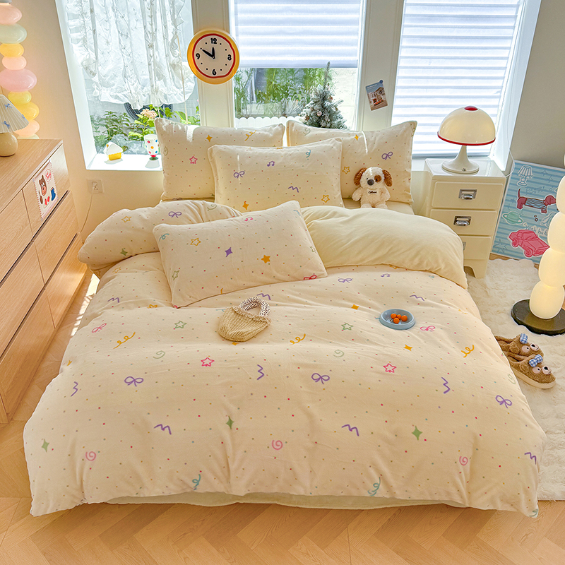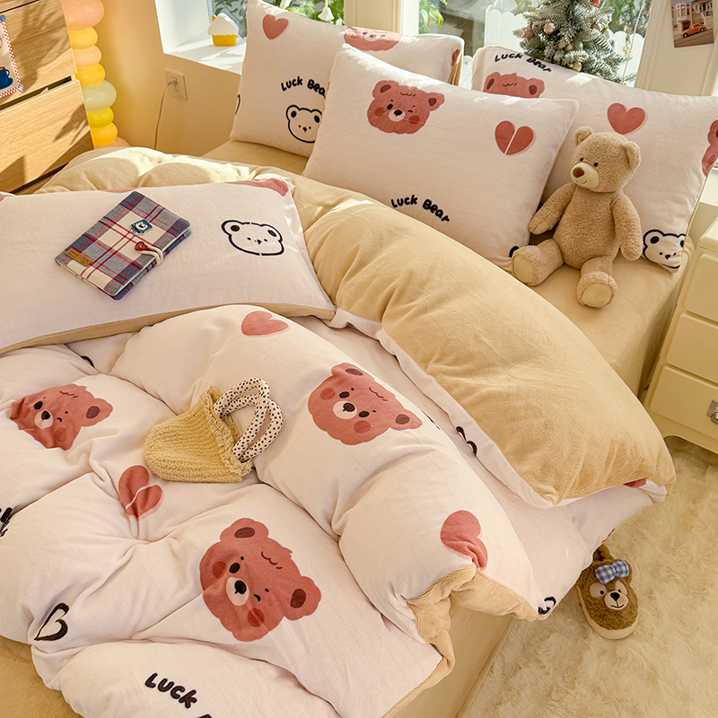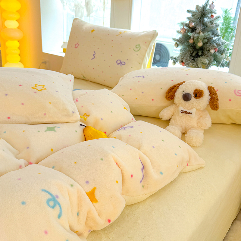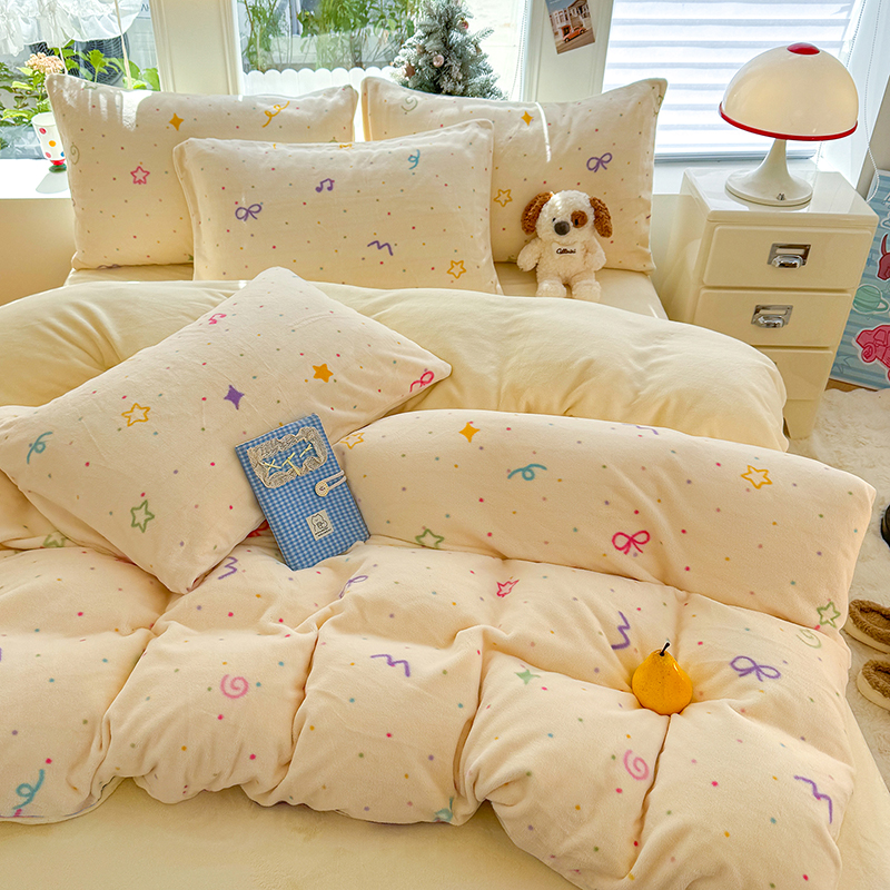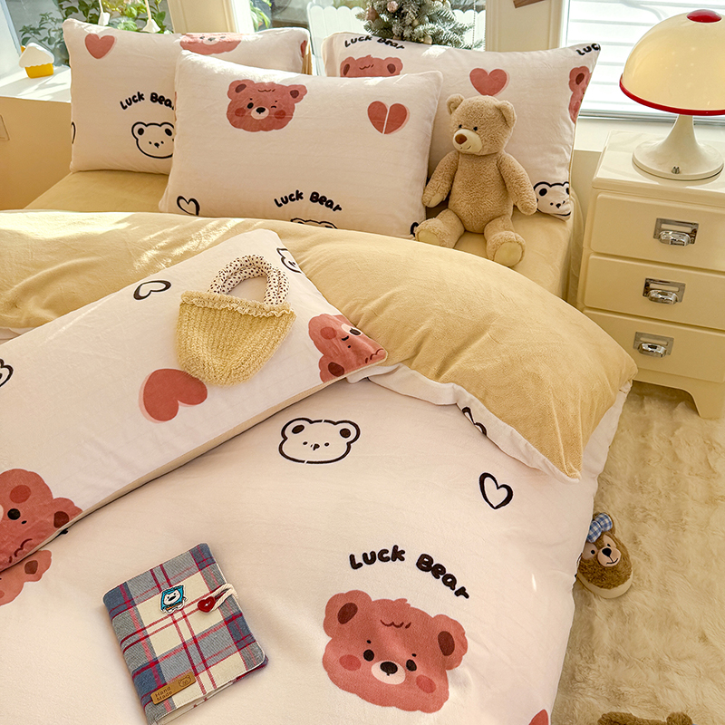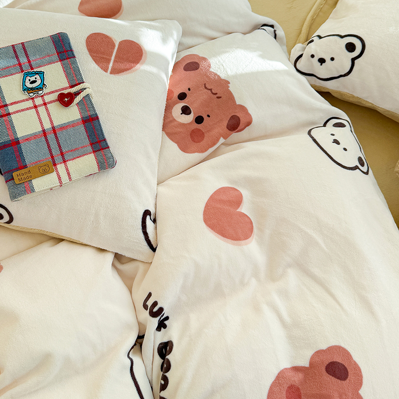 【多样屋专柜】雅鹿 爱心蝴蝶结/花汐/小熊心旅/星彩梦印花牛奶绒四件套200*230cm