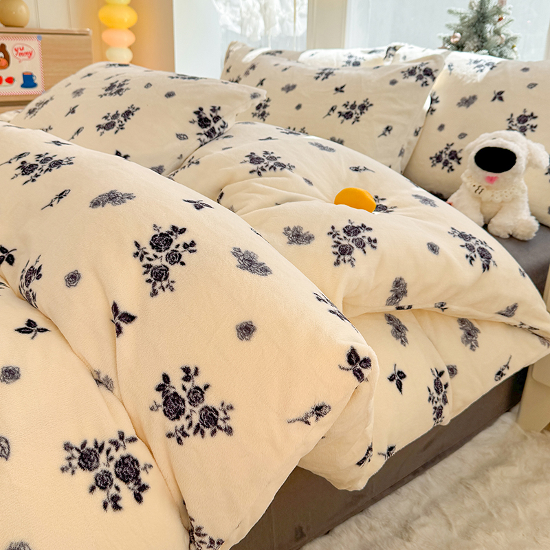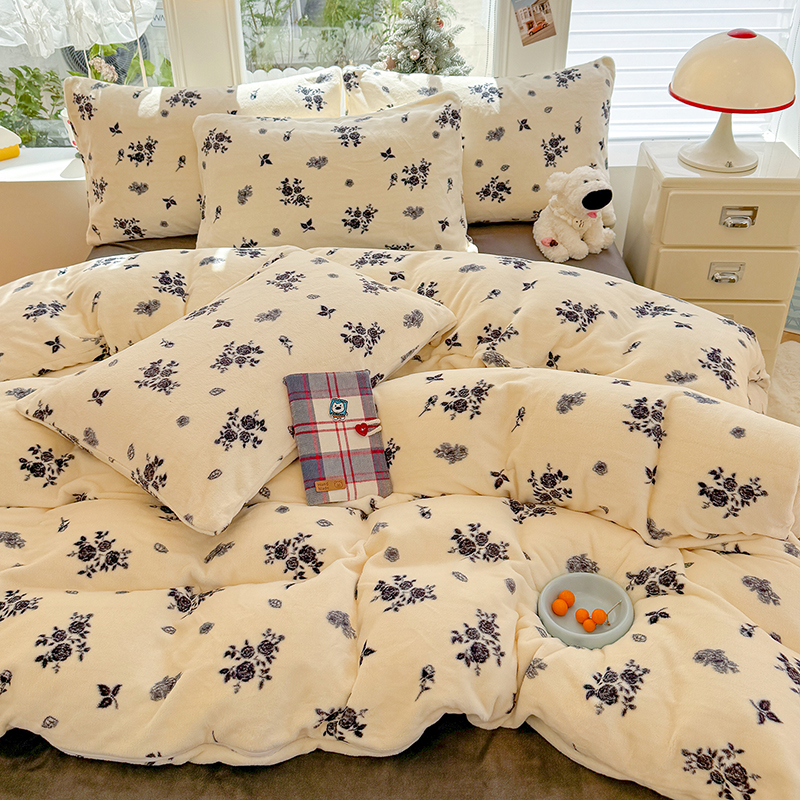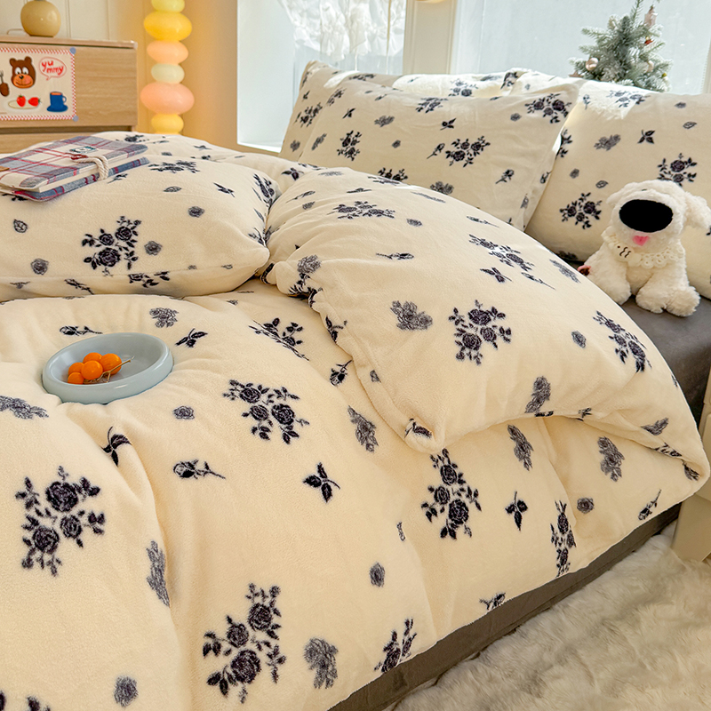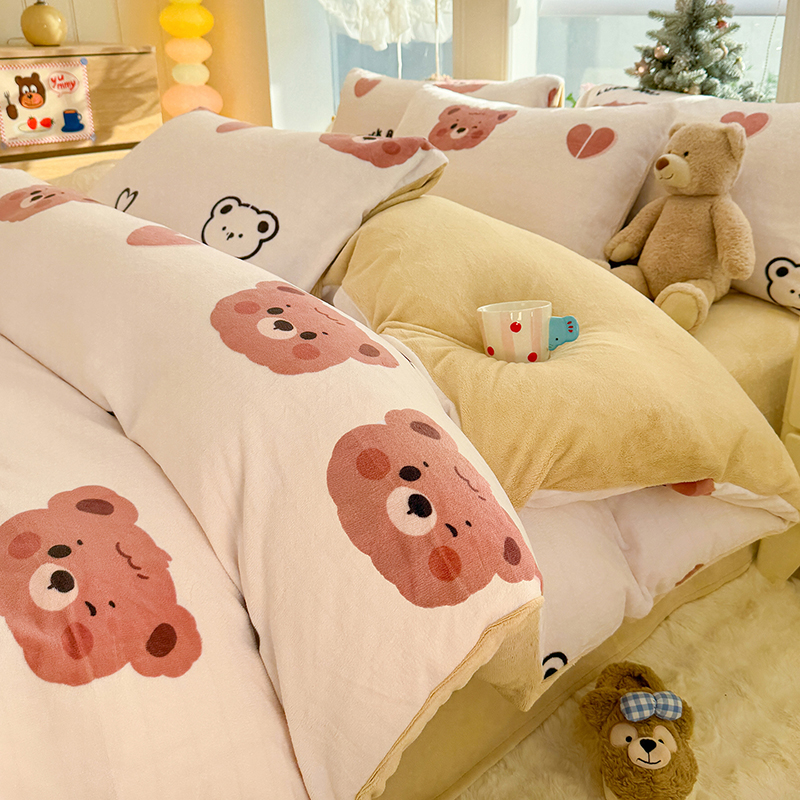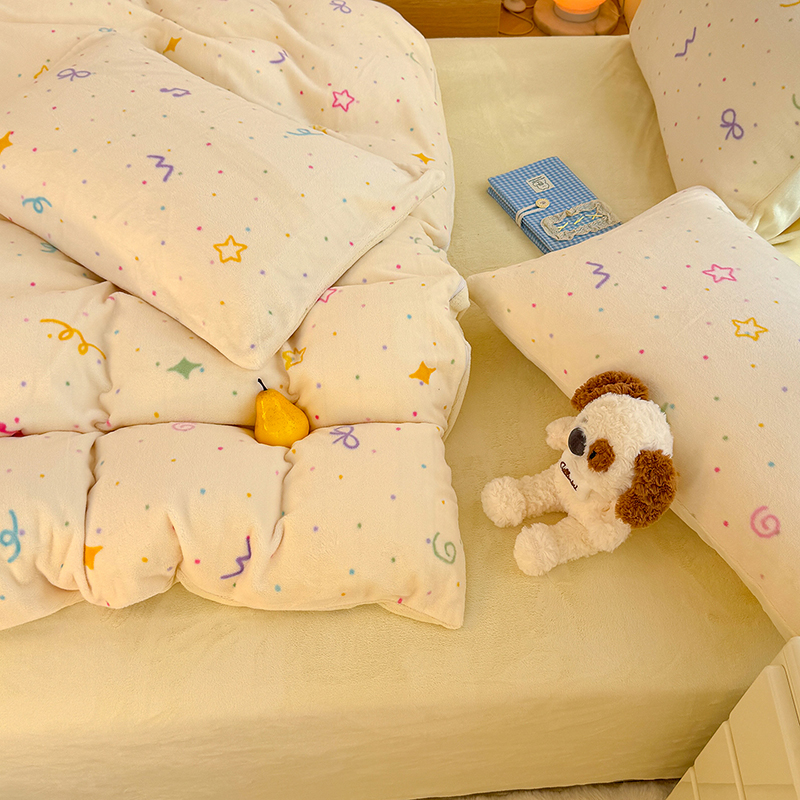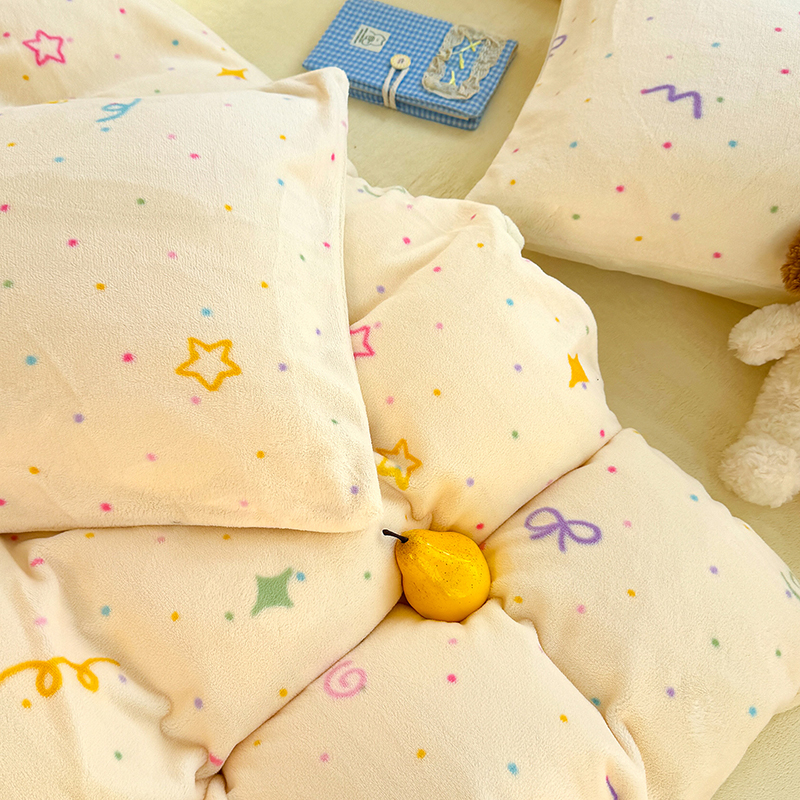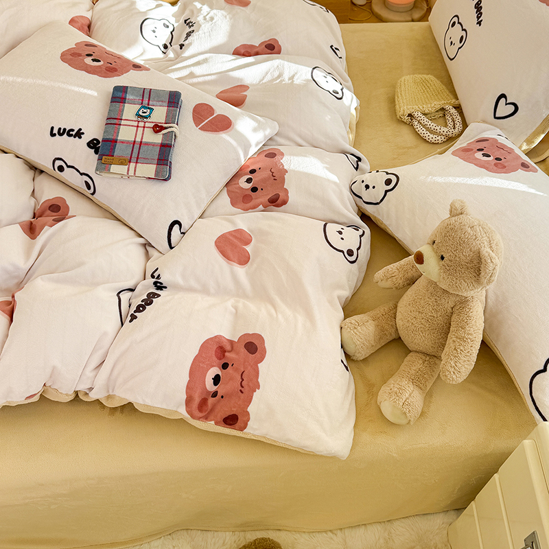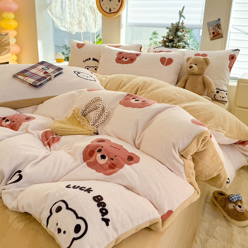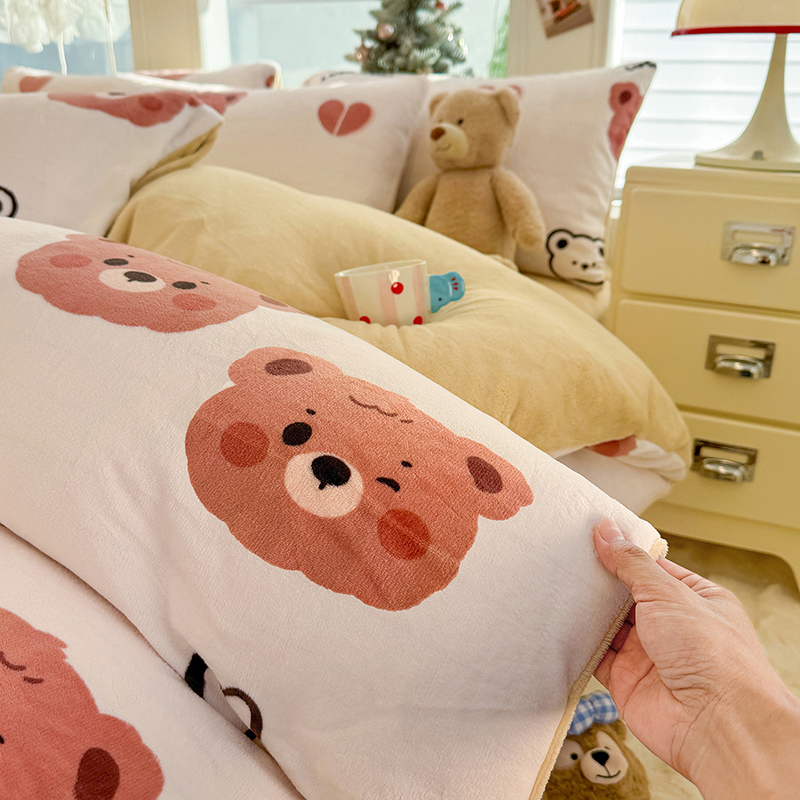 【多样屋专柜】雅鹿 爱心蝴蝶结/花汐/小熊心旅/星彩梦印花牛奶绒四件套200*230cm