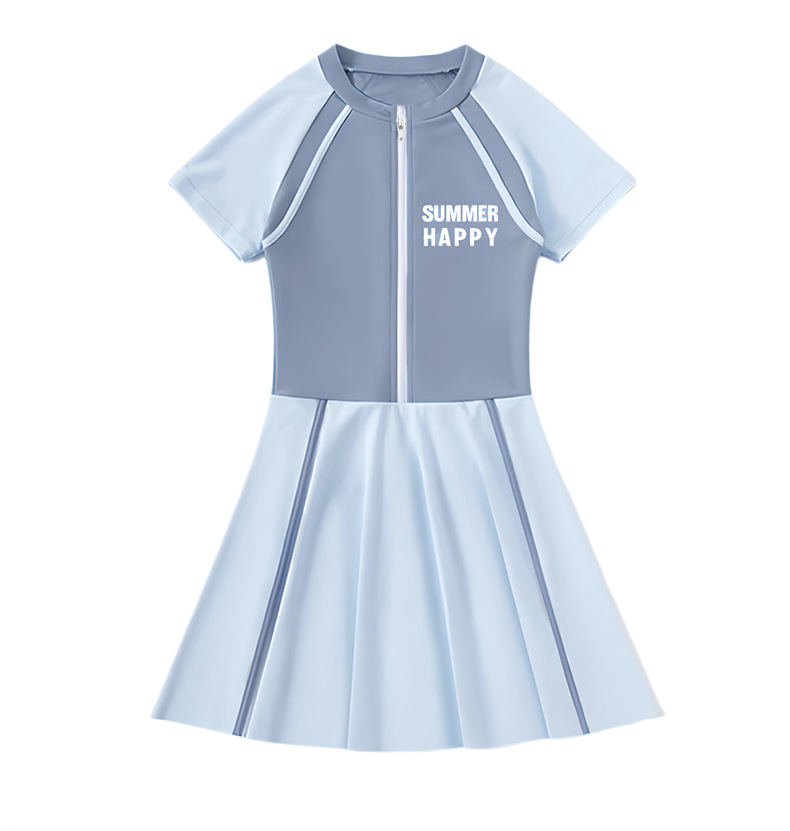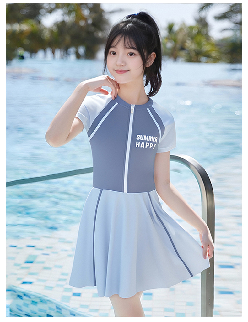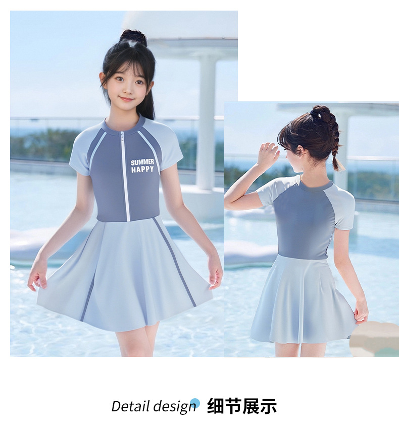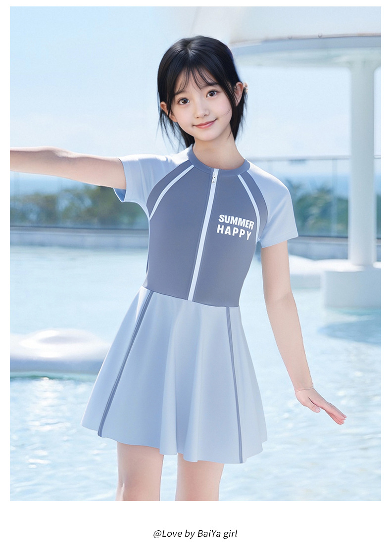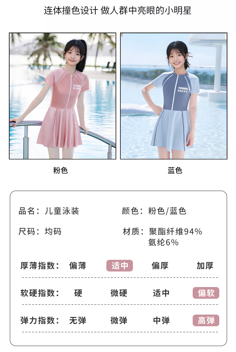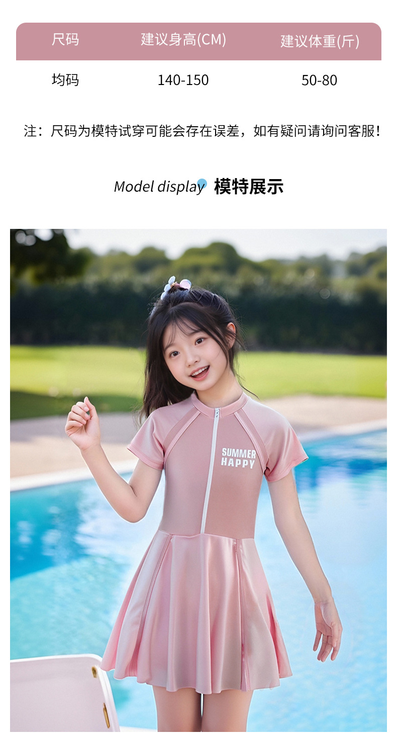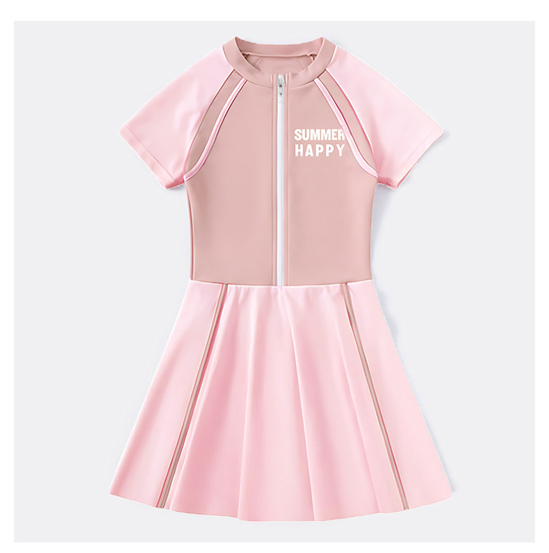 大童泳衣女童连体可爱公主粉裙式时尚平角训练温泉游泳装