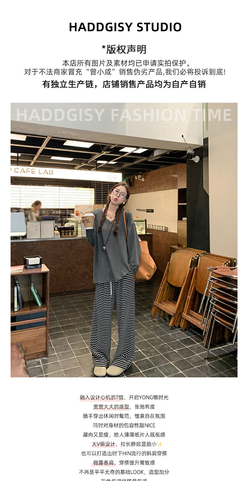 【110元任选2件】现货!灰色V领宽松大T恤