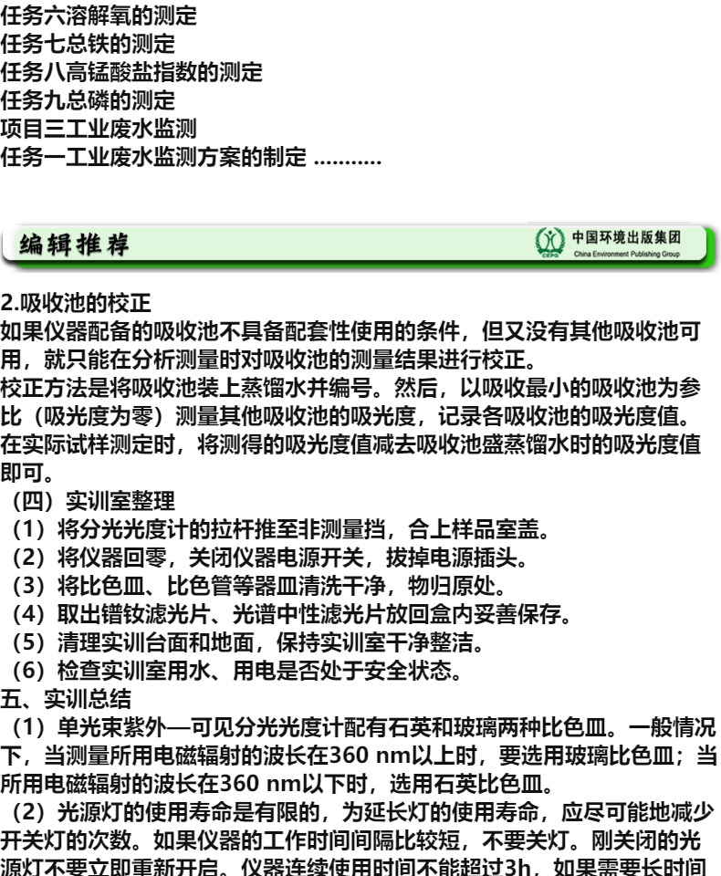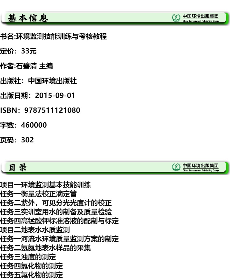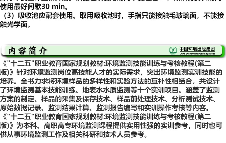 环境监测技能训练与考核教程(第二版) “十二五”职业教育国家规划教材 石碧清 9787511121080
