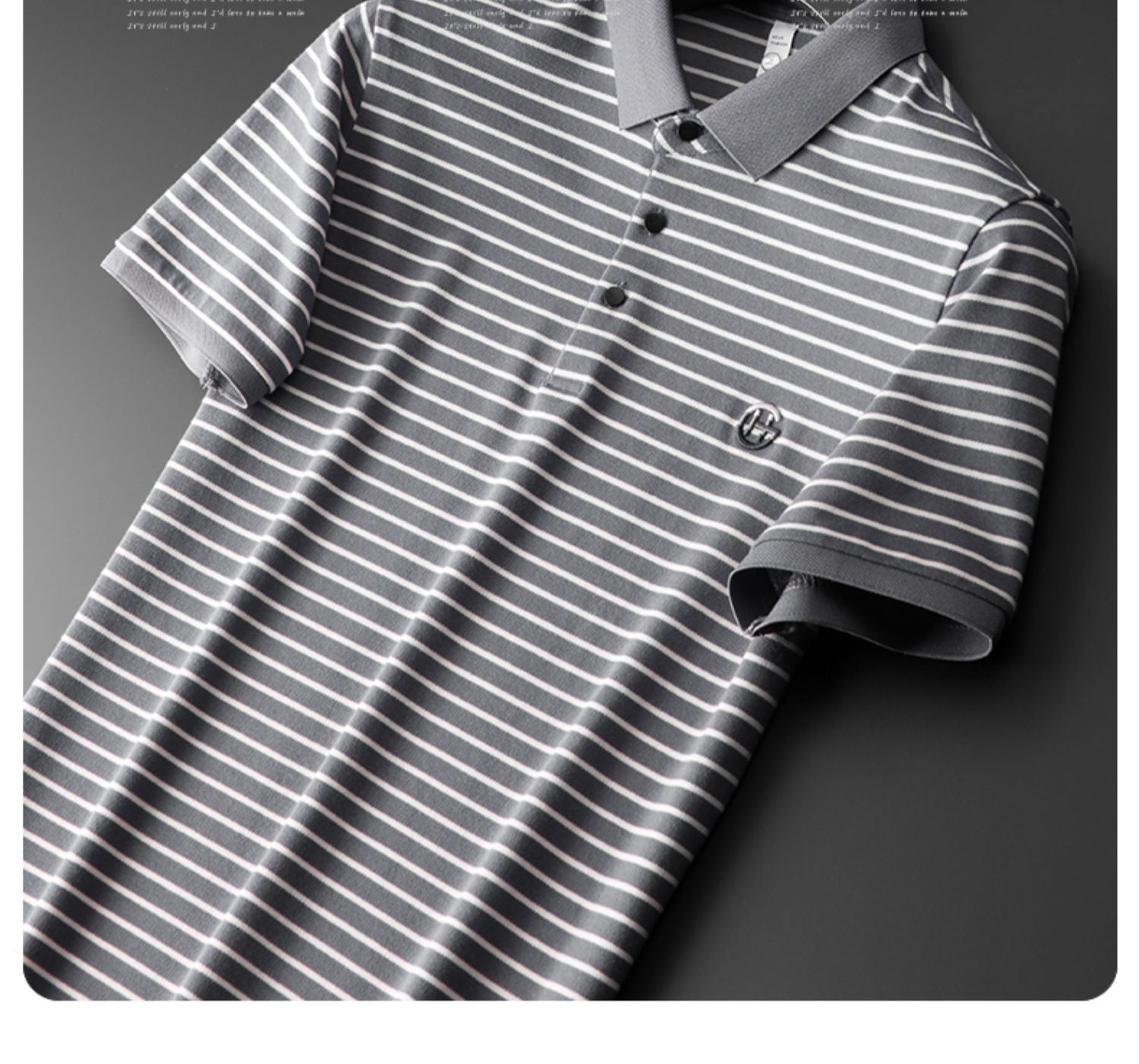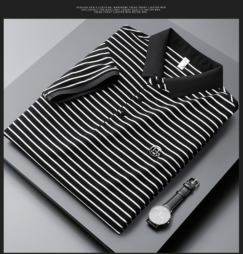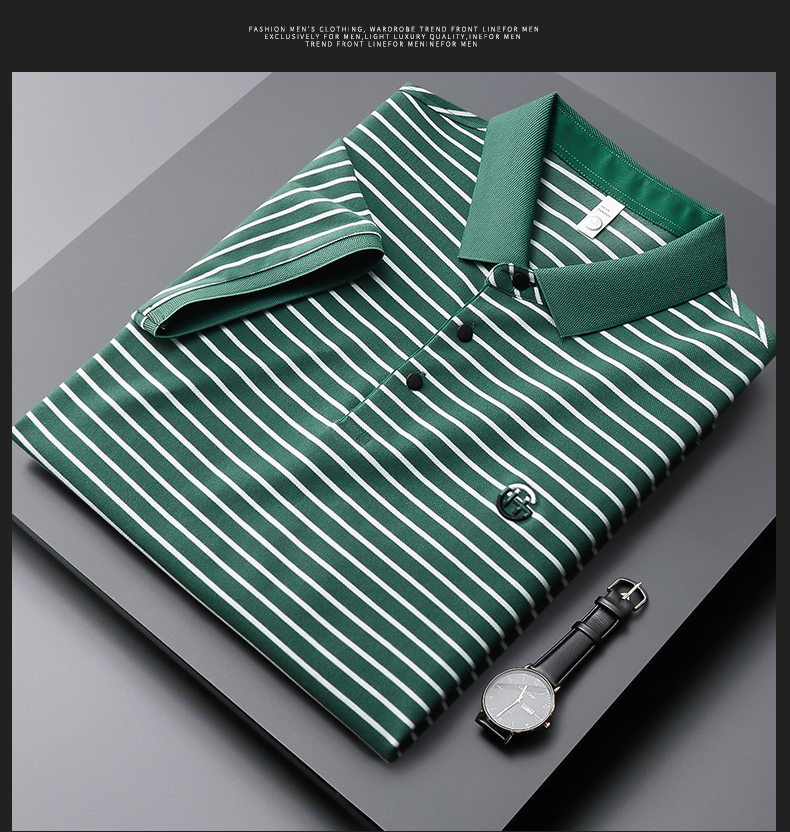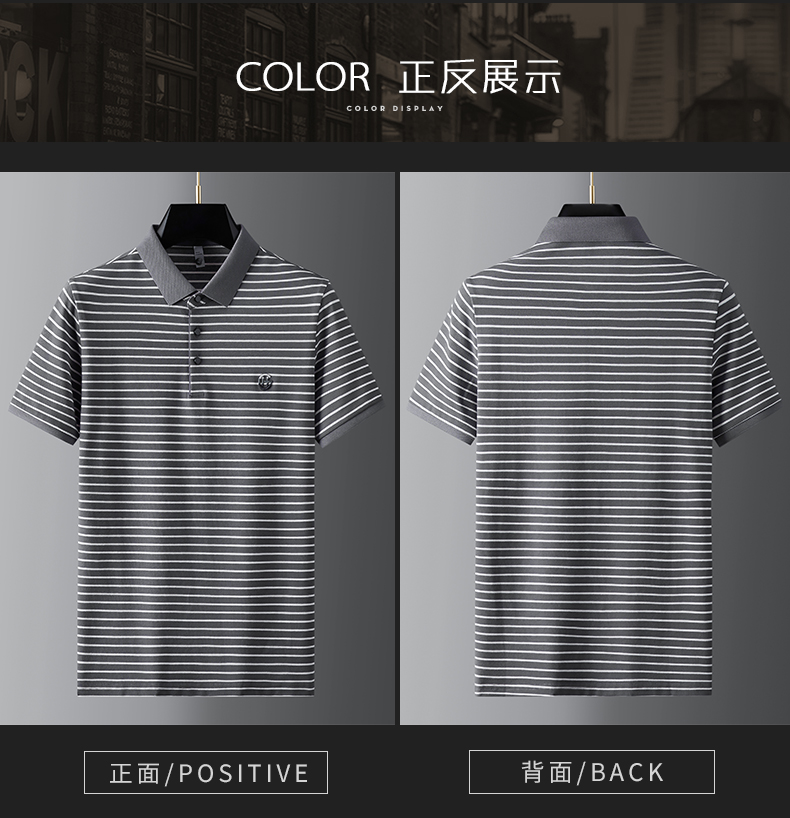 「四款配色!珠地网眼面料」夏季刺绣条纹短袖polo衫 男修身潮休闲商务翻领t恤保罗衫上衣